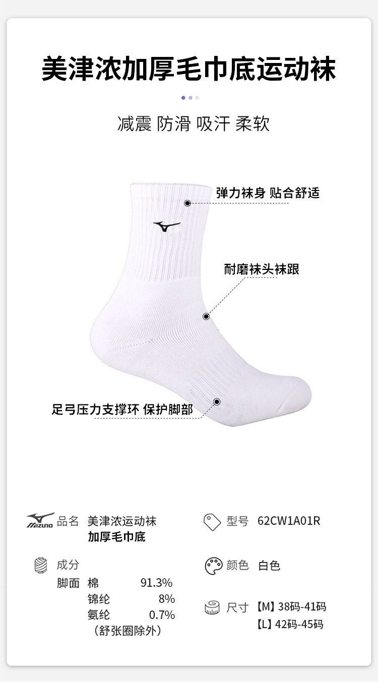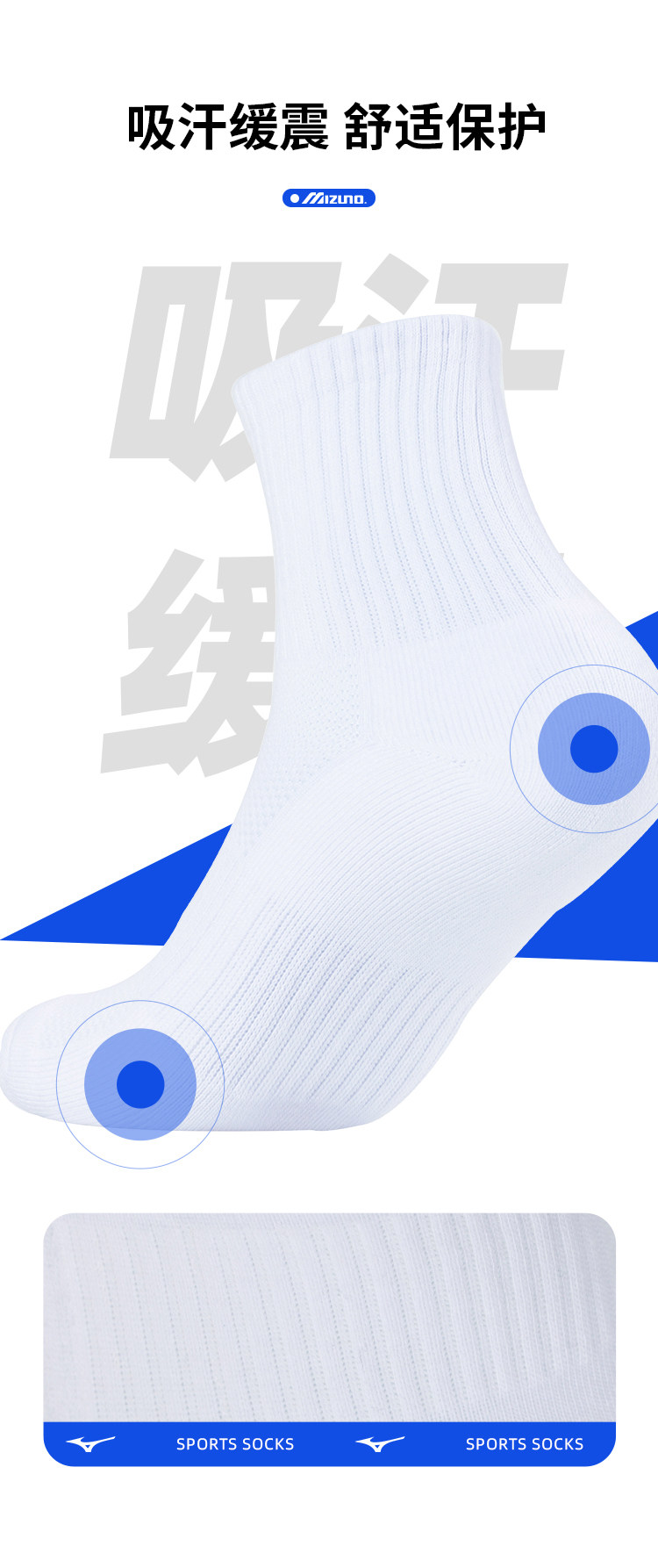 Mizuno Sports Socks Mid-Calf Tennis Socks Men's and Women's Cotton Socks Casual Training Thickened Towel Bottom Long Socks