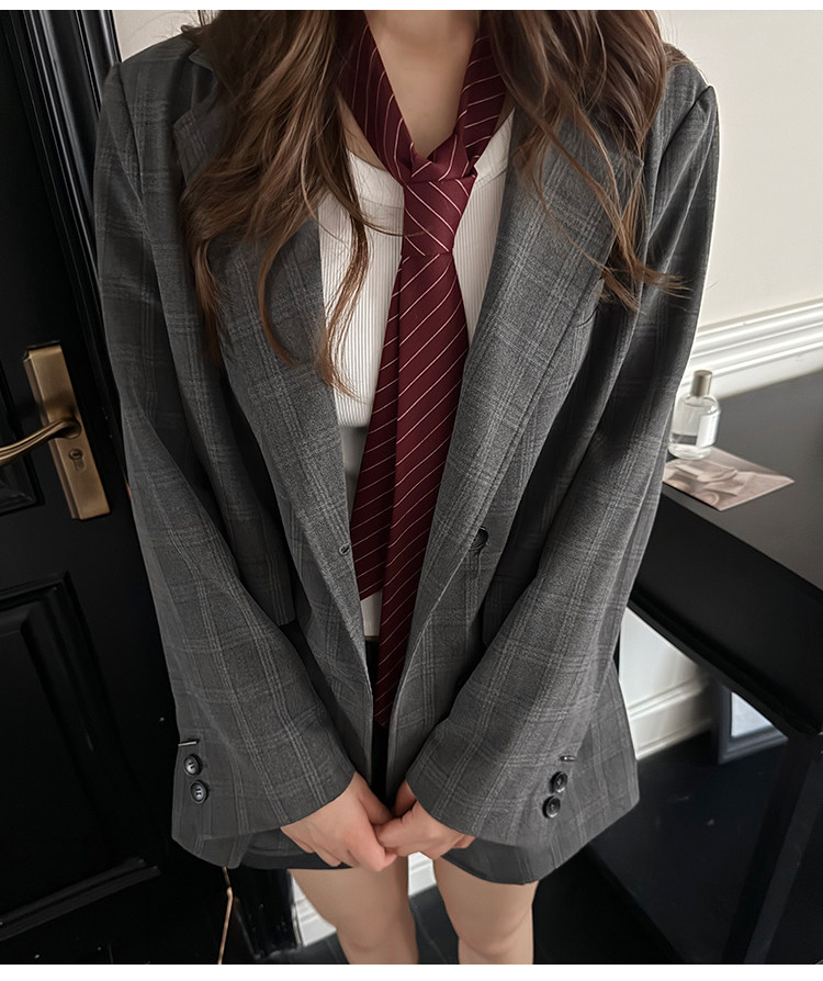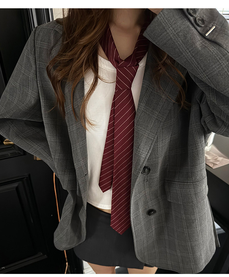 ins Korean Style Burgundy Striped Tie for Women, Autumn and Winter High-Fashion Suit Tie, Retro Vintage Versatile Scarf