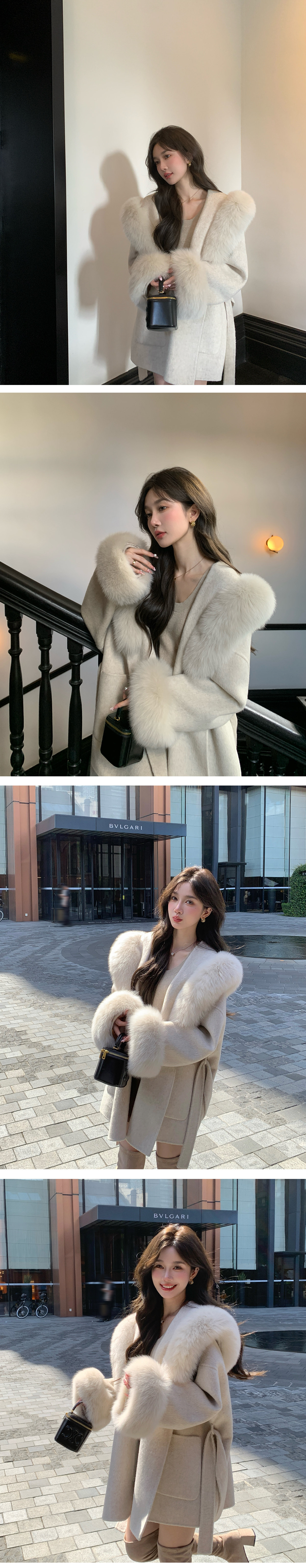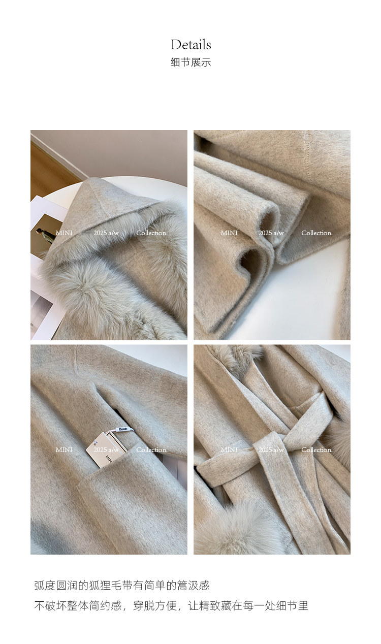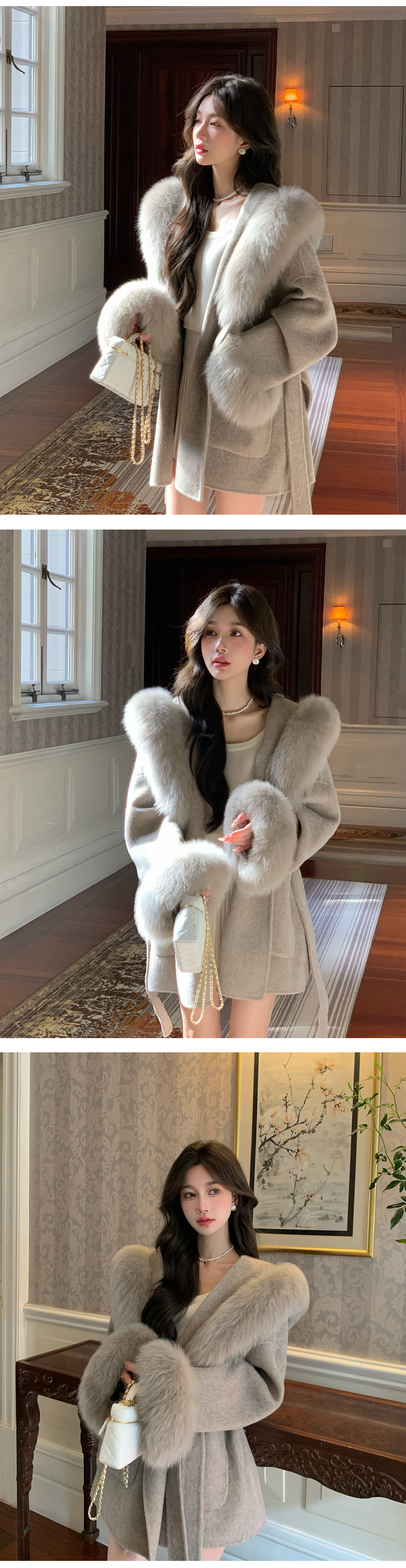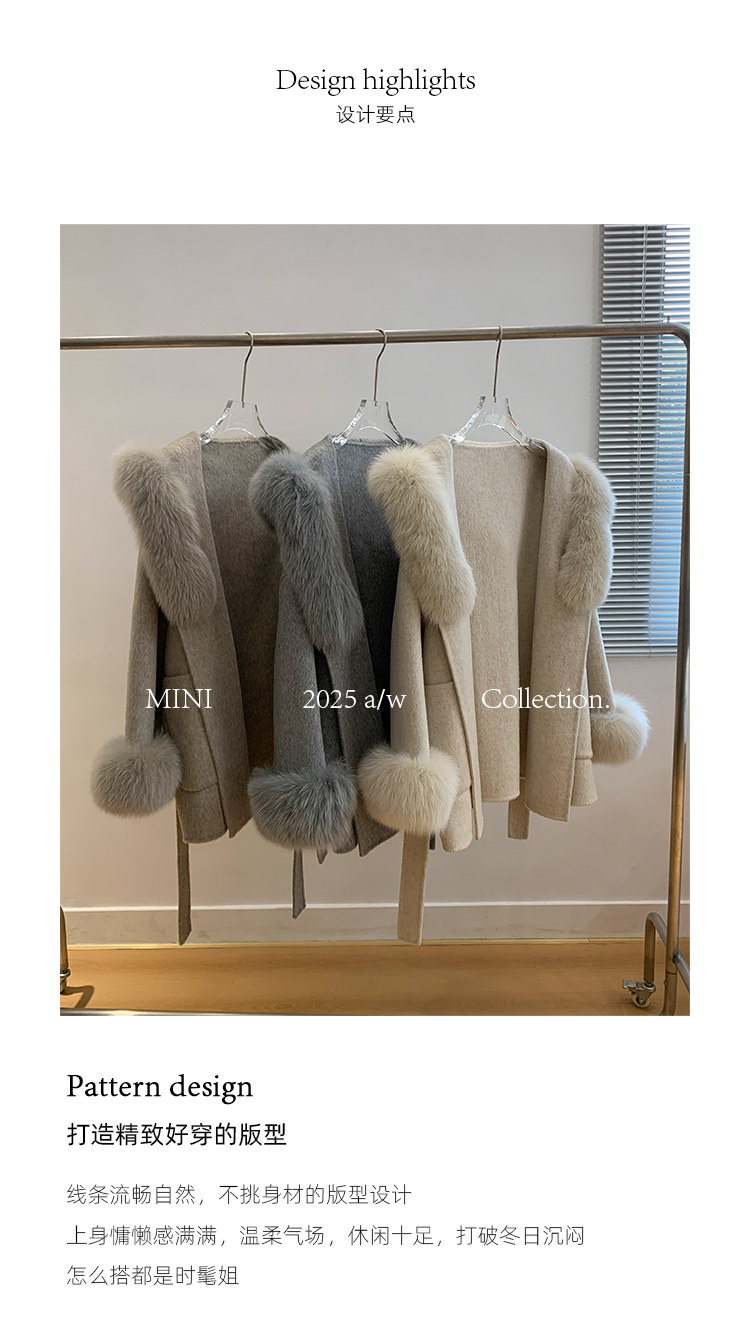 Mini Fur Coat with Fox Fur Collar and Hood, Double-Sided Woolen Coat with a High-End Feel