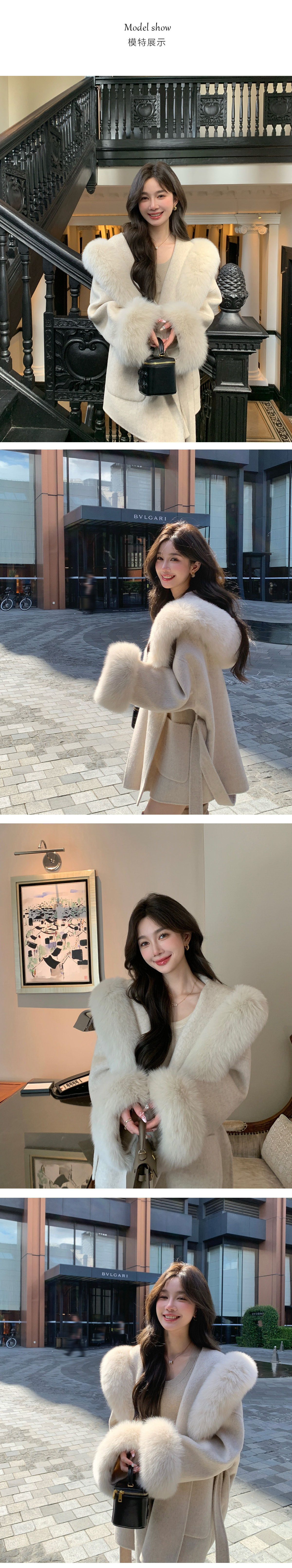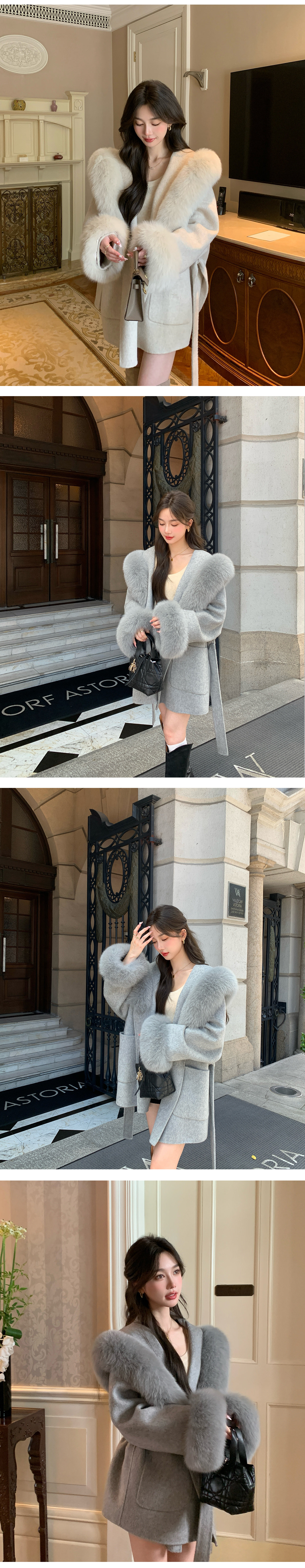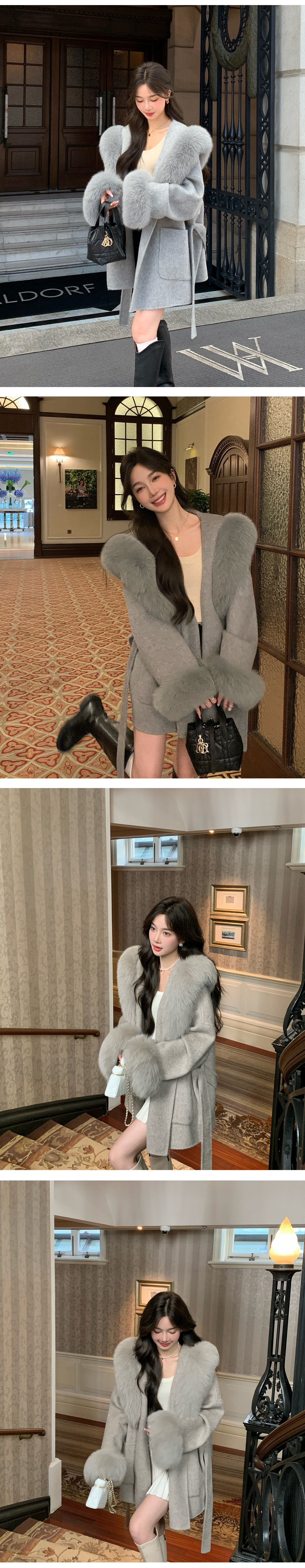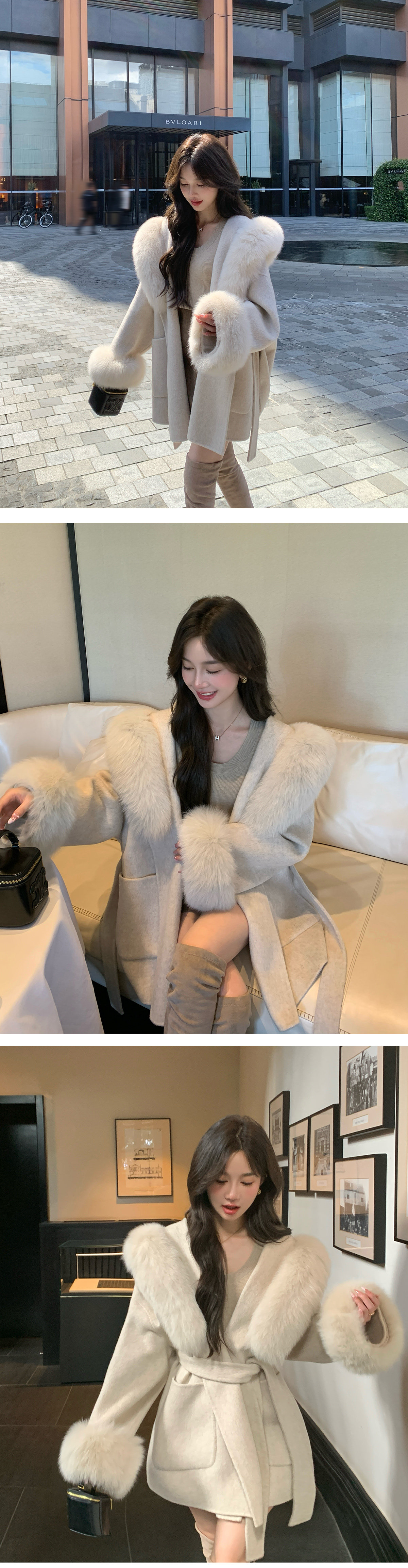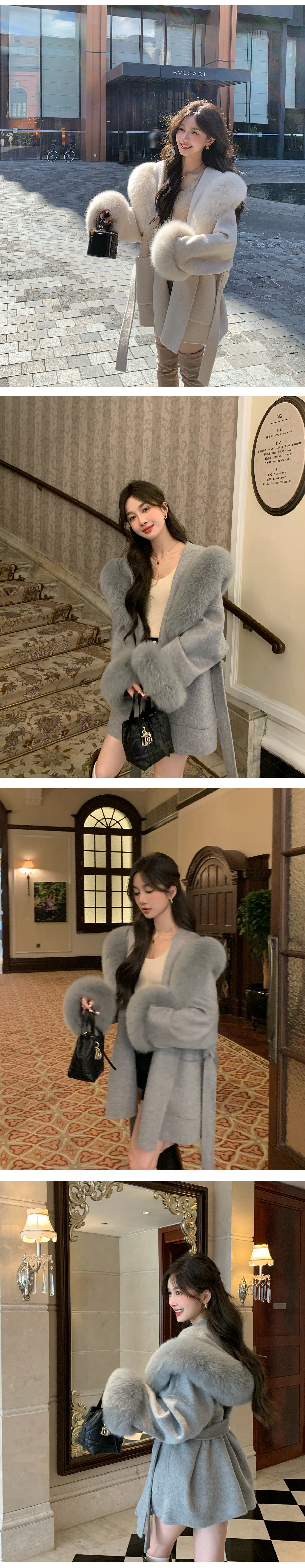 Mini Fur Coat with Fox Fur Collar and Hood, Double-Sided Woolen Coat with a High-End Feel