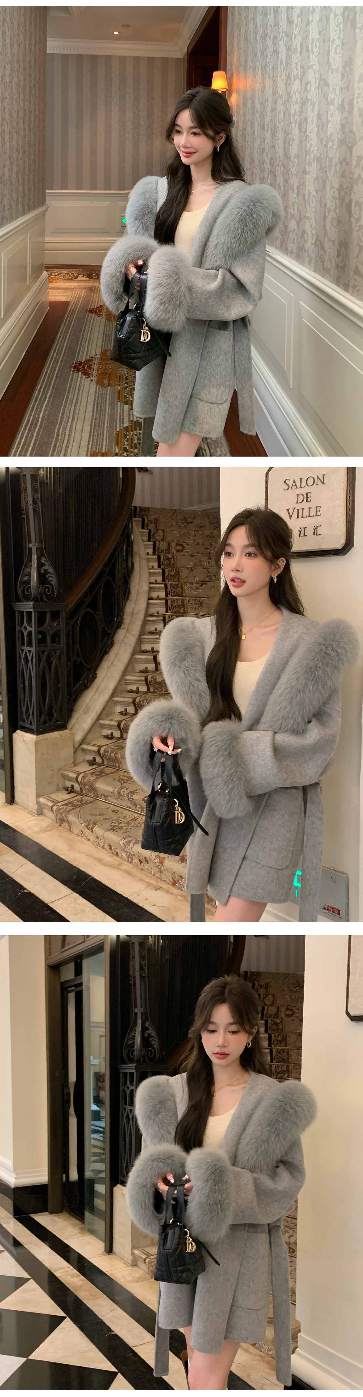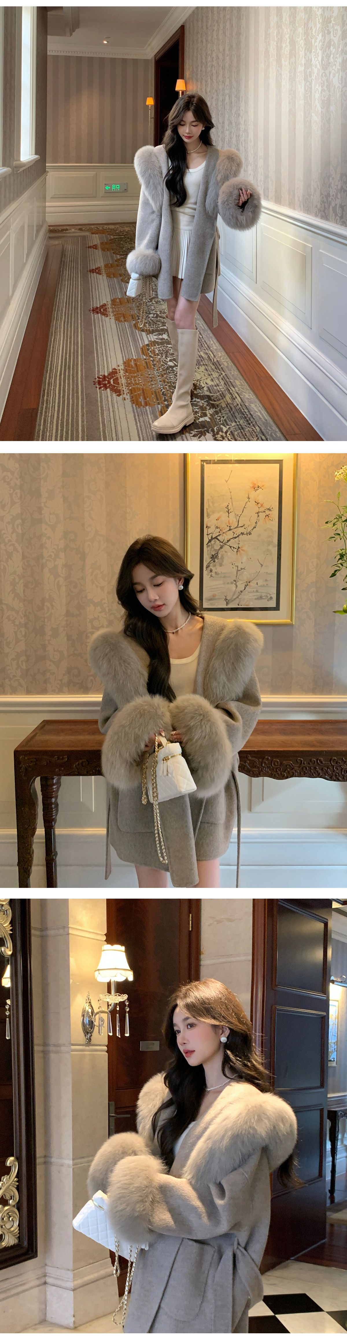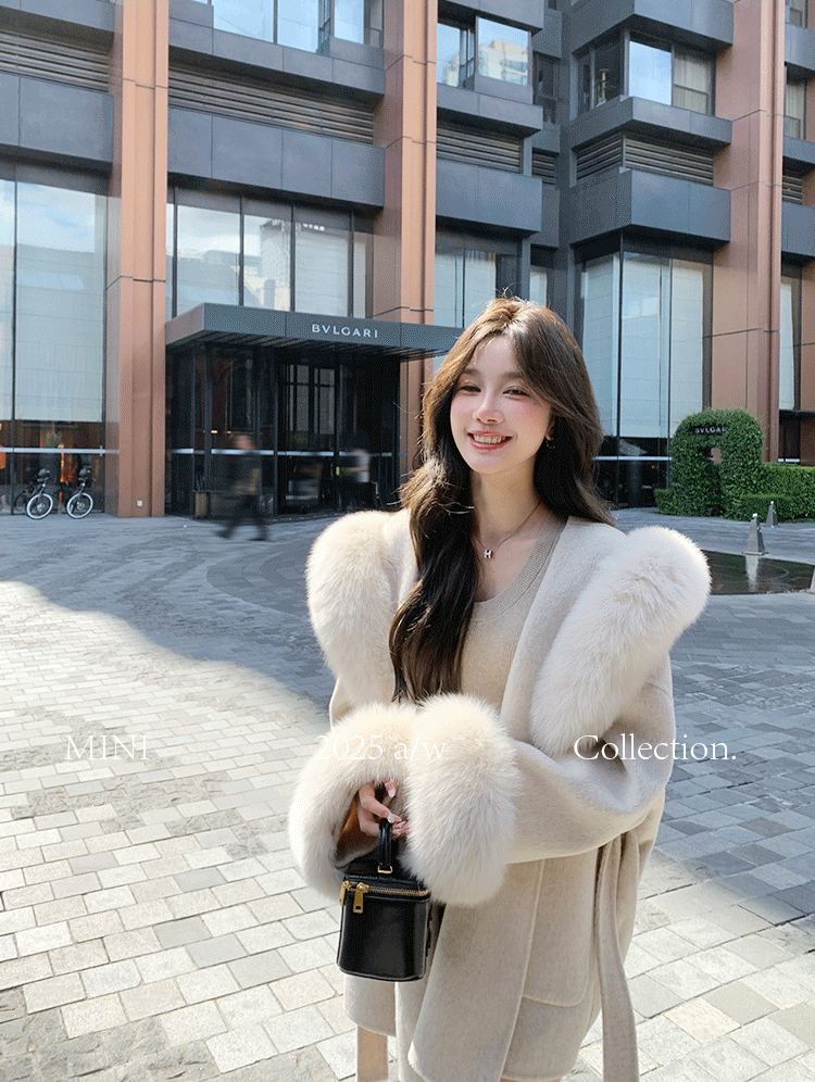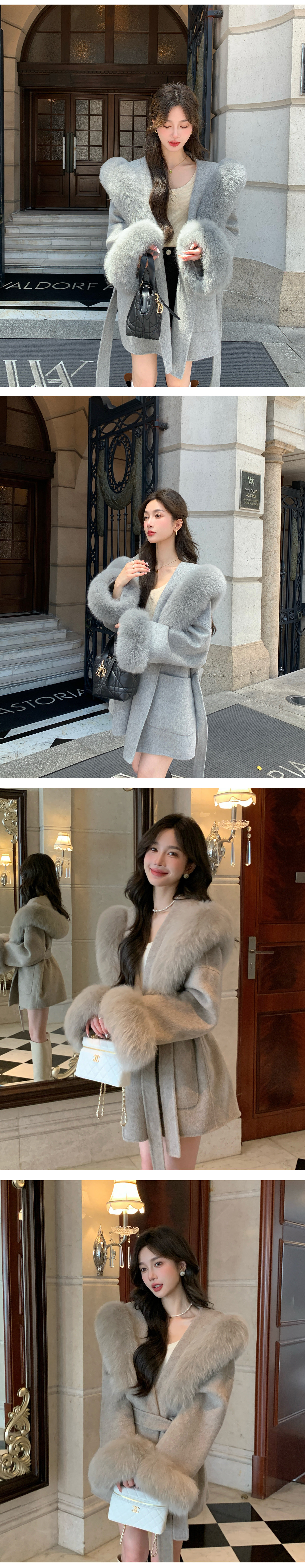 Mini Fur Coat with Fox Fur Collar and Hood, Double-Sided Woolen Coat with a High-End Feel