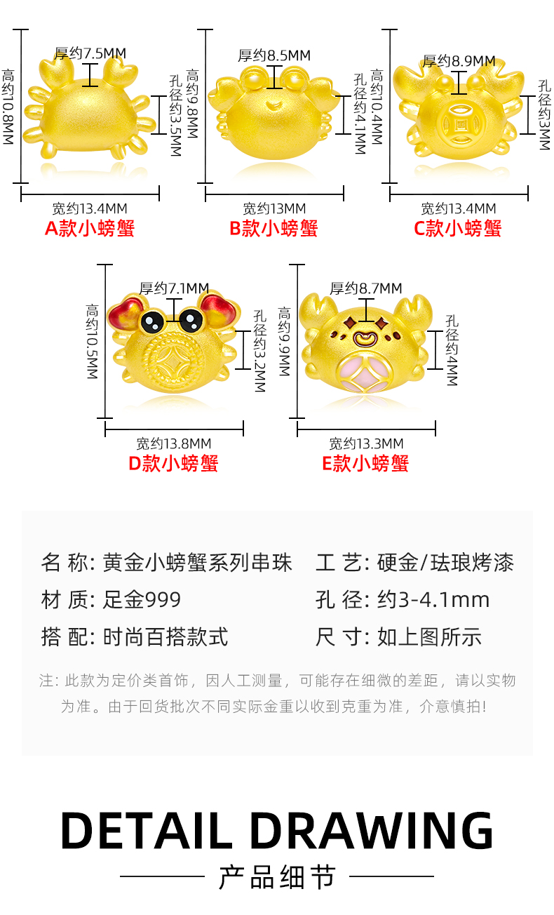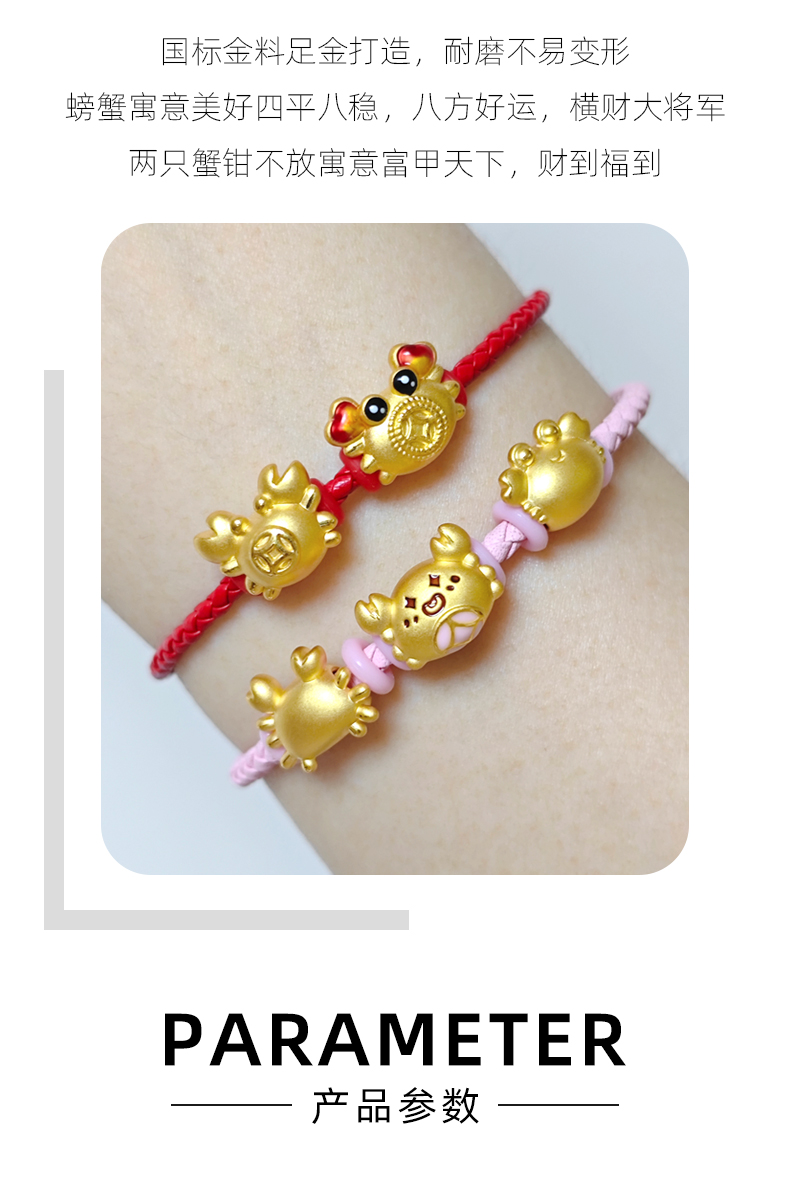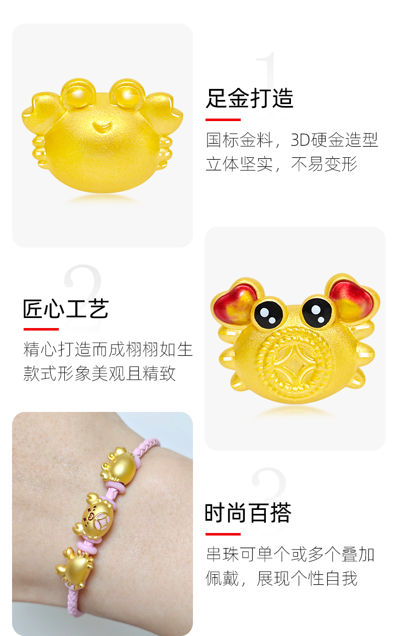 999 Pure Gold Coin Crab Fortune Bead Gold Hairy Crab Wealth-Attracting Bracelet 3D Hard Gold Lots of Money (Crab) Beads