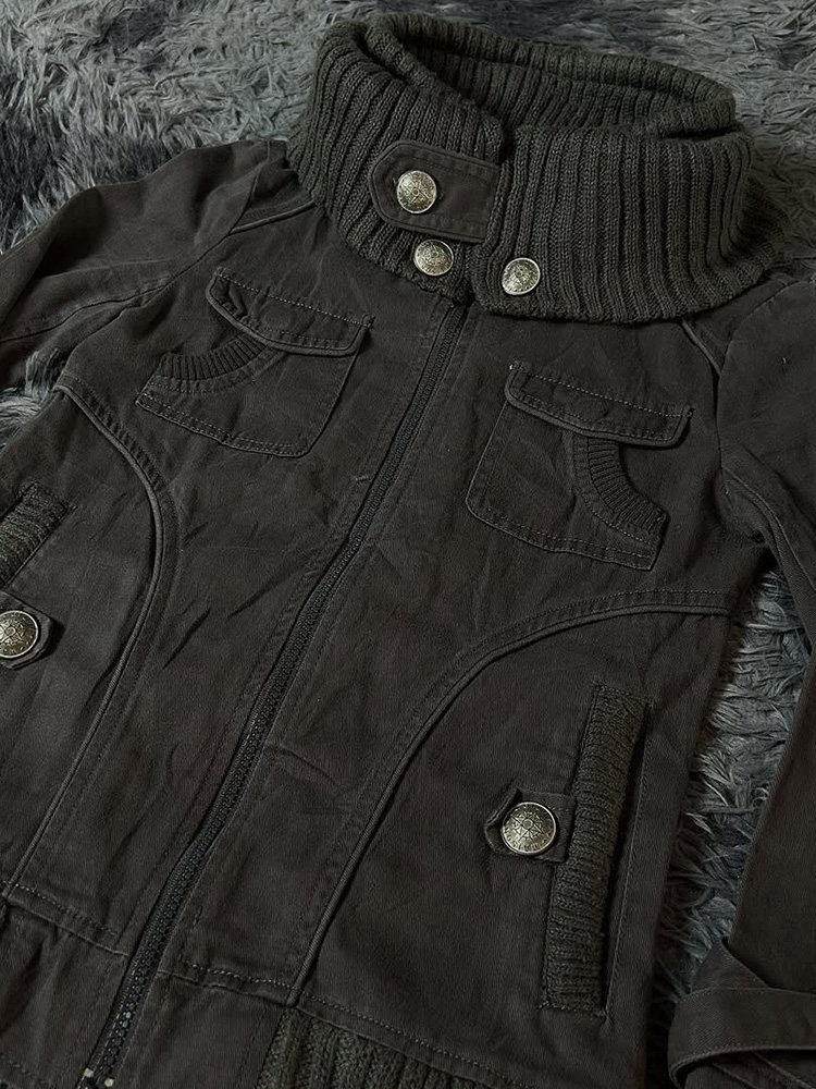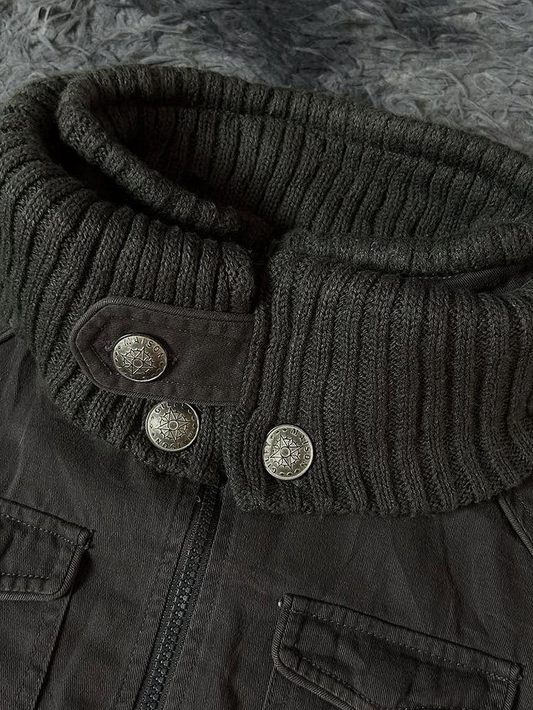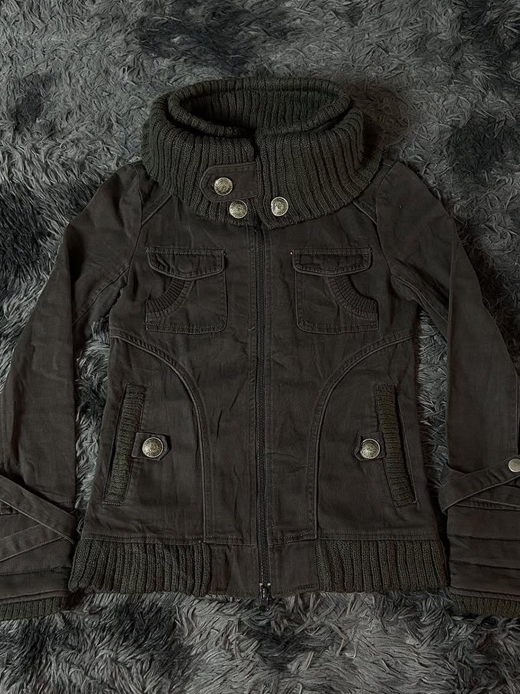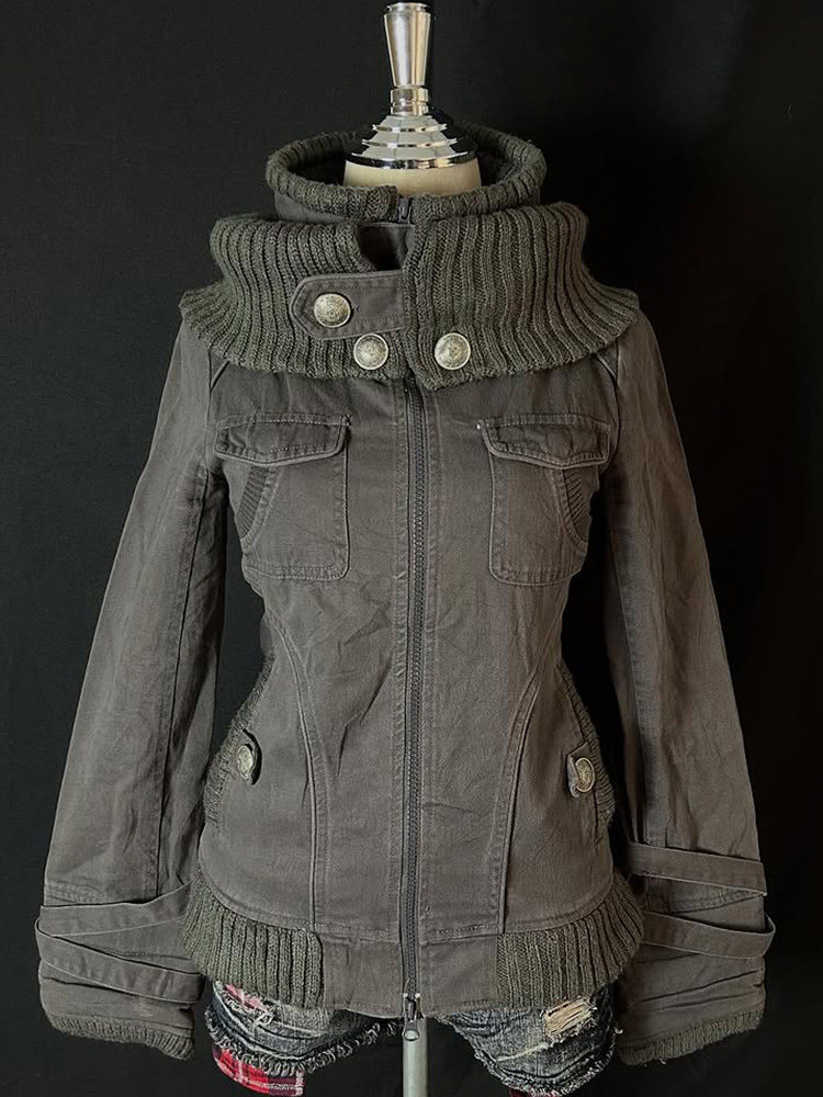 Breeze Original Retro Gray High Collar Short Jacket for Women 2025 Winter New Niche Design Jacket