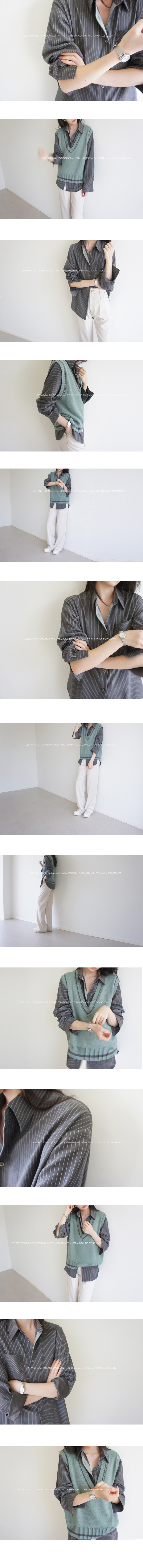 Lost and Found Gray Pinstripe Long-Sleeve Contrast Placket Lambskin Brushed Texture Shirt for Women, Loose Fit