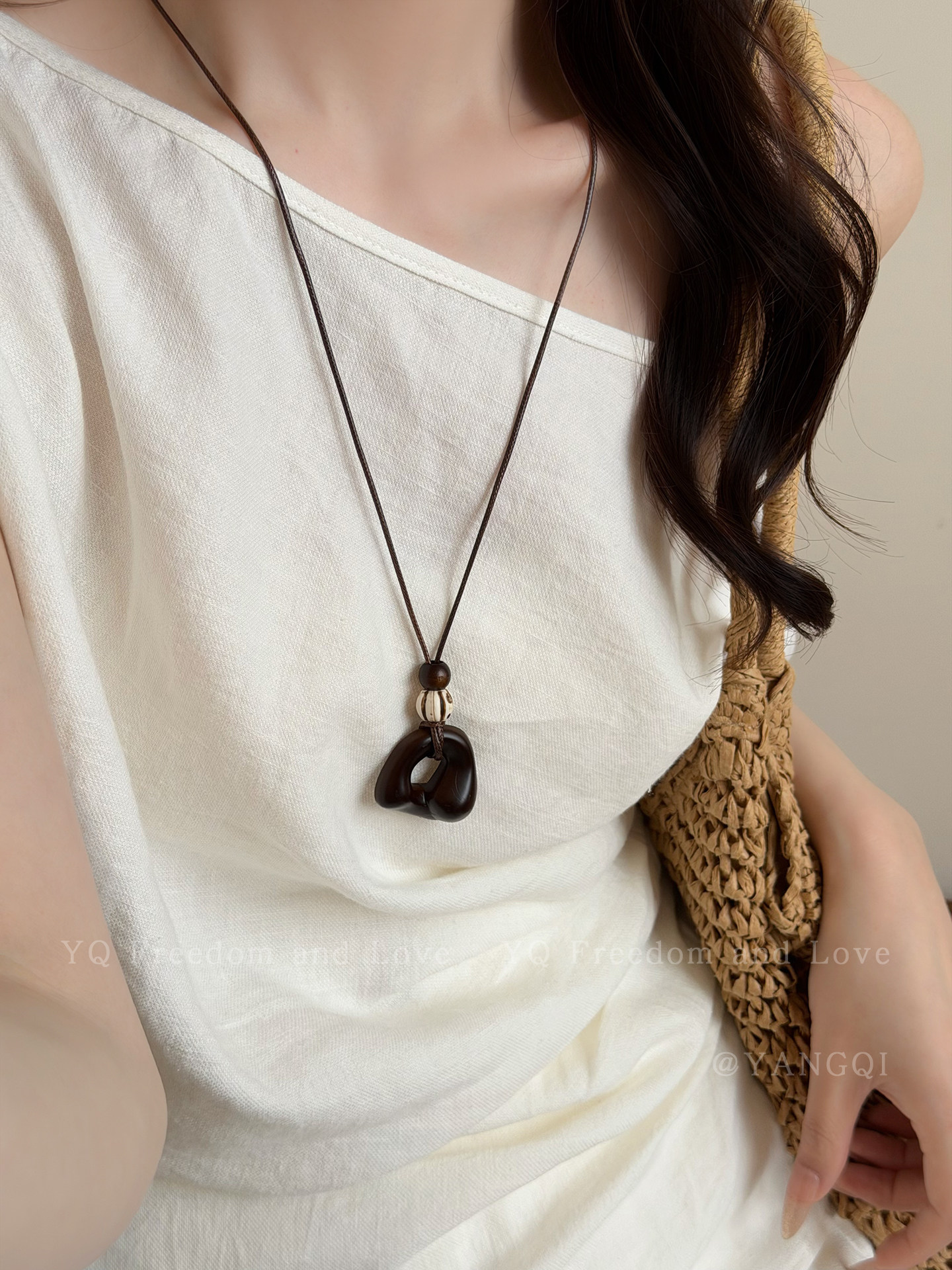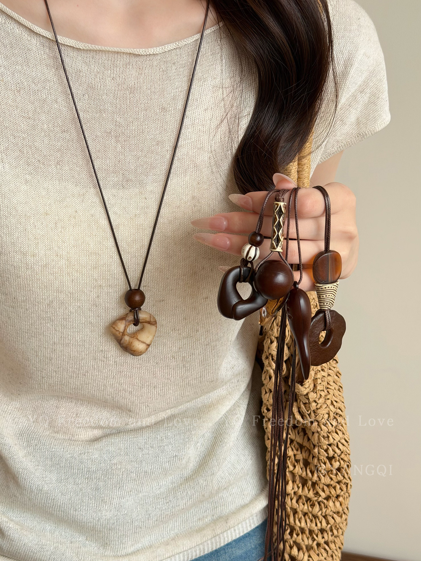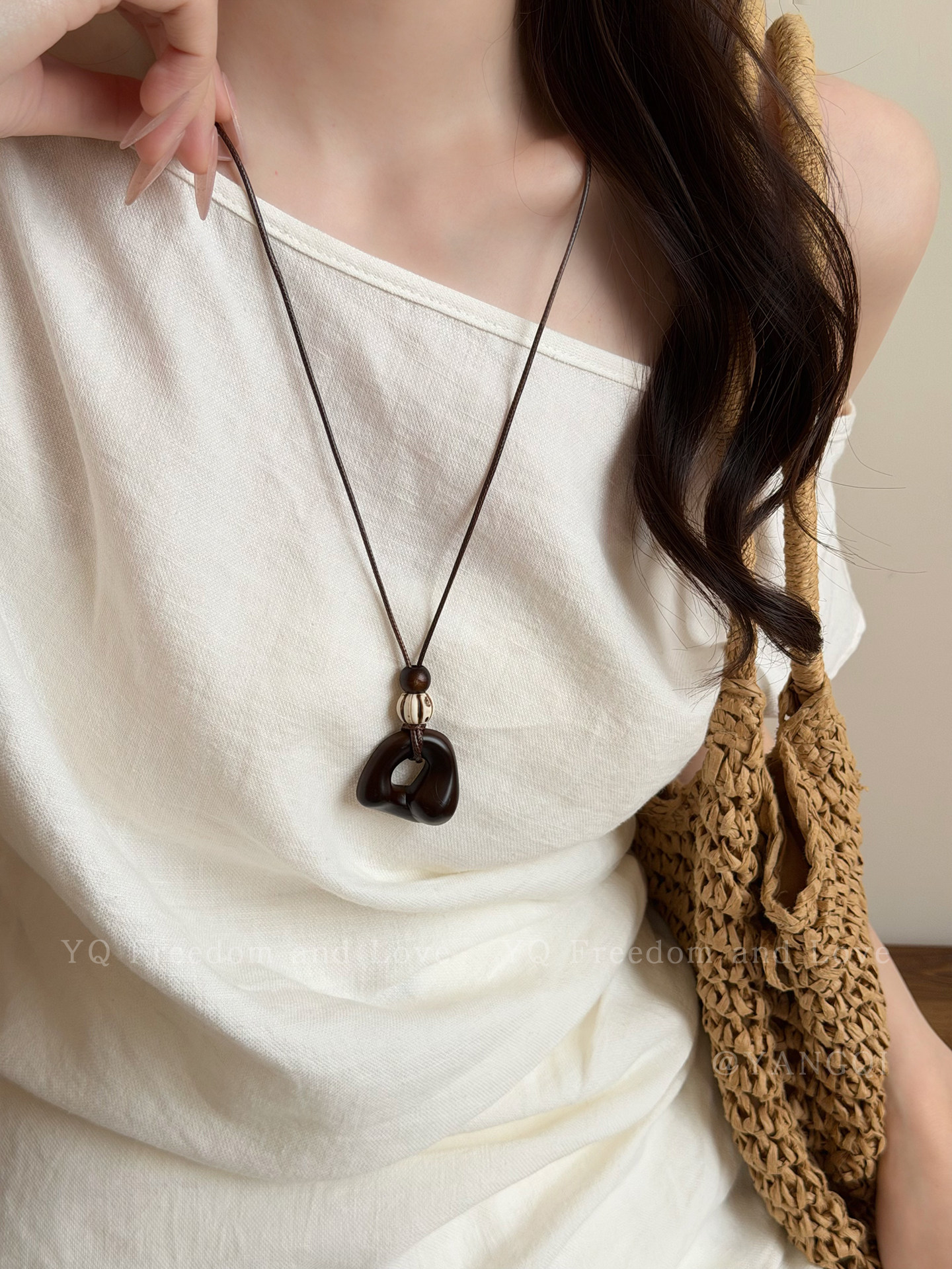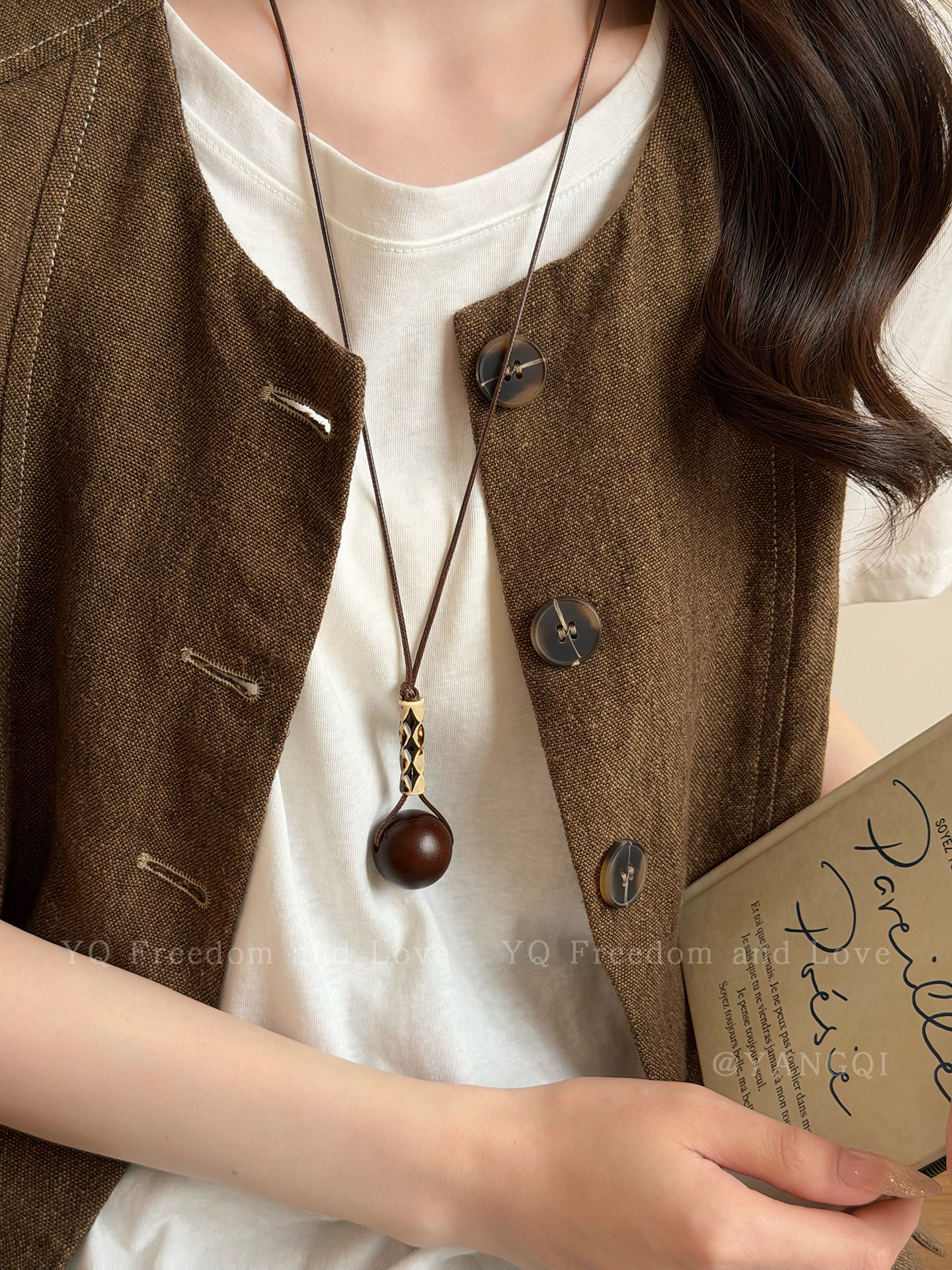 Vintage Brown Pendant Long Necklace for Women 2026 New Summer Sweater Chain for Clothing Decoration Accessory
