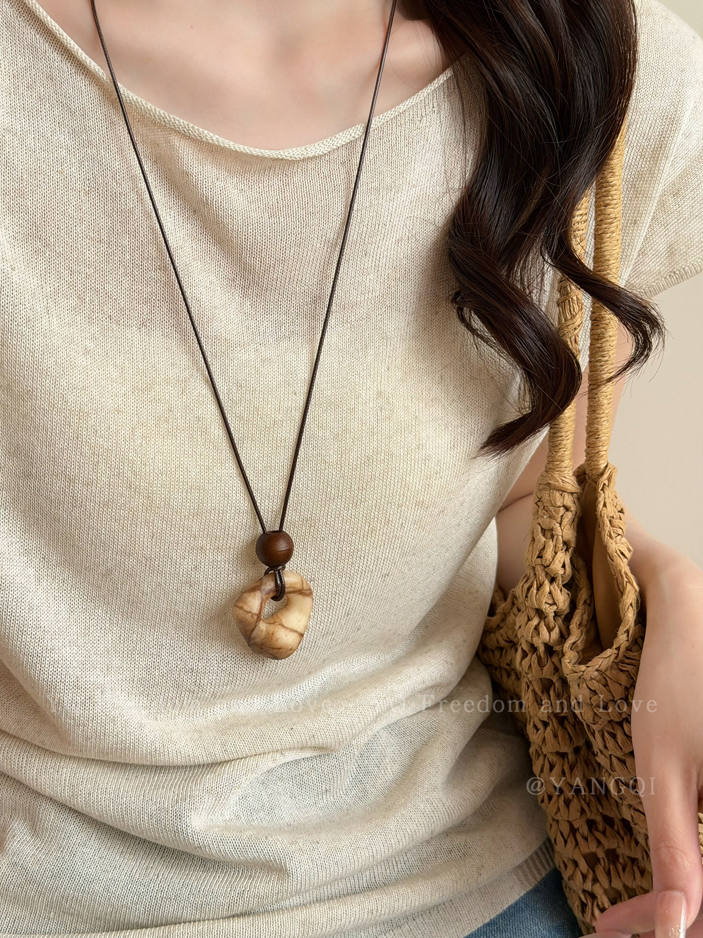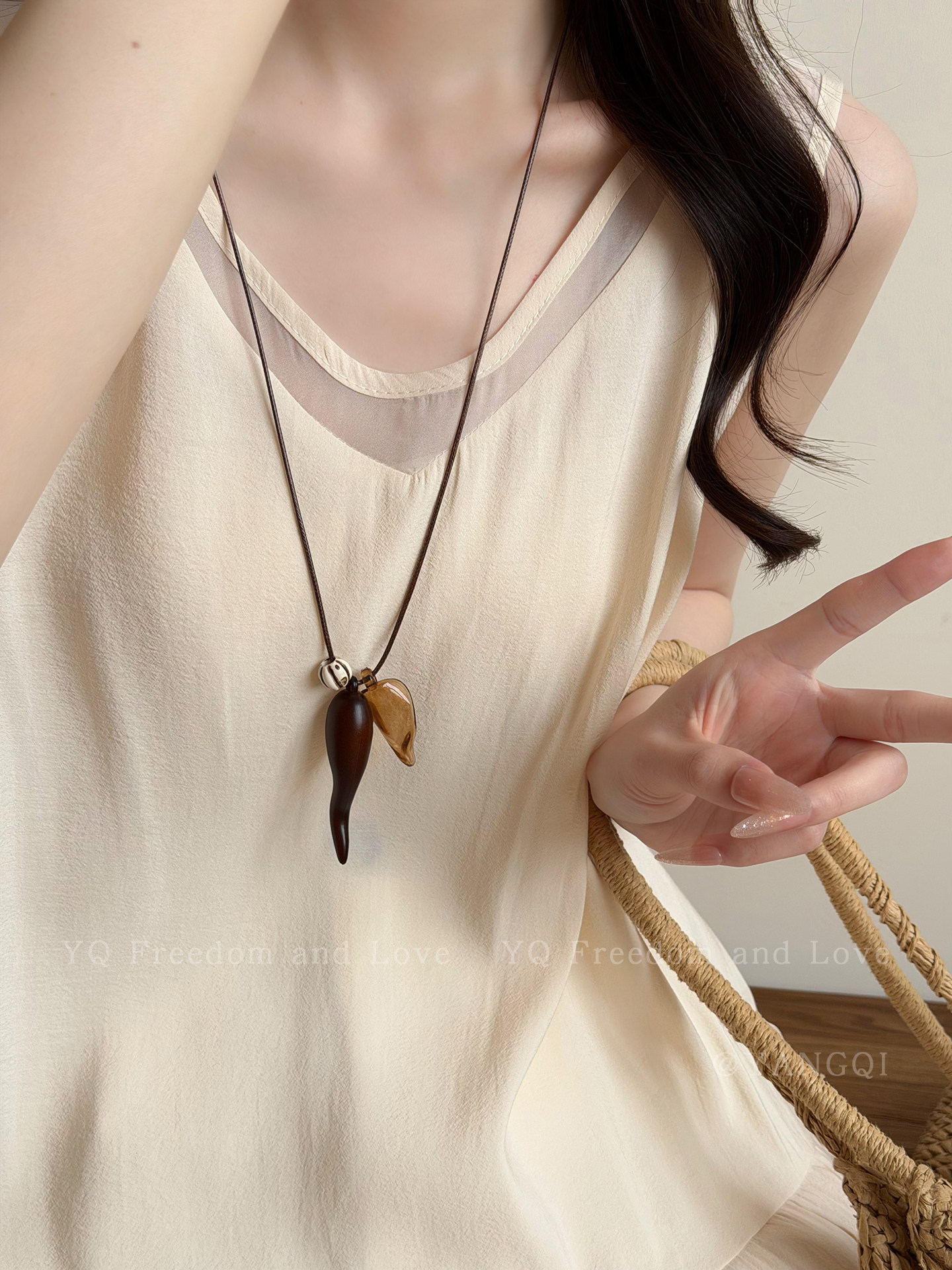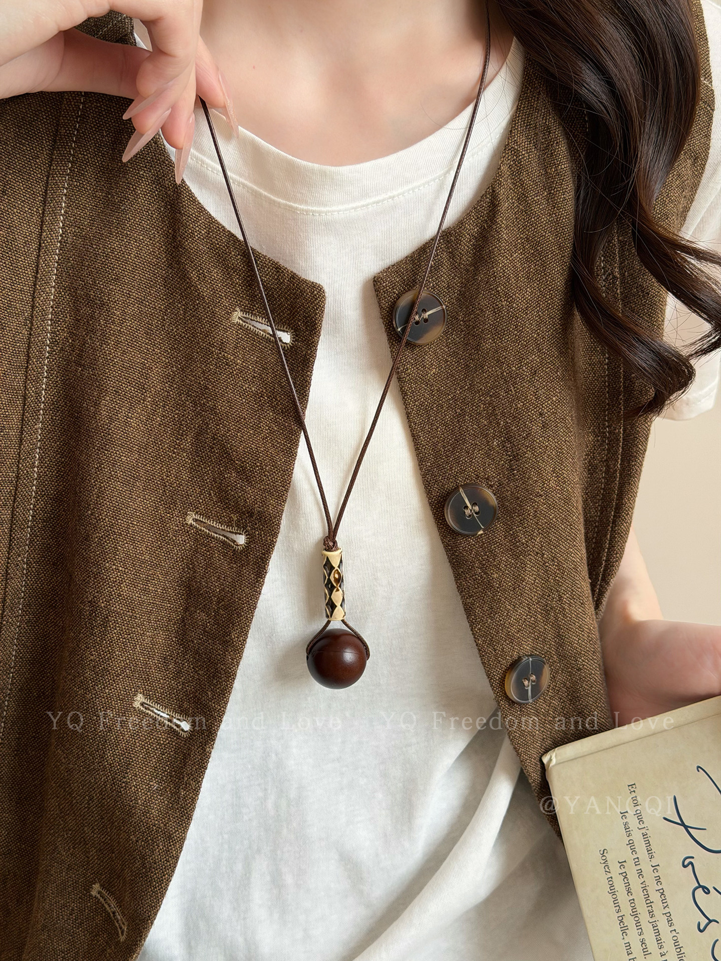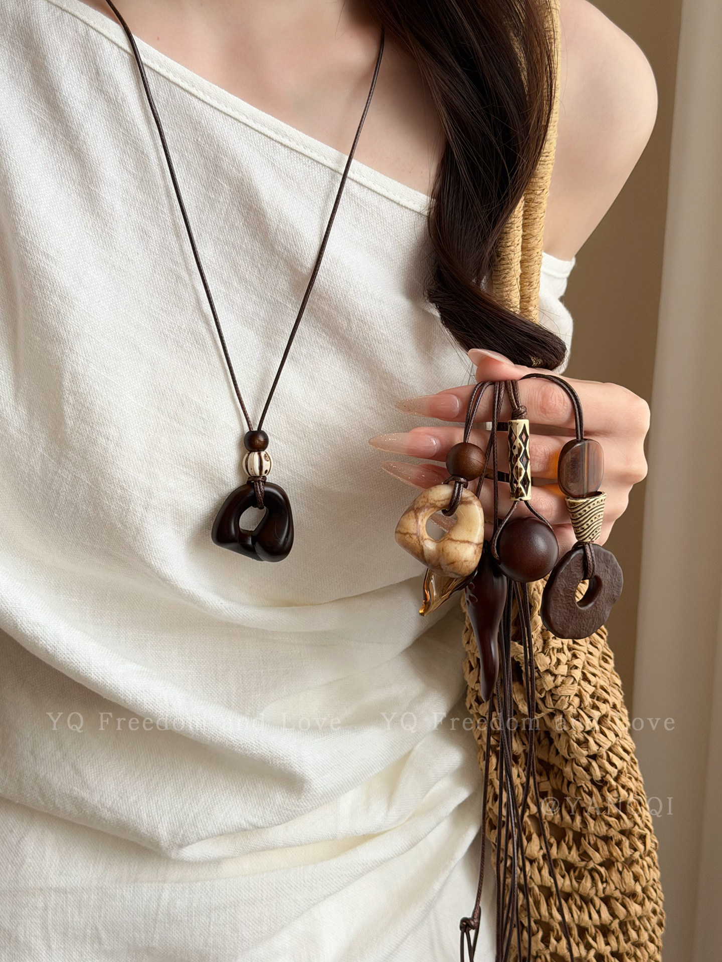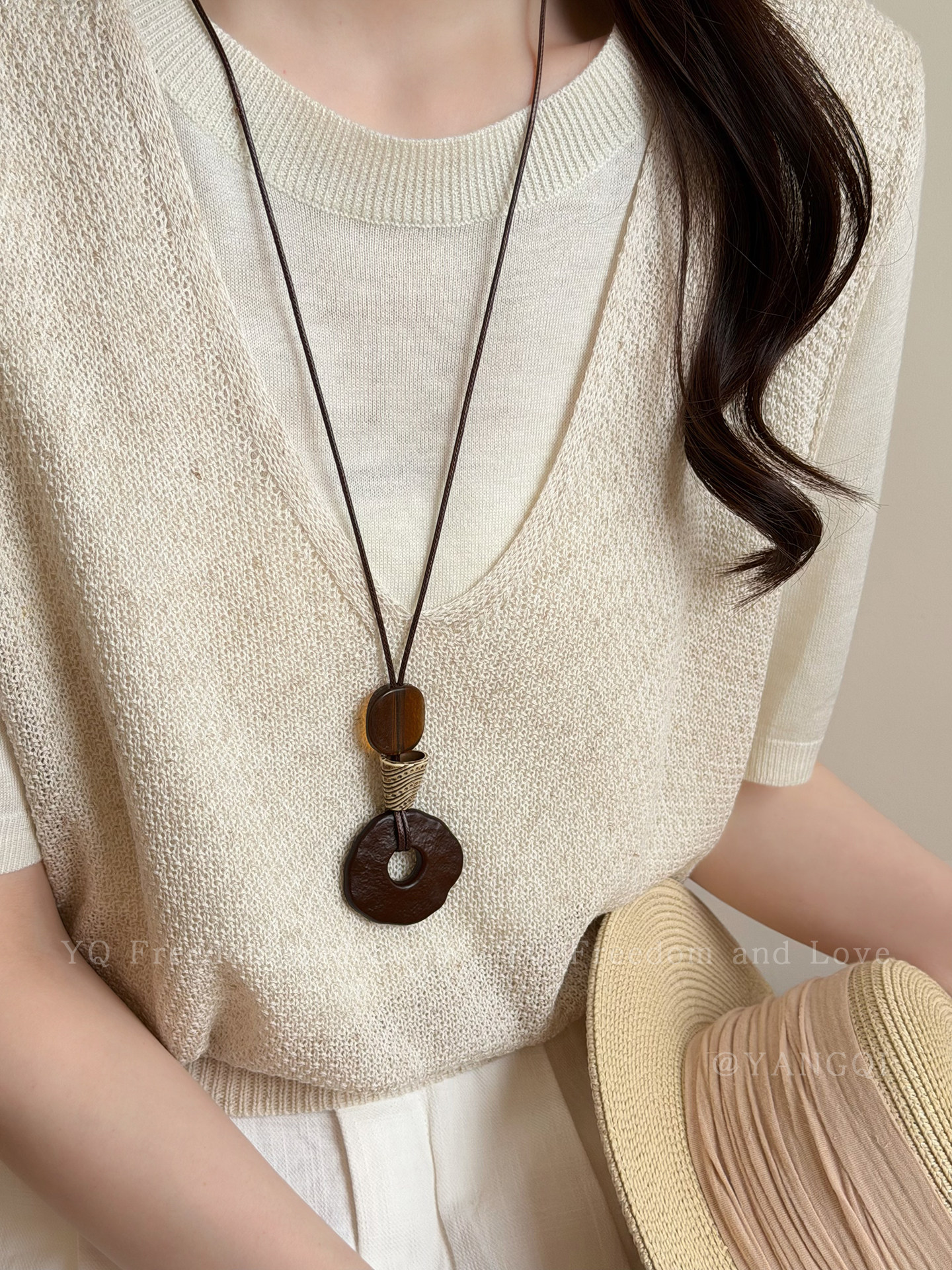 Vintage Brown Pendant Long Necklace for Women 2026 New Summer Sweater Chain for Clothing Decoration Accessory