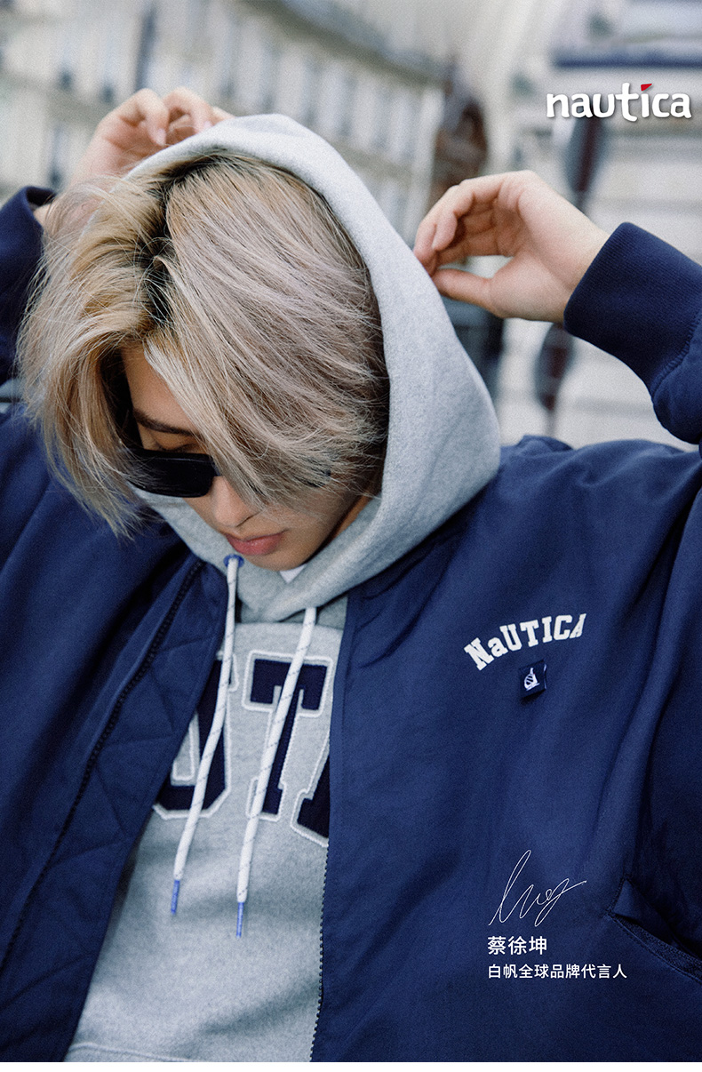 [Cai Xukun Same Model] nautica White Fan Loose Lip Bag Baseball cotton-padded jacket Thick Jacket JW5326
