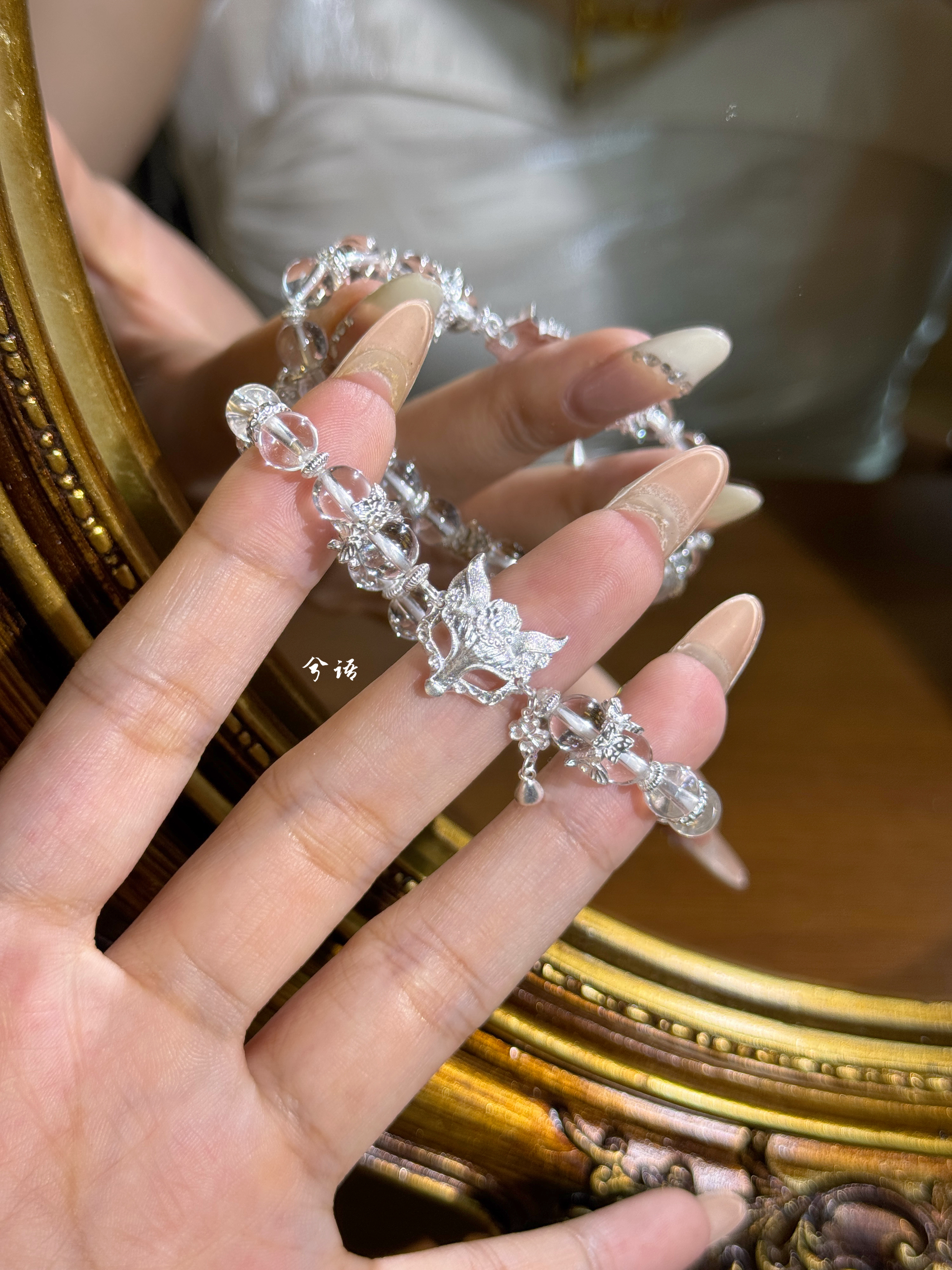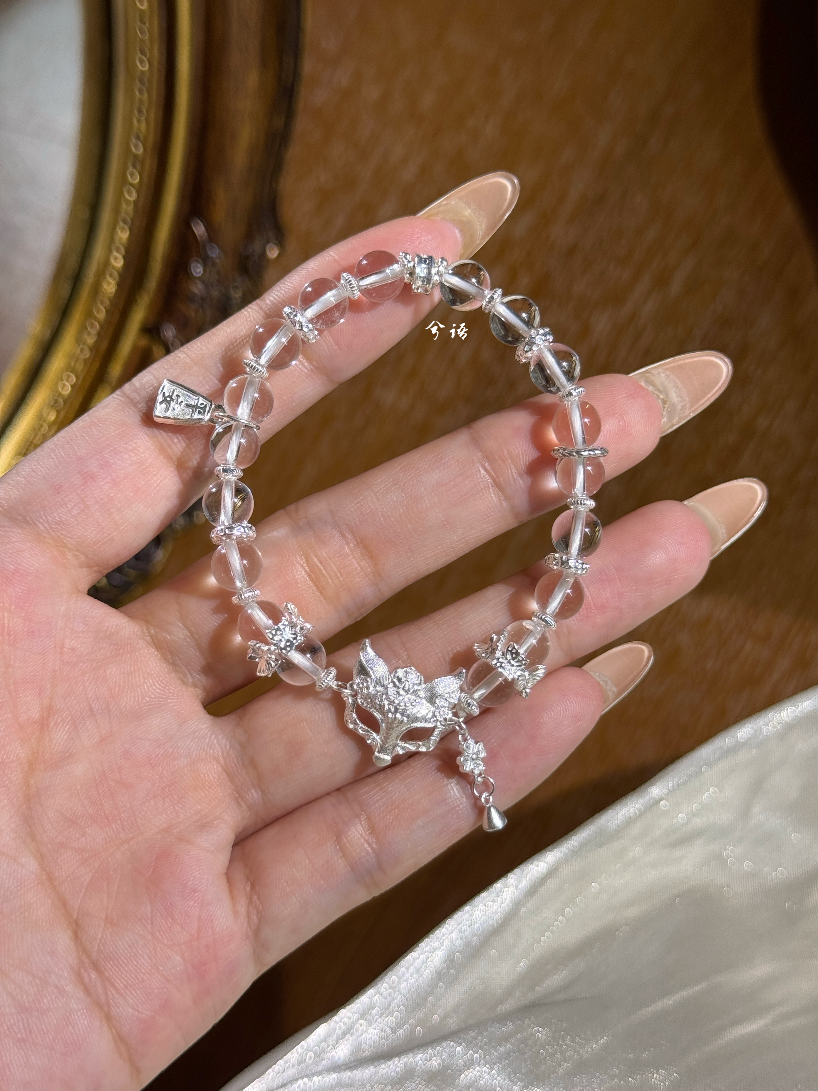 Xiyu'Spirit Fox' 999 Pure Silver Bracelet for Women, Fox Mask, White Crystal, Pure Silver, New Chinese Style National Style Gift