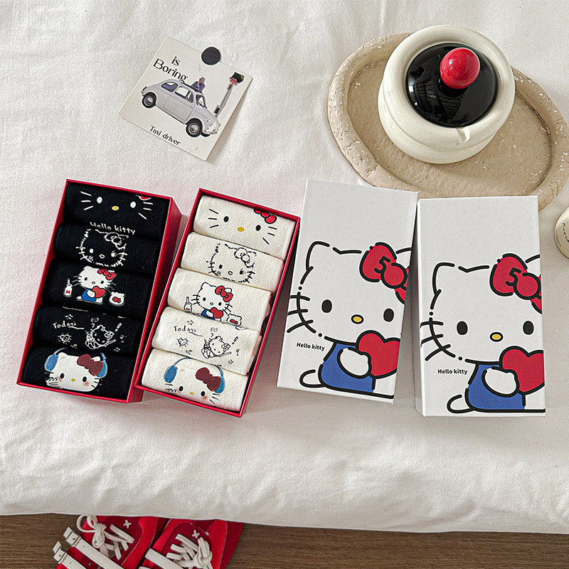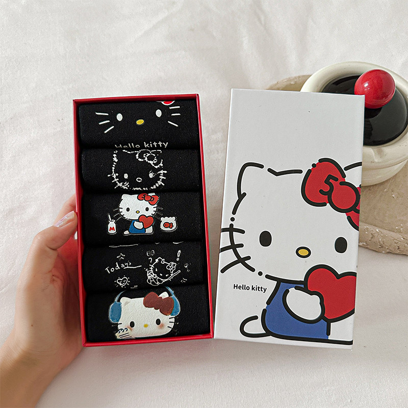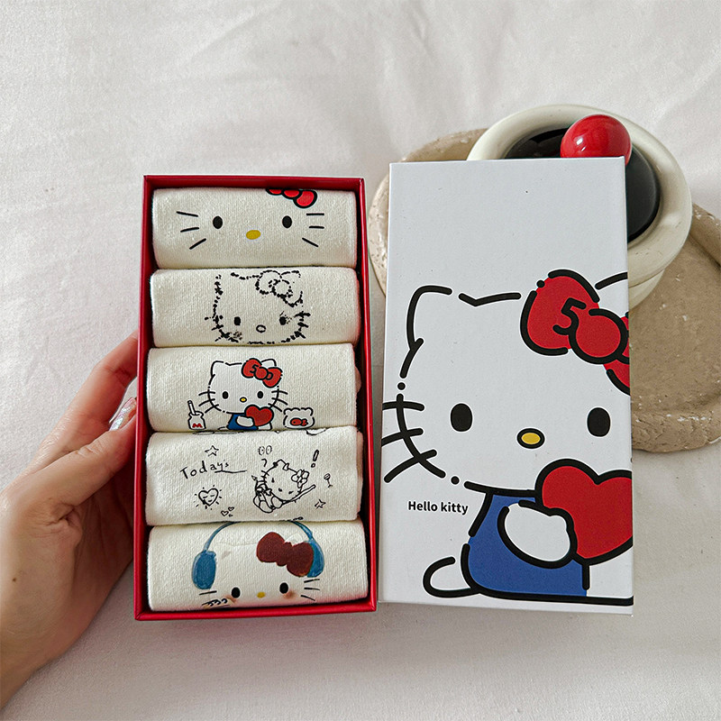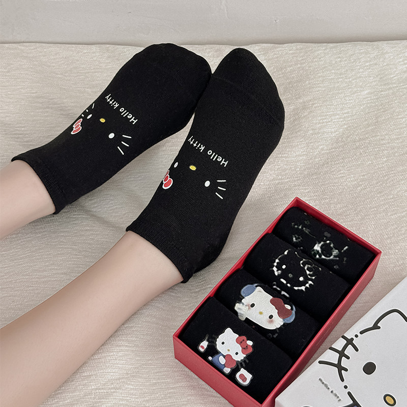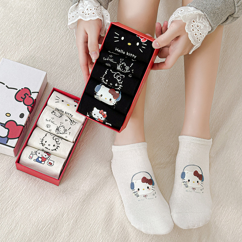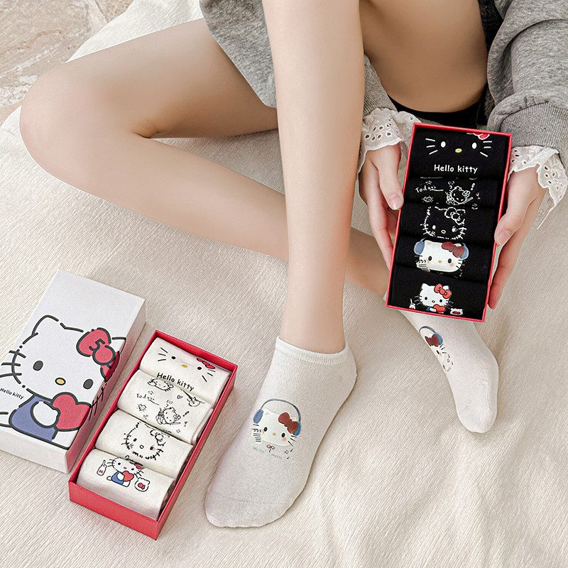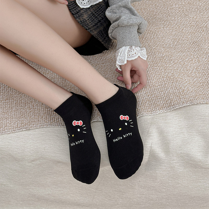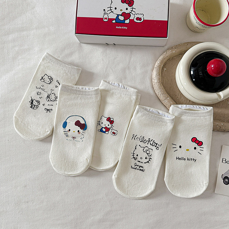 Boxed Non-Slip No-Show Cute Socks for Women, Boat Socks, Kt Cat Pure Cotton Invisible Socks, Low-Cut Short Socks, Cartoon Japanese Style Socks