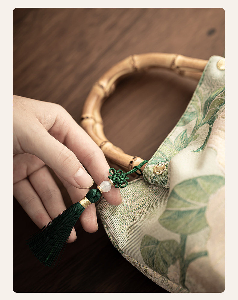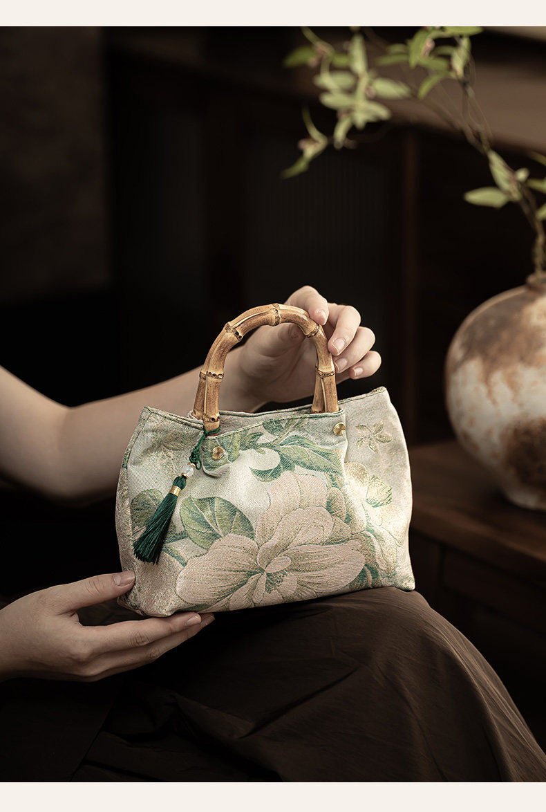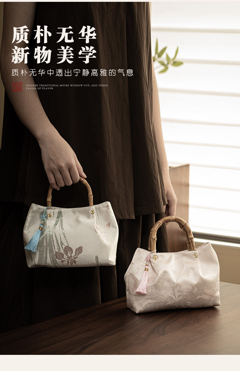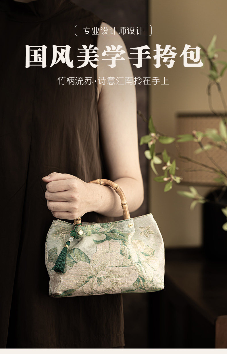Chinese-Style Bamboo Handle Handbag Paired with Cheongsam, Mini Handbag for Women, 2025 New Thin and Compact Women's Wrist Bag