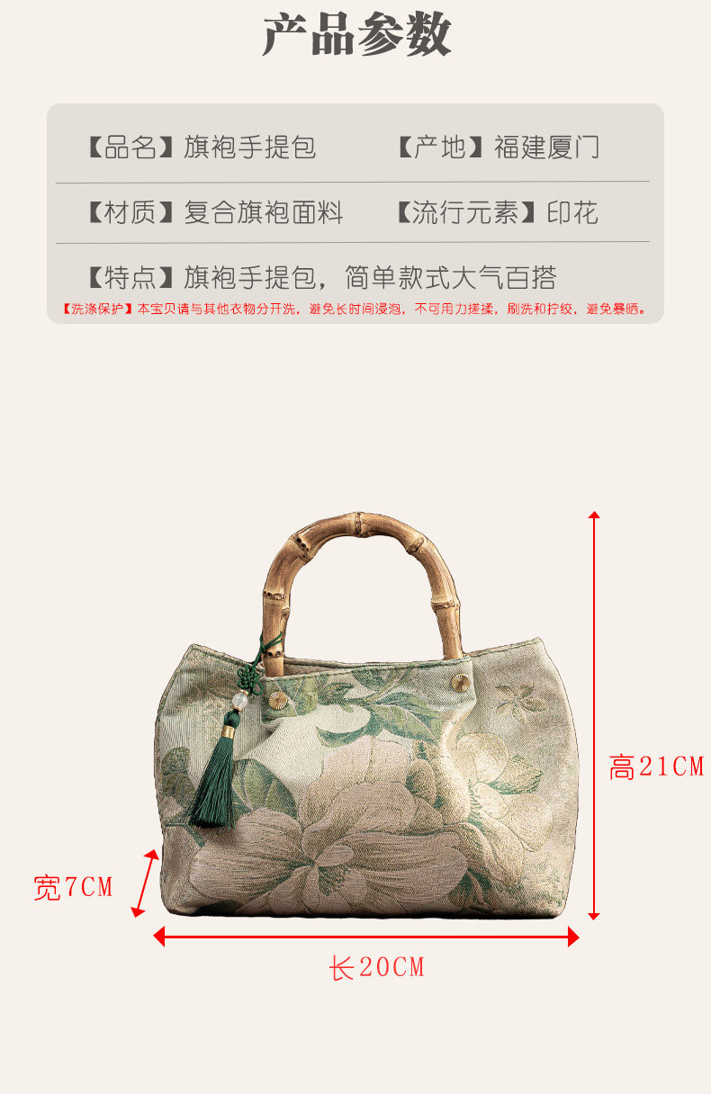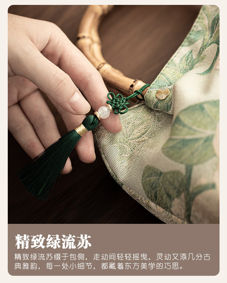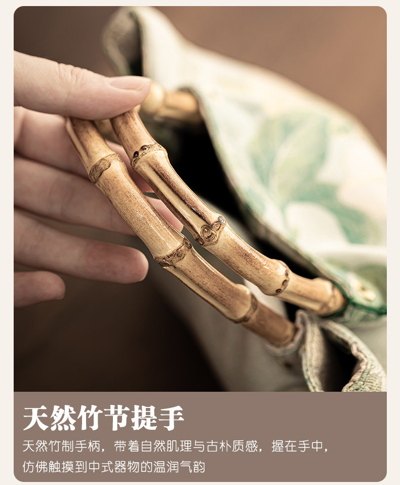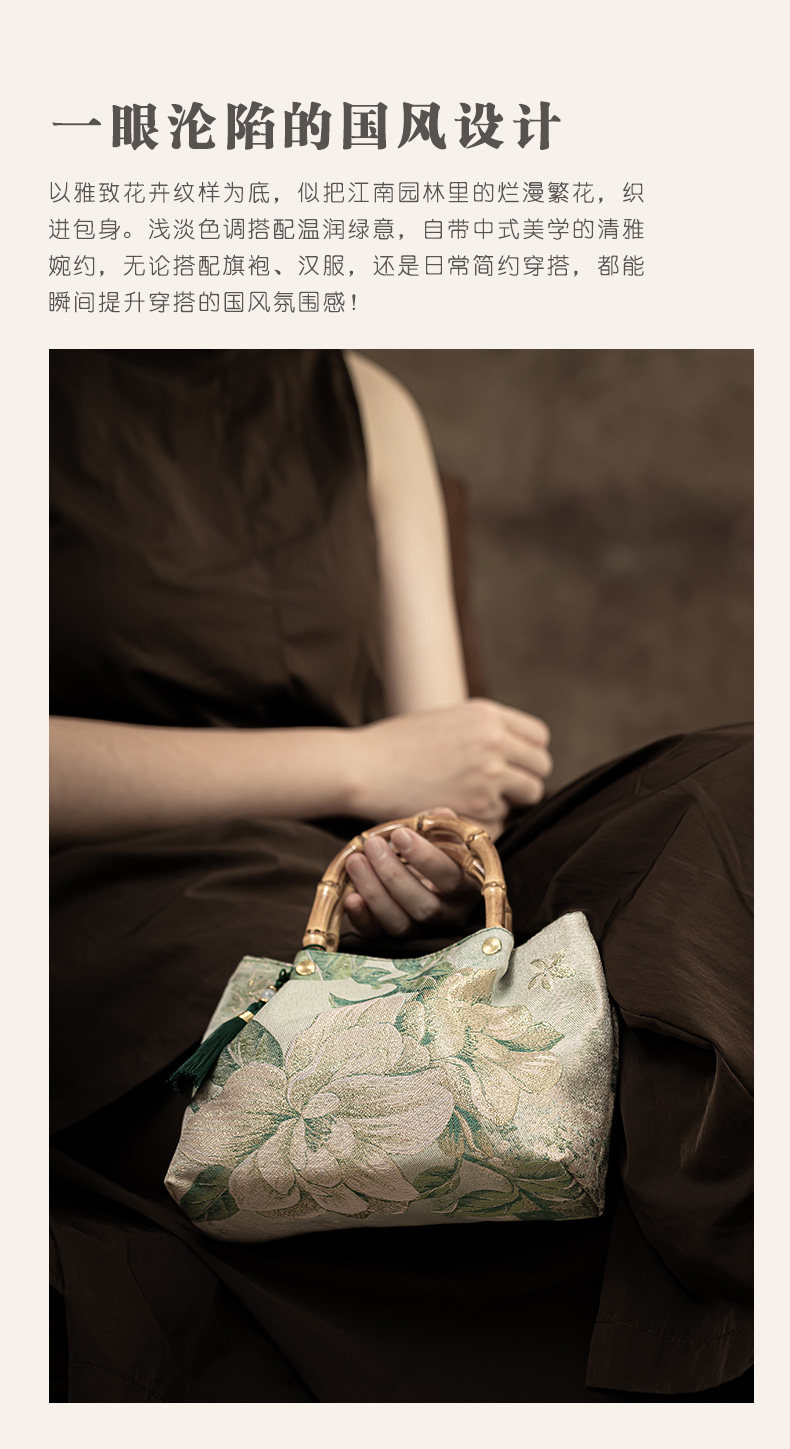 Chinese-Style Bamboo Handle Handbag Paired with Cheongsam, Mini Handbag for Women, 2025 New Thin and Compact Women's Wrist Bag