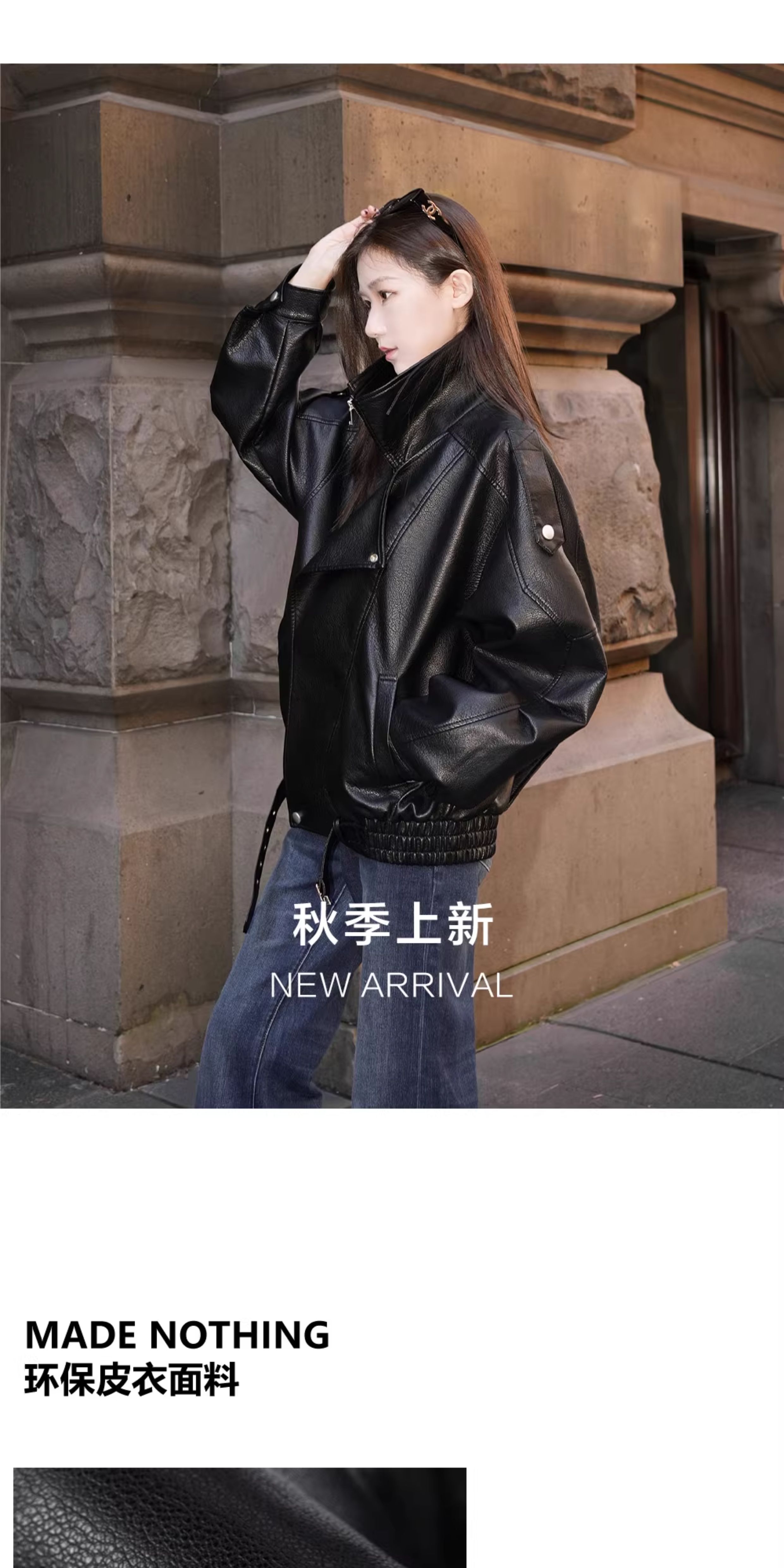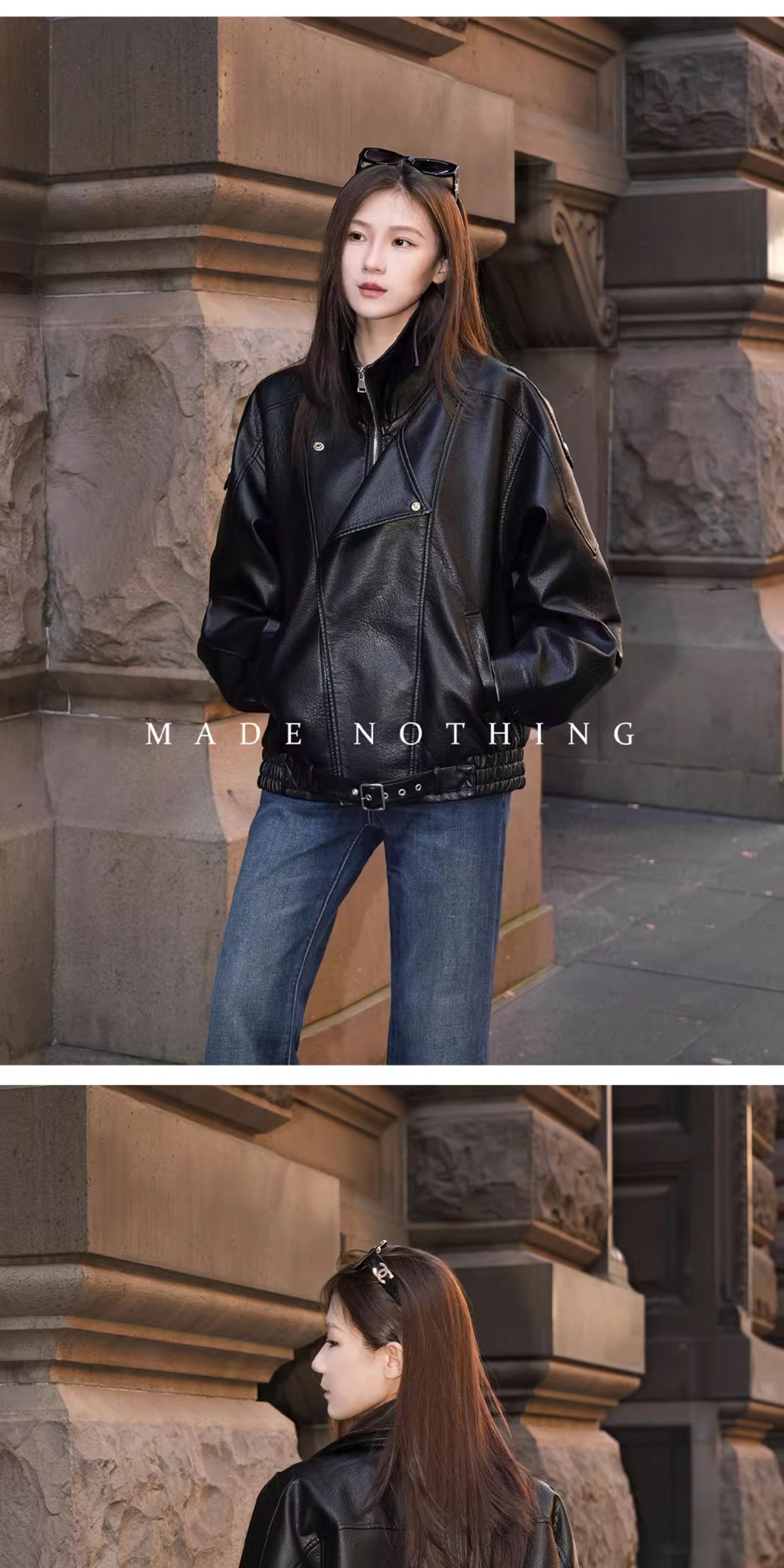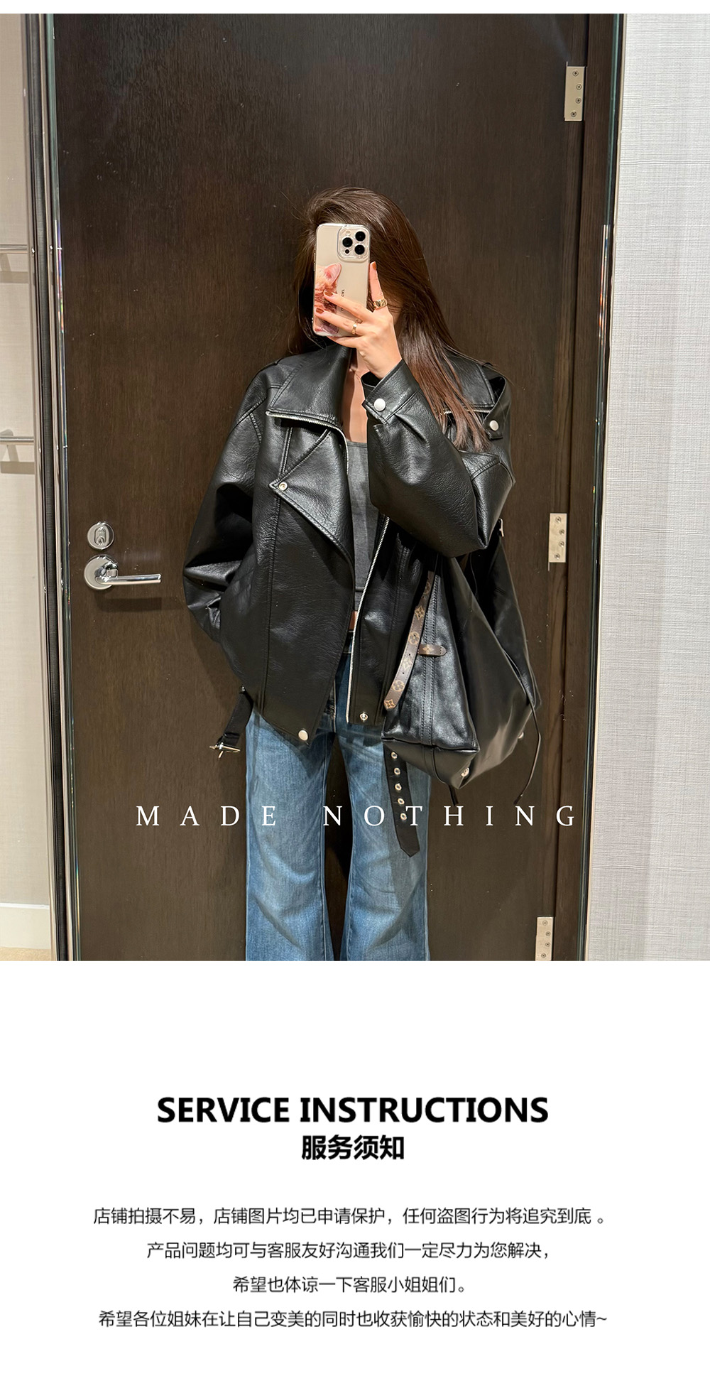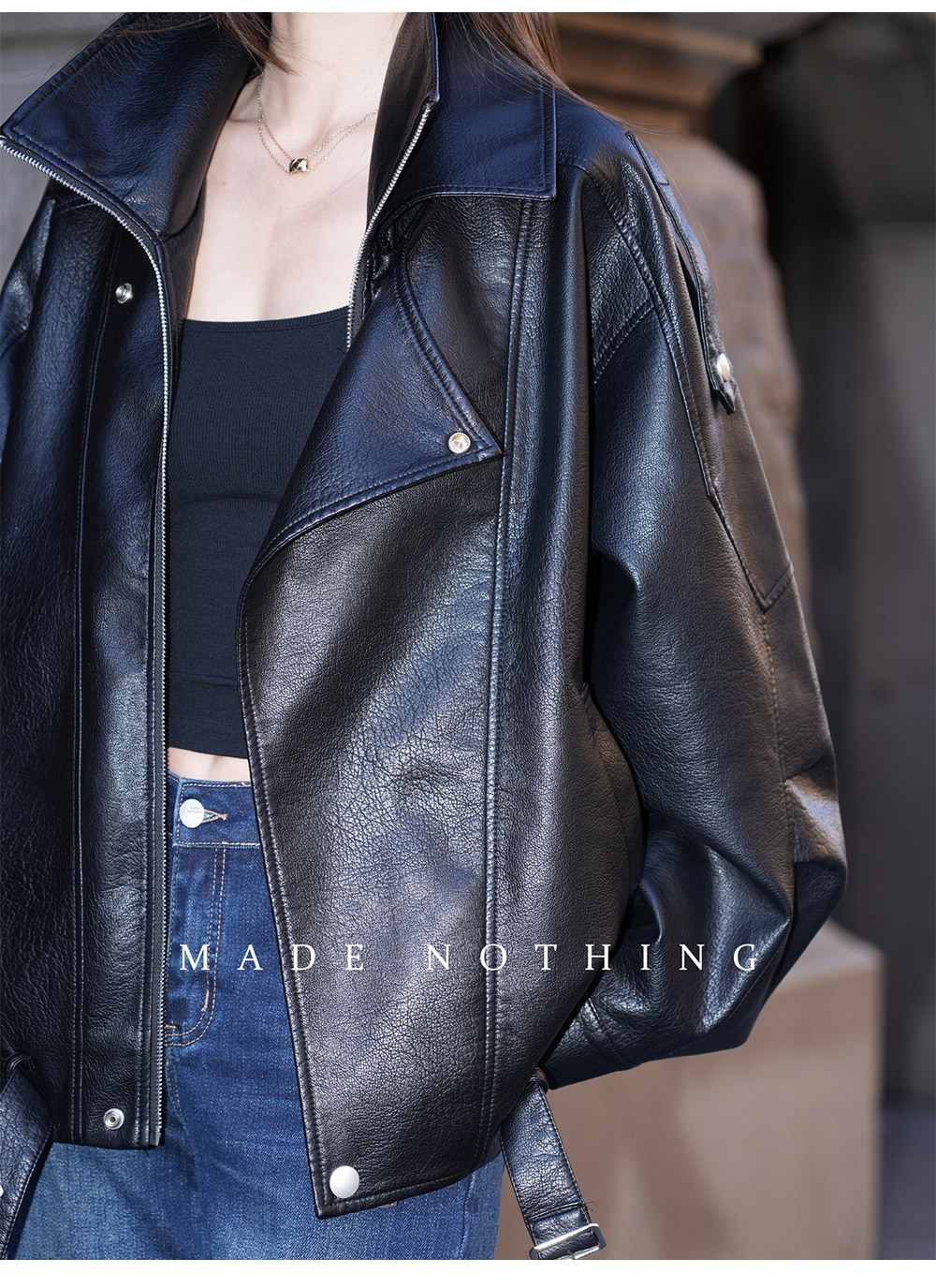 Made Nothing Leather Jacket 012 Heavy Craft Autumn Double Collar Black Leather Jacket Loose American Style Motorcycle Jacket for Women