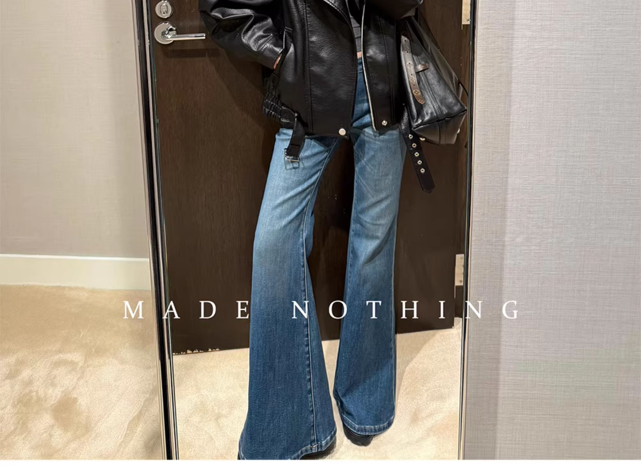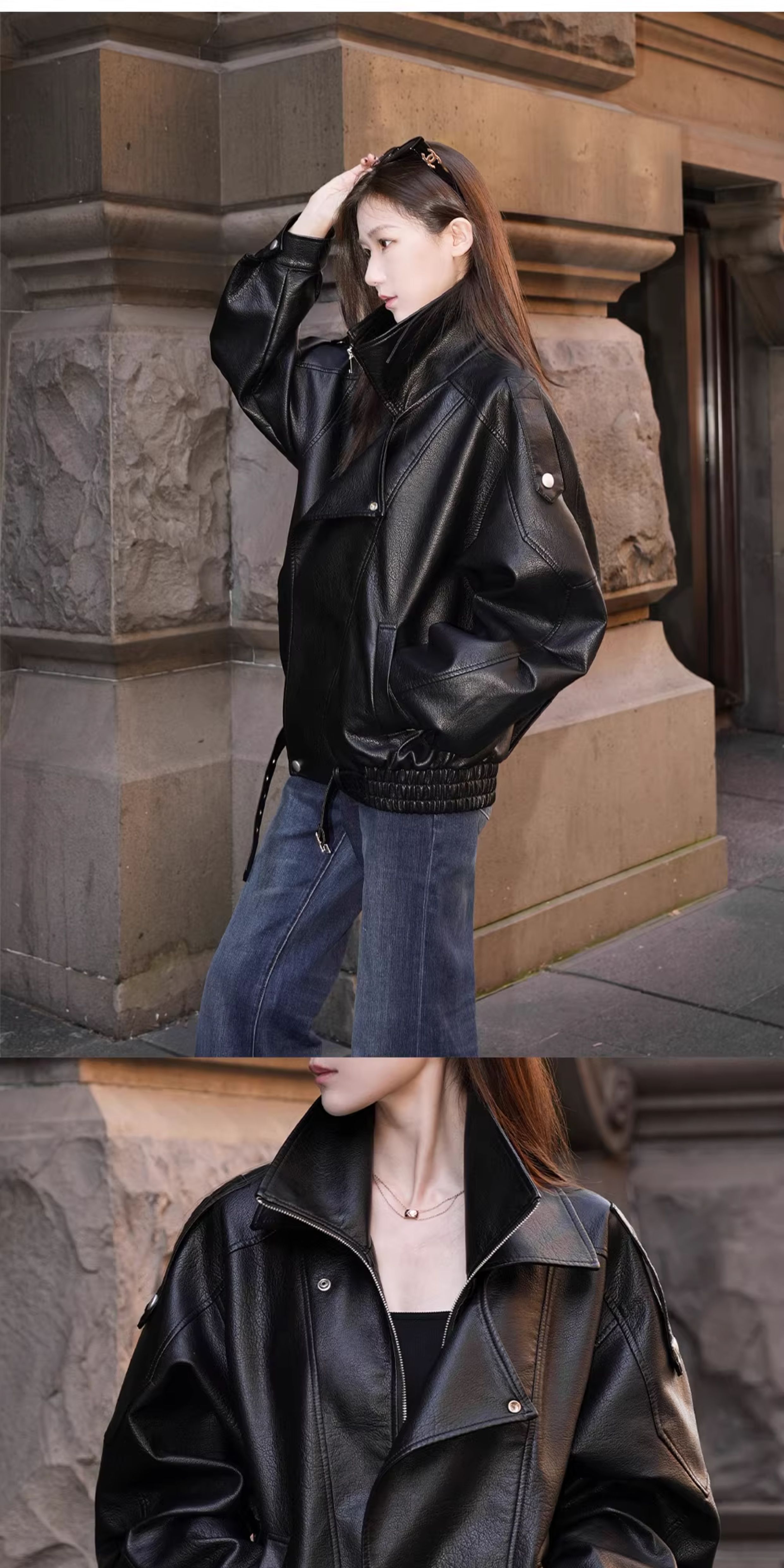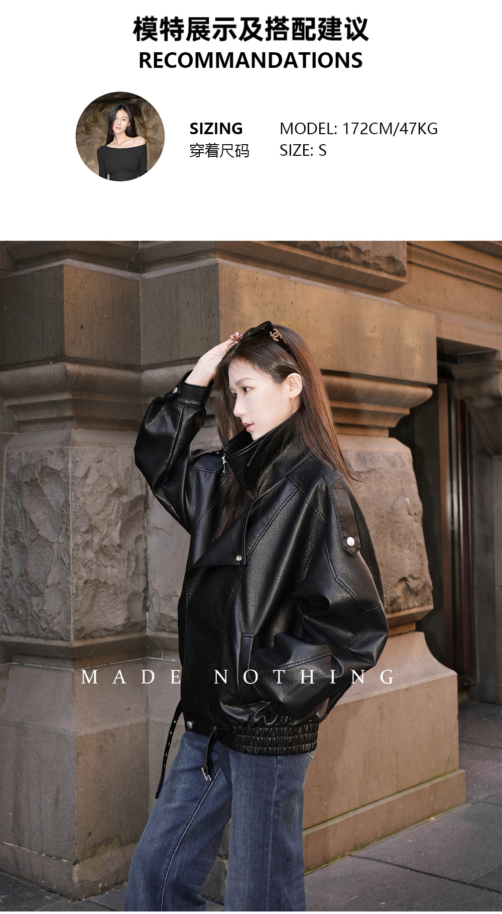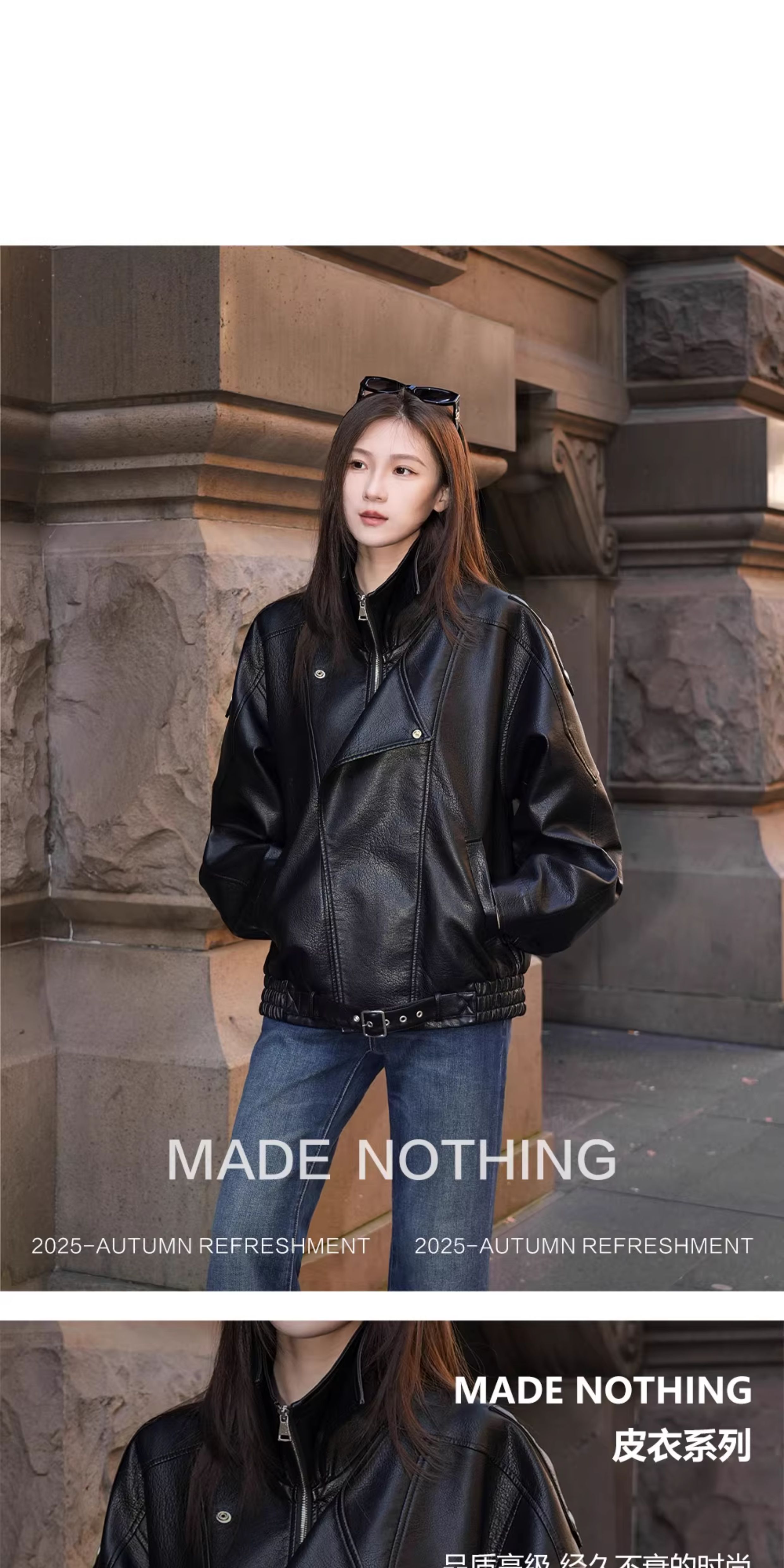 Made Nothing Leather Jacket 012 Heavy Craft Autumn Double Collar Black Leather Jacket Loose American Style Motorcycle Jacket for Women