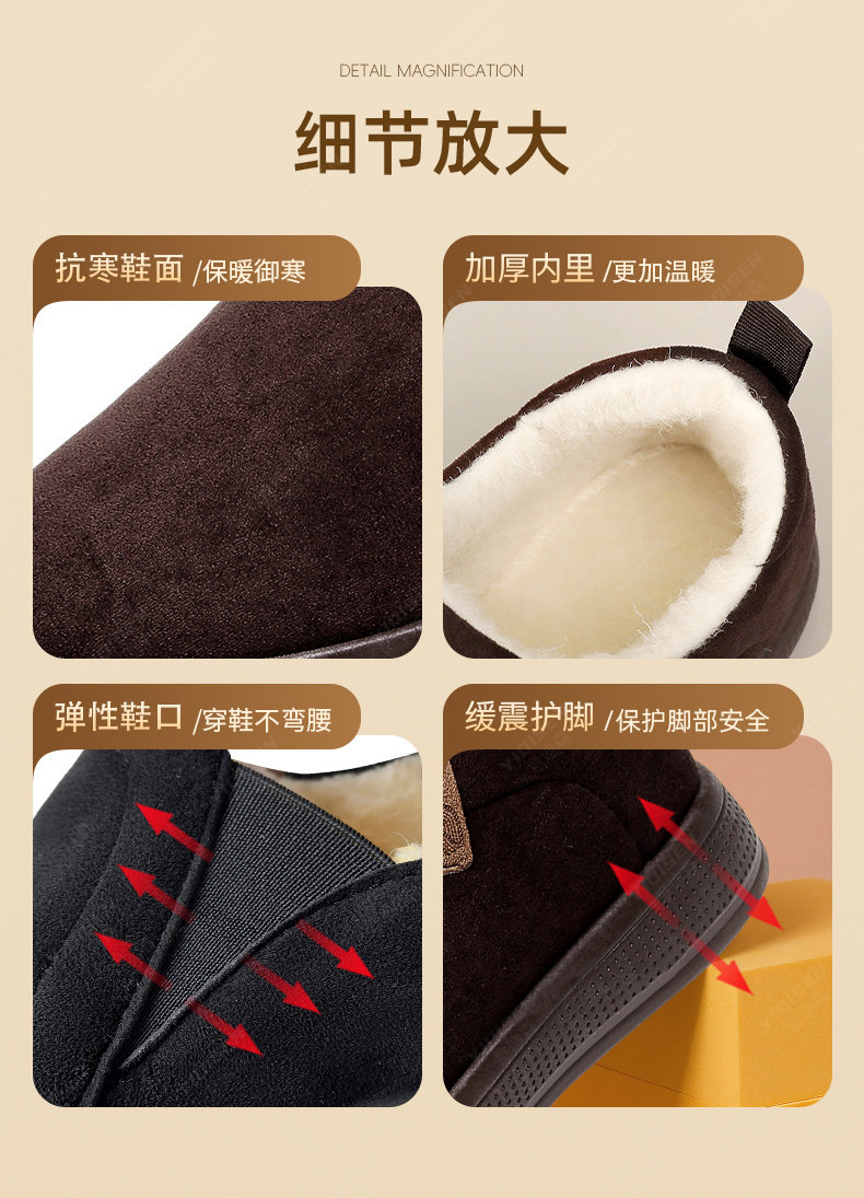 Yidison Old Beijing Cotton Shoes for Men, Winter Genuine Official official store Thickened Warm Non-Slip Dad Shoes, Slip-On