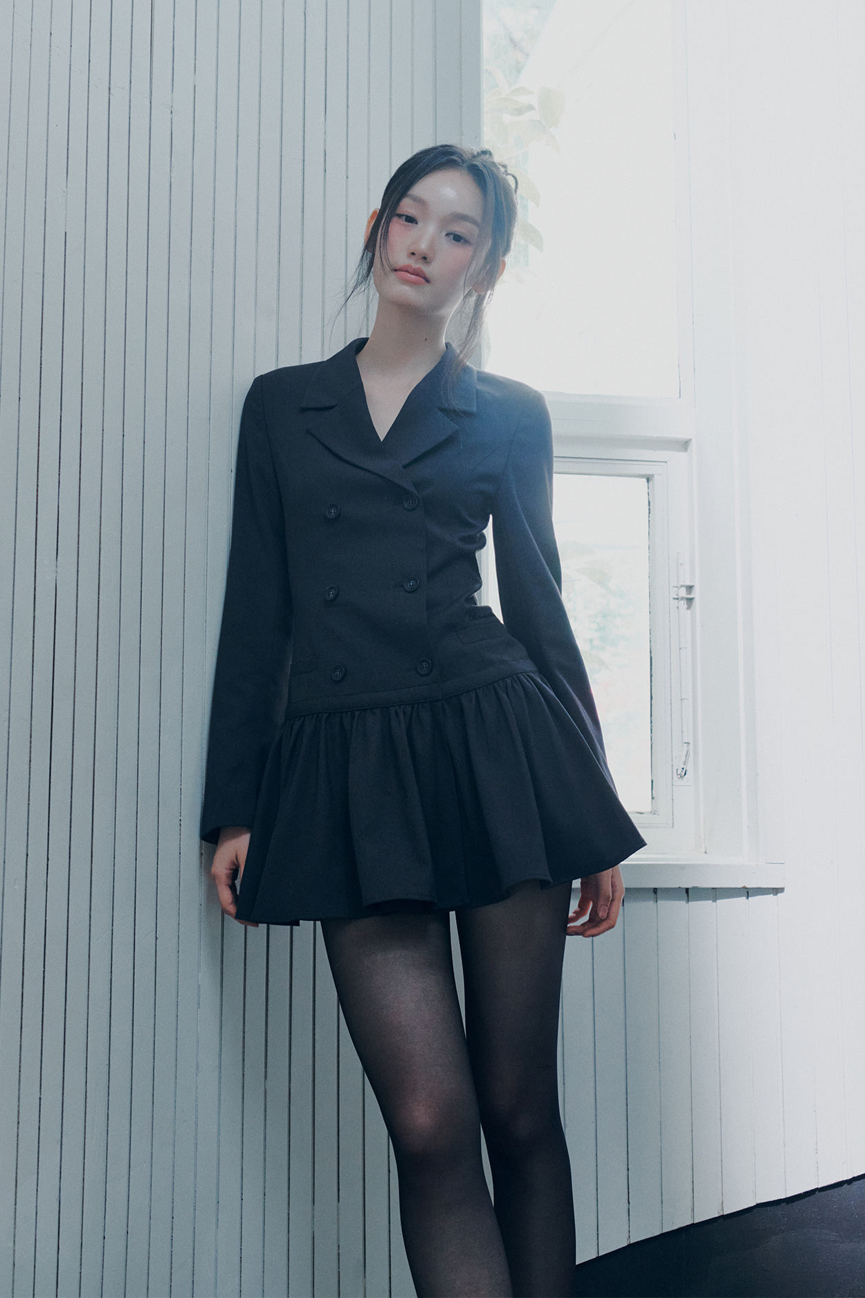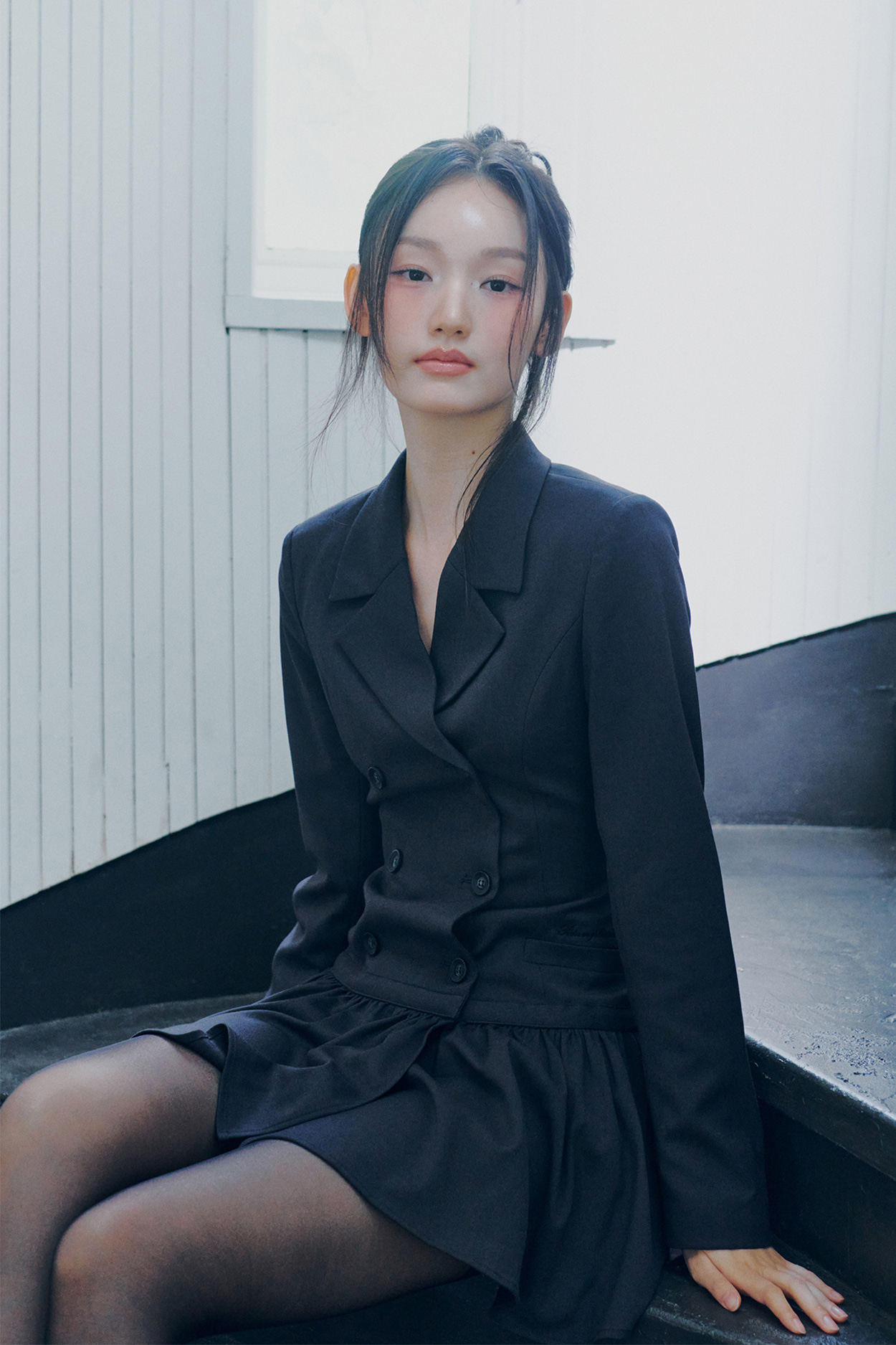25 Autumn Korean Pain or Pleasure Niche Design Commuter Style Double-Breasted Suit-Style Dress for Women