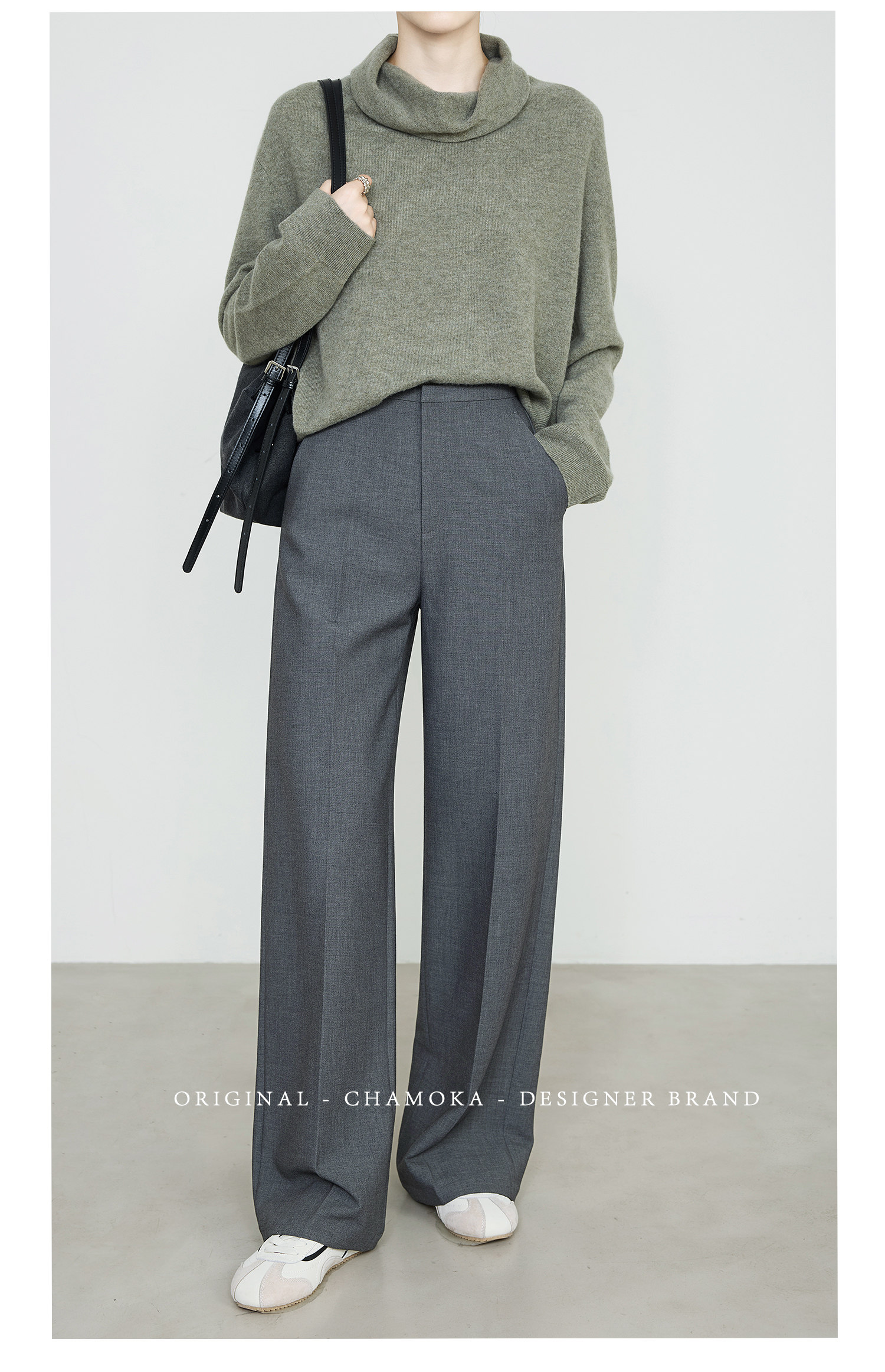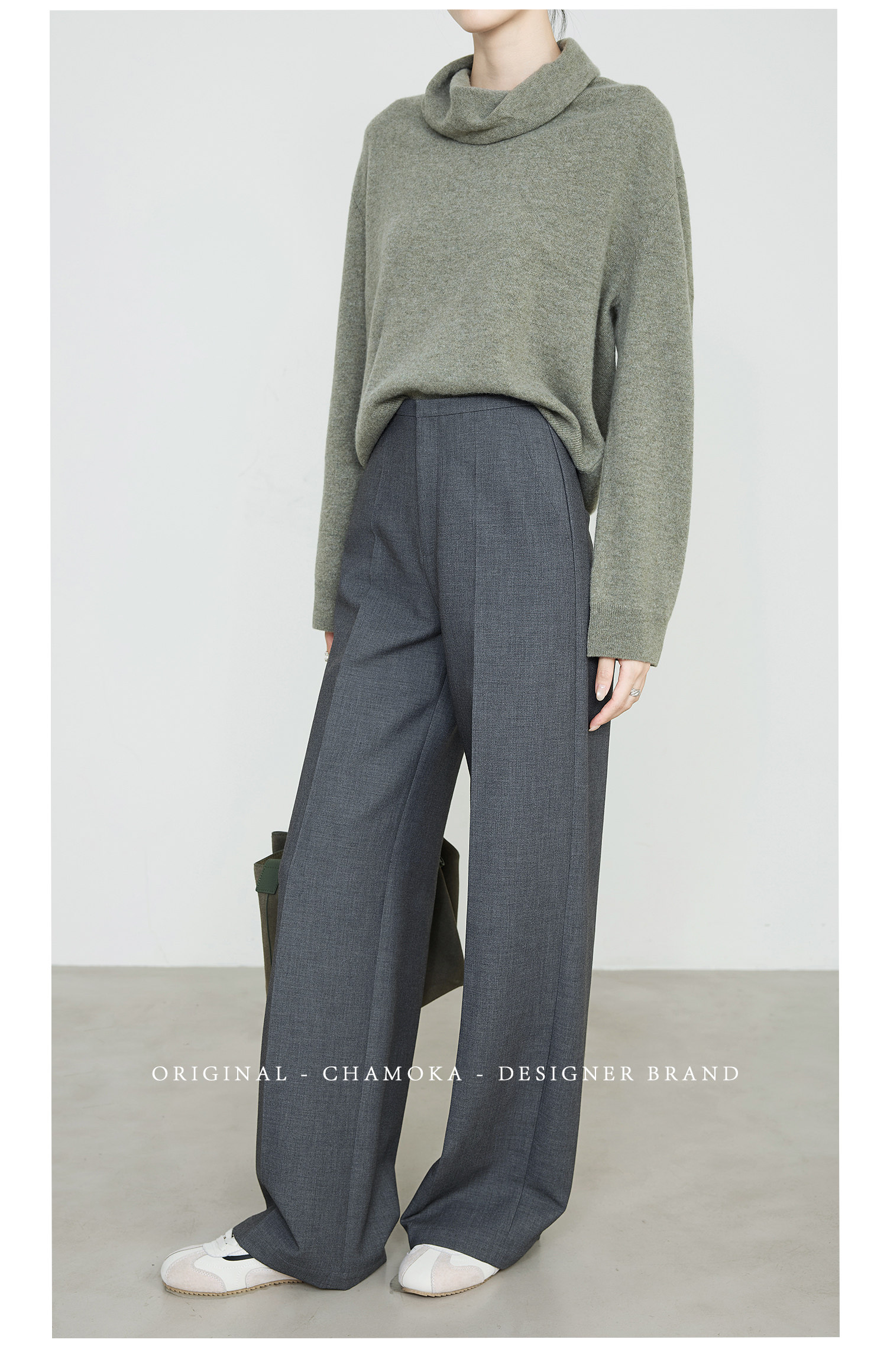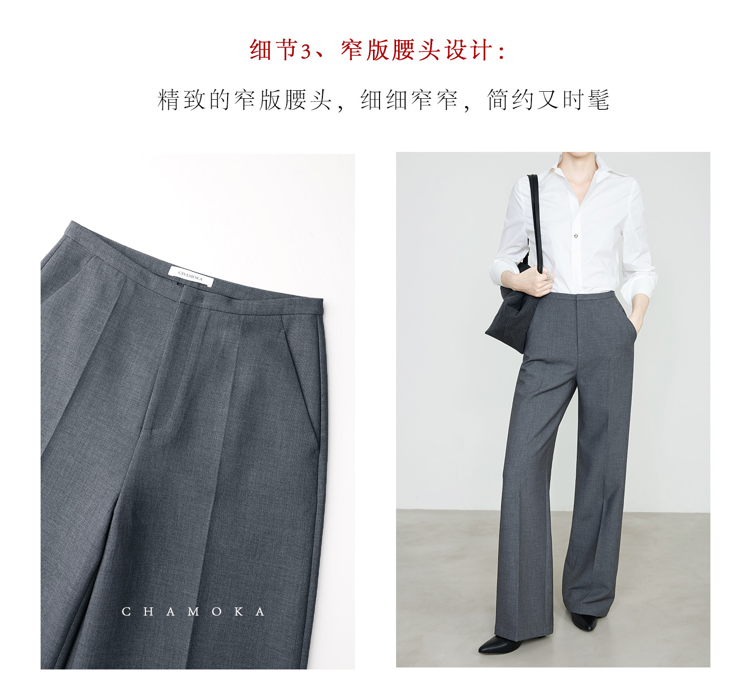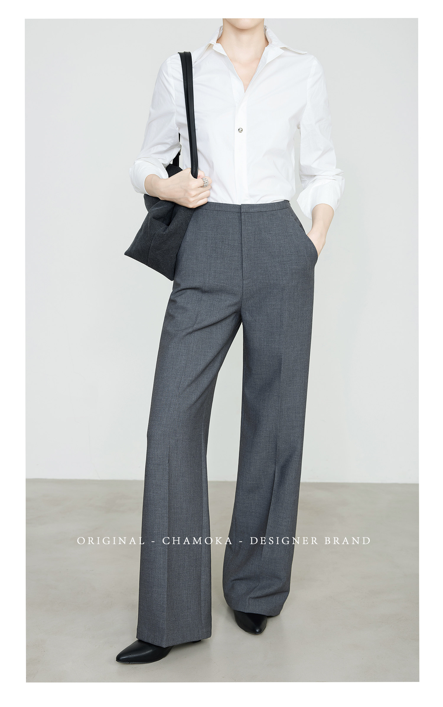 Xia Moka High-Waisted Gray Suit Pants for Women, New Minimalist Narrow Wide-Leg Tencel Wool Straight Pants 9733