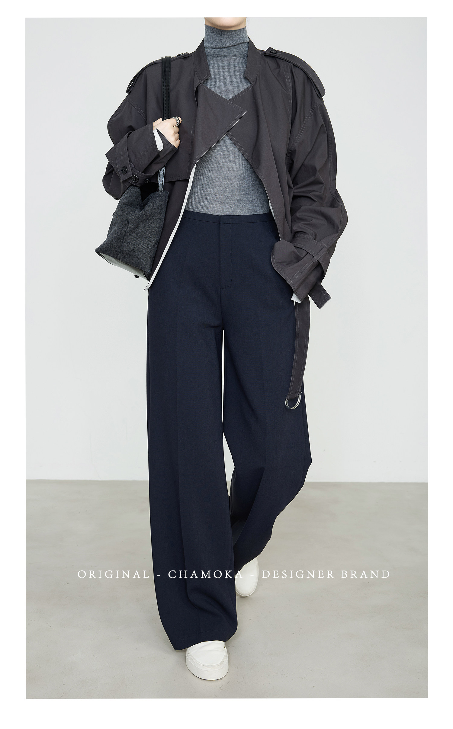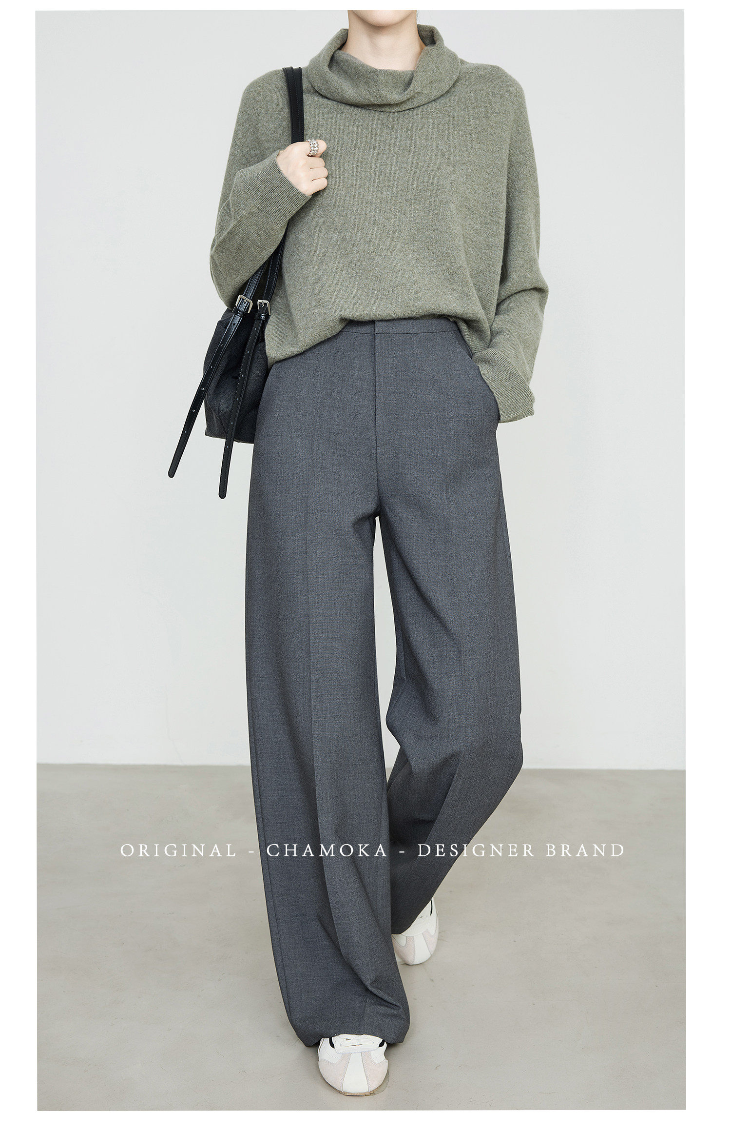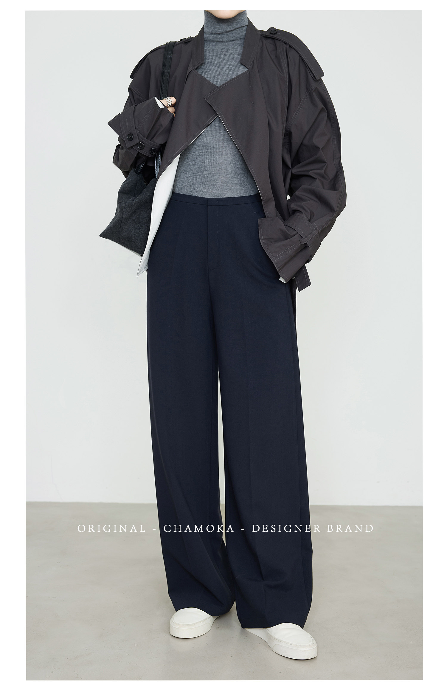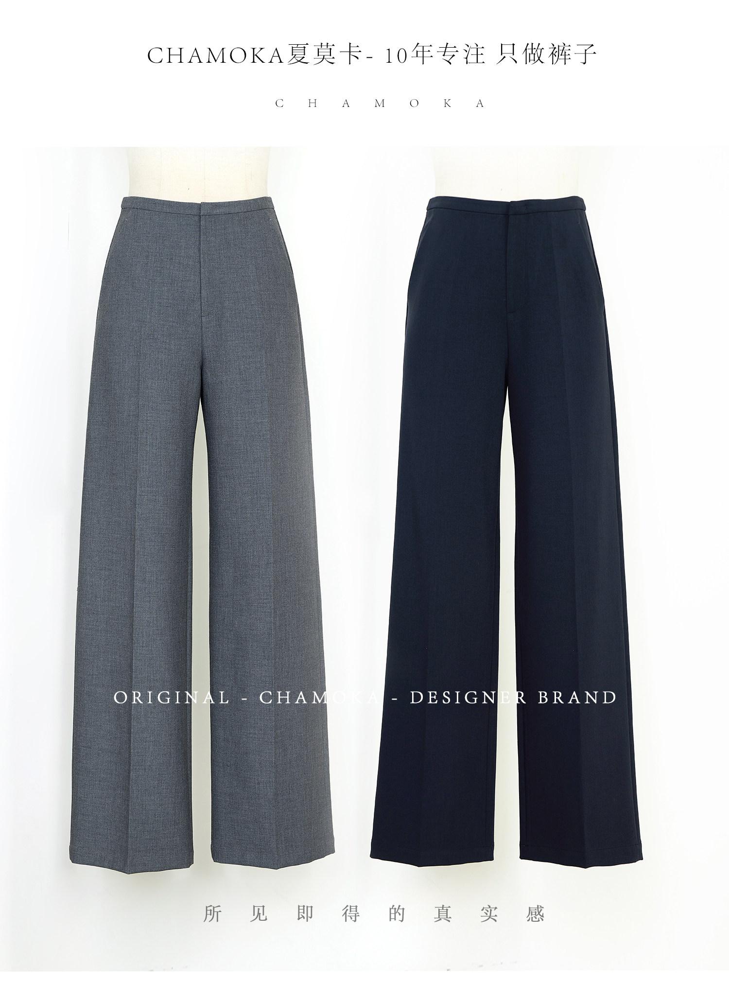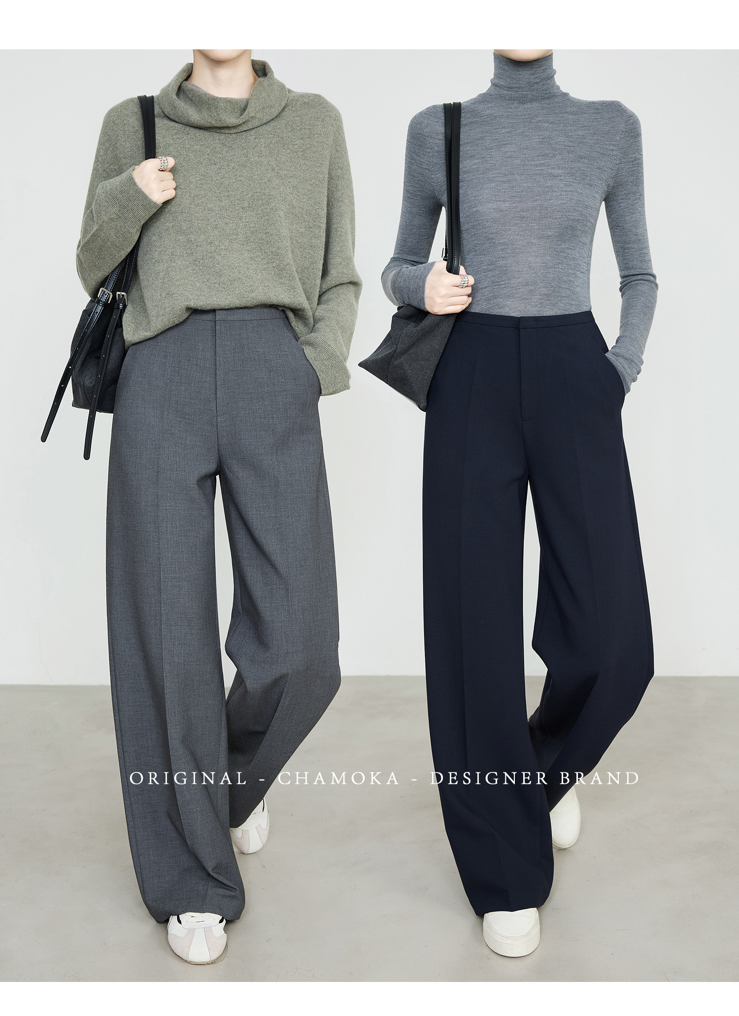 Xia Moka High-Waisted Gray Suit Pants for Women, New Minimalist Narrow Wide-Leg Tencel Wool Straight Pants 9733