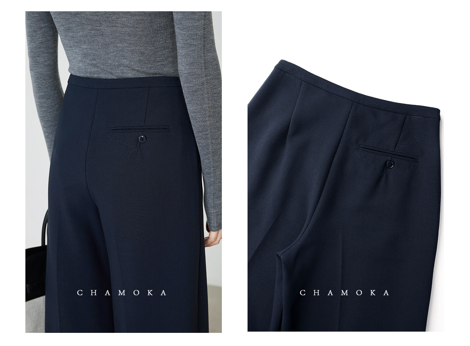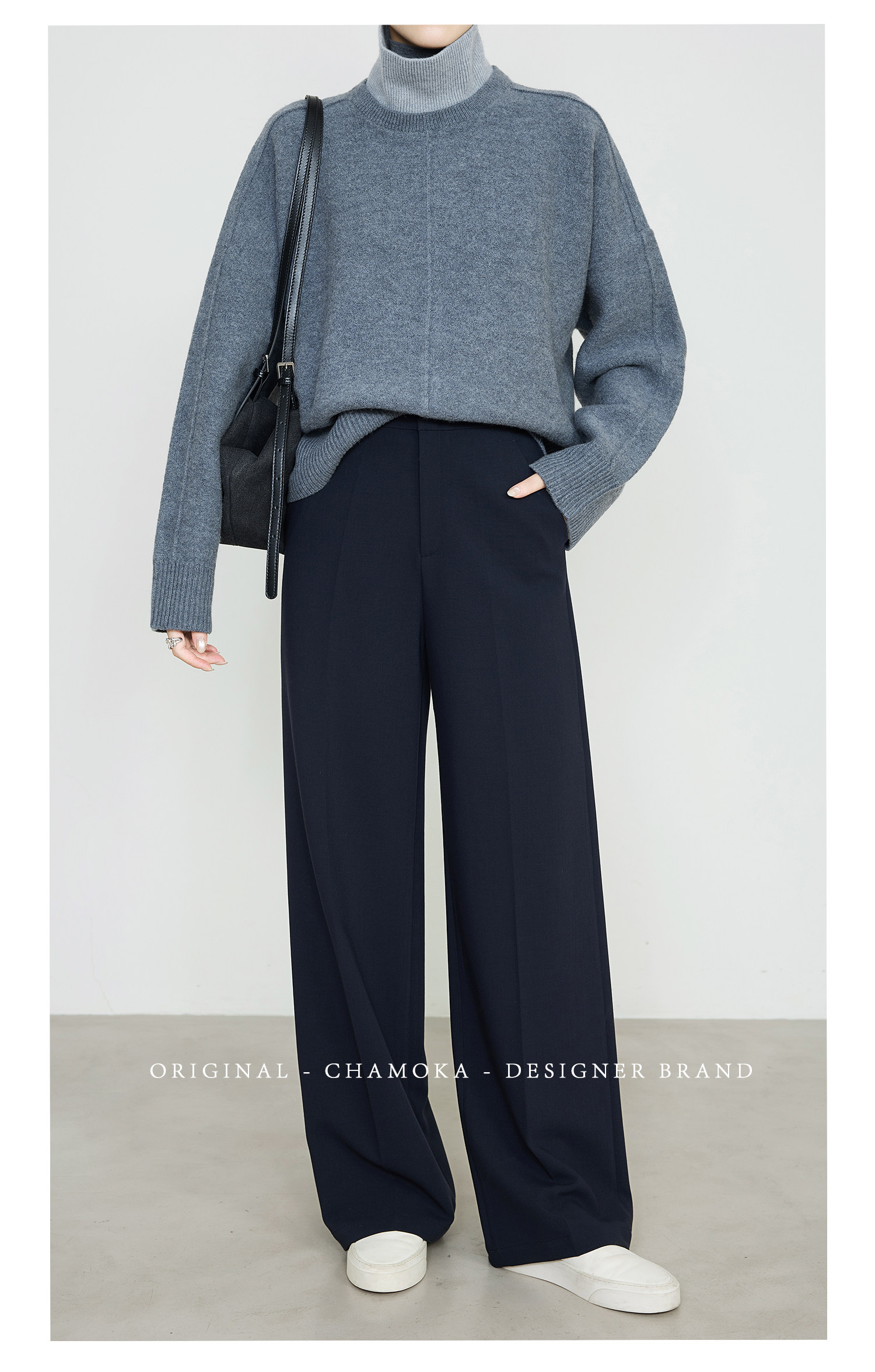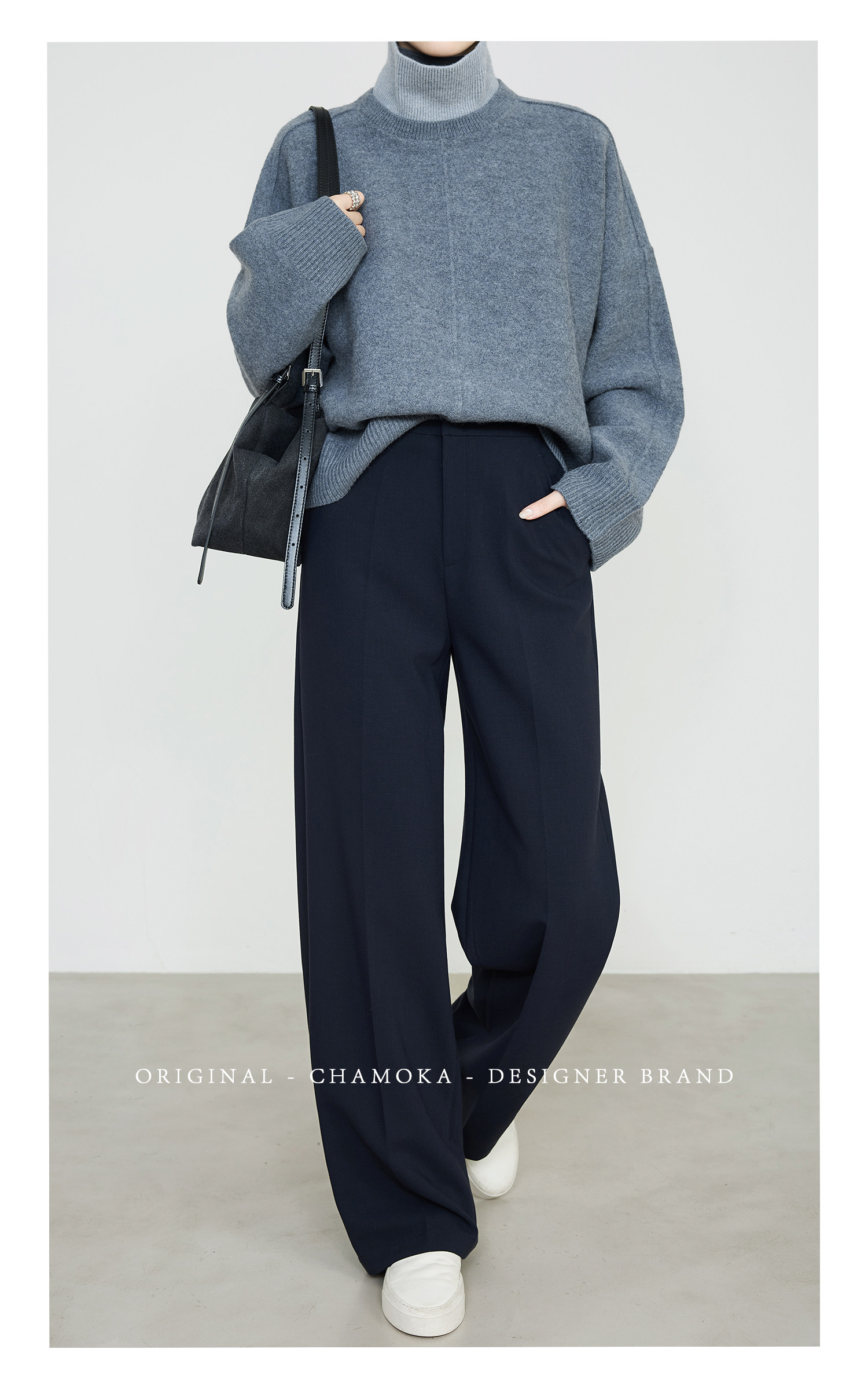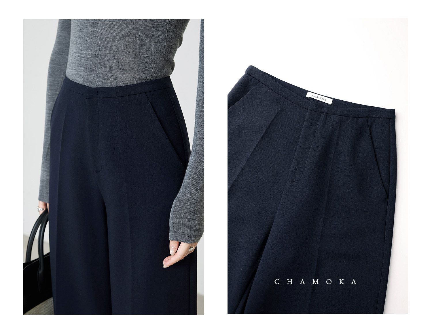 Xia Moka High-Waisted Gray Suit Pants for Women, New Minimalist Narrow Wide-Leg Tencel Wool Straight Pants 9733