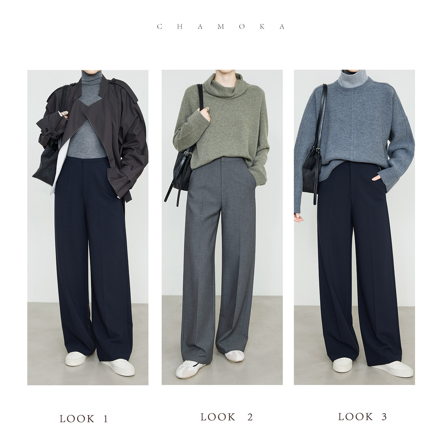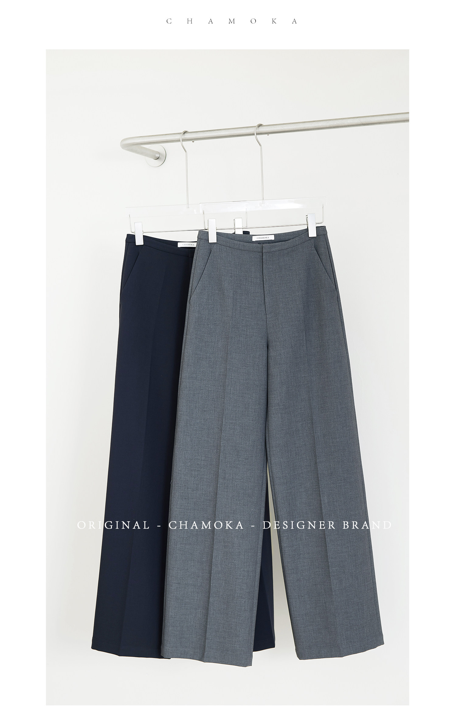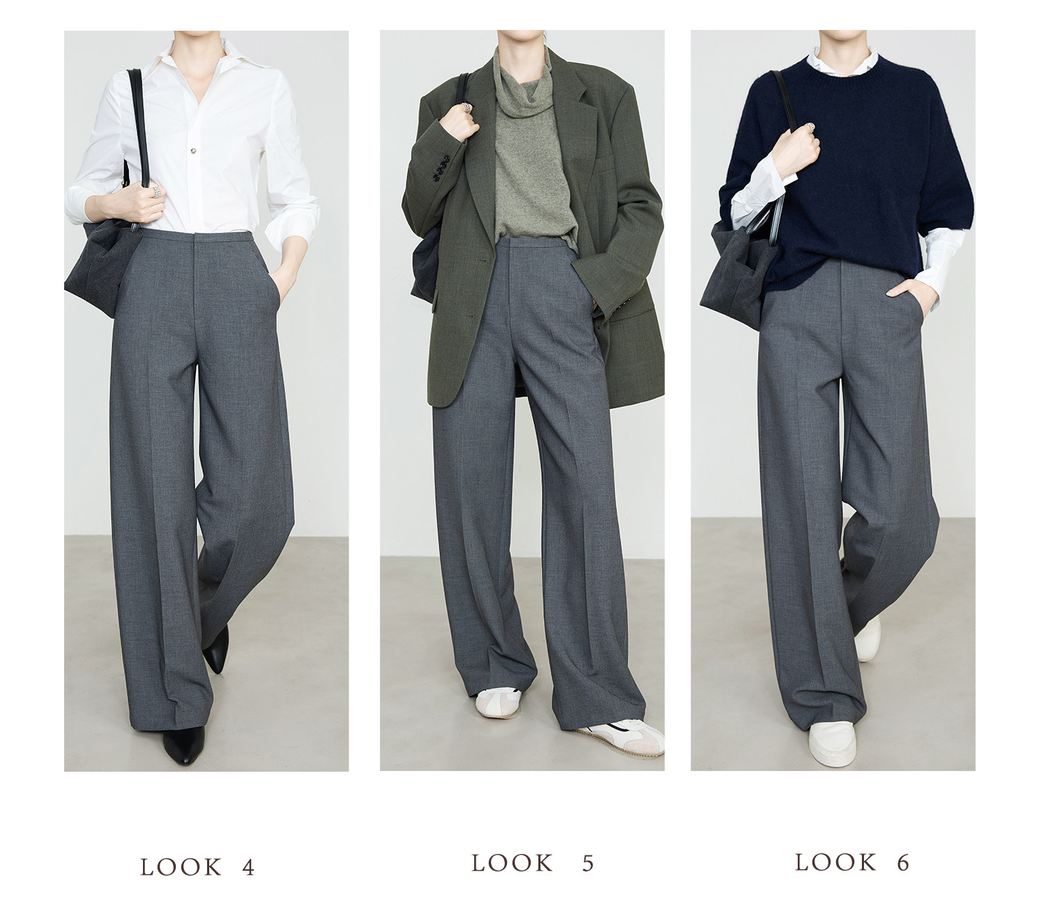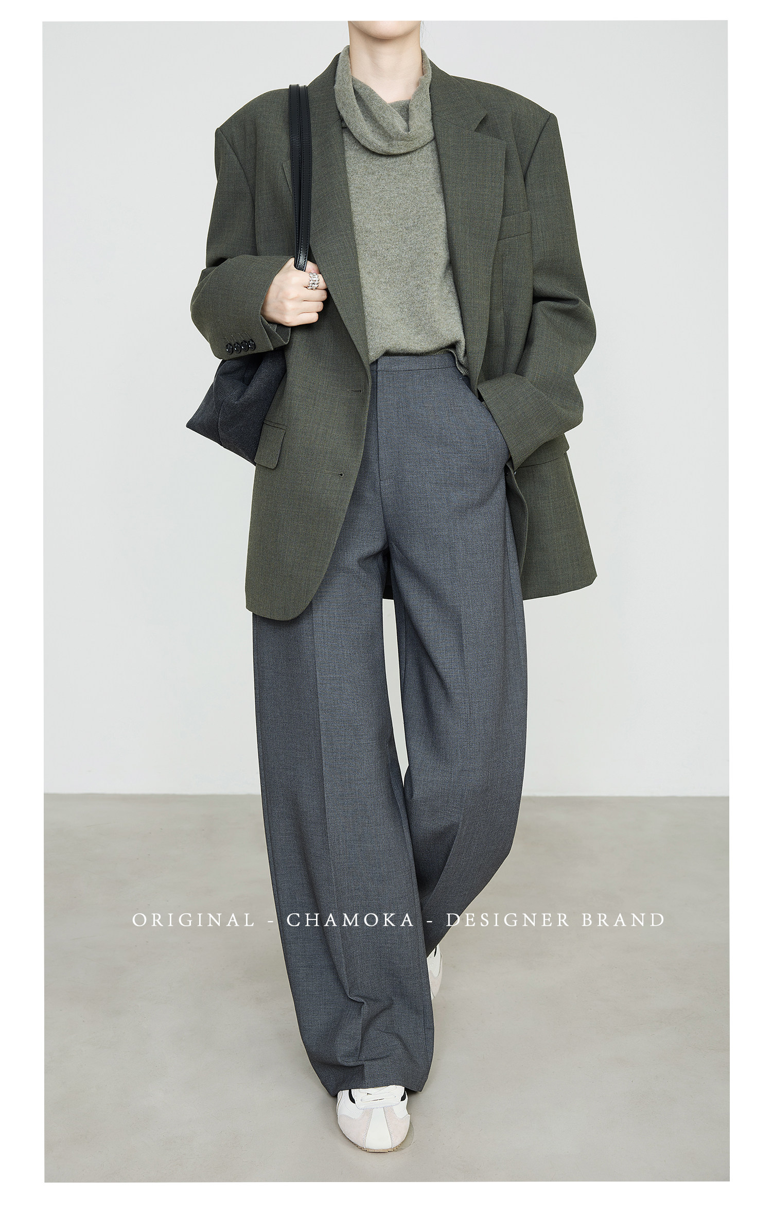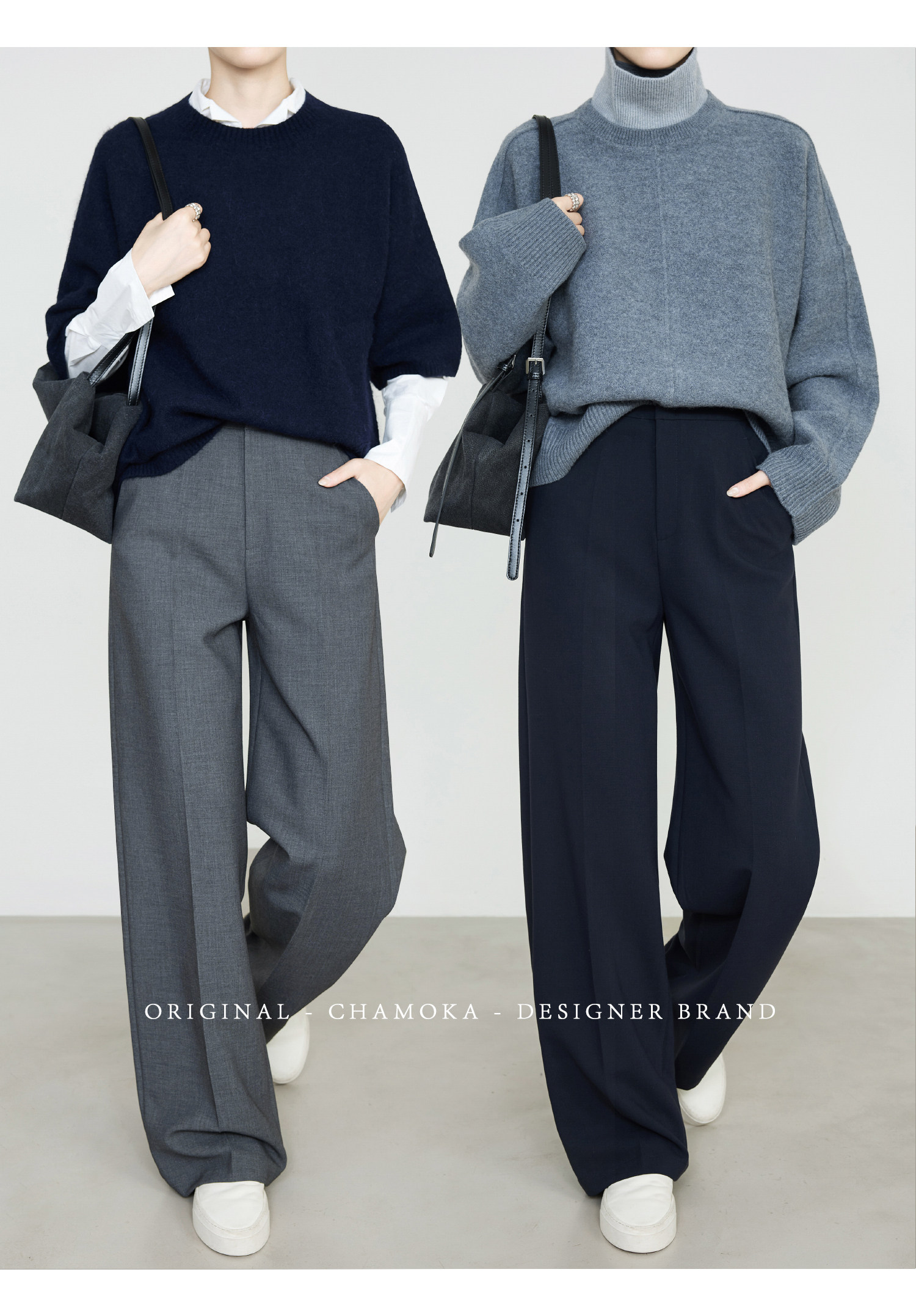 Xia Moka High-Waisted Gray Suit Pants for Women, New Minimalist Narrow Wide-Leg Tencel Wool Straight Pants 9733