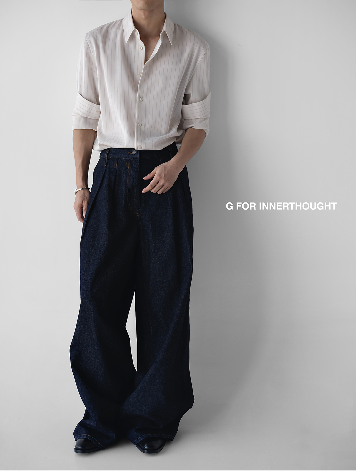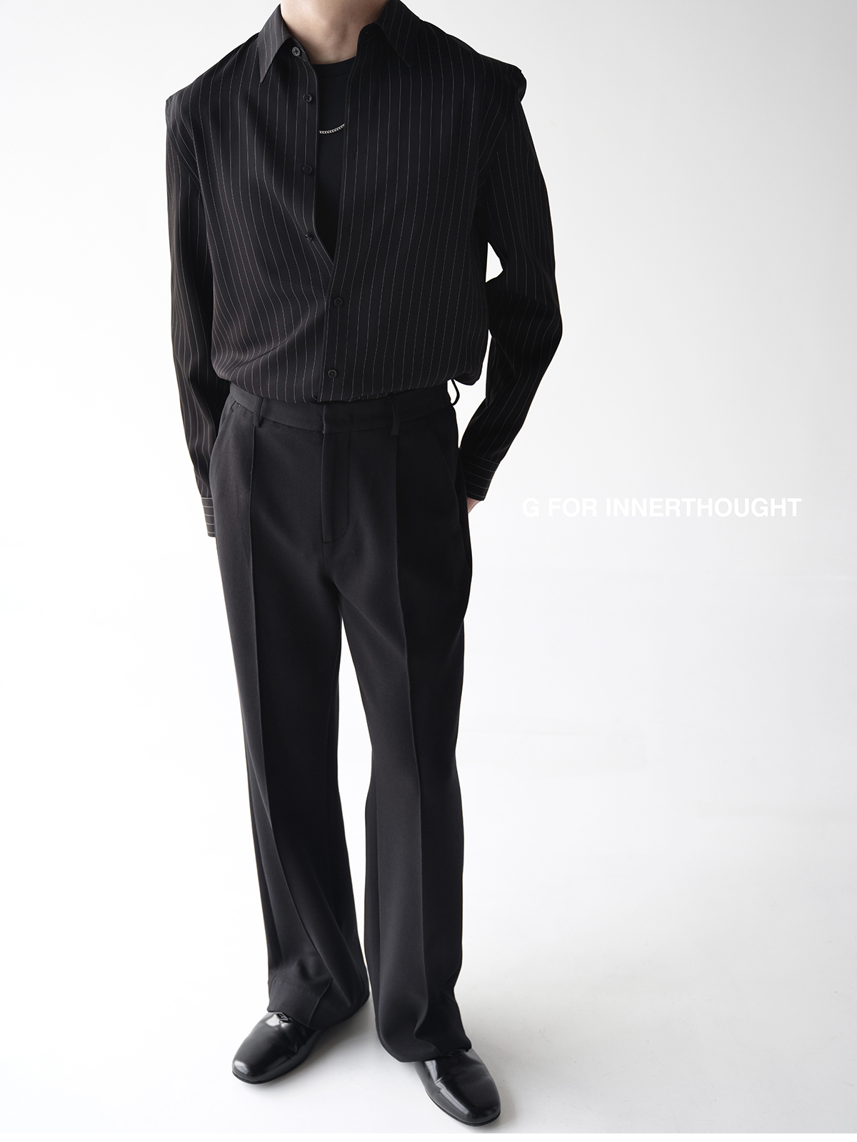 G for Innerthought Japanese Imported Triacetate Striped Wrinkle-Resistant Easy-Care Long-Sleeve Men's Shirt