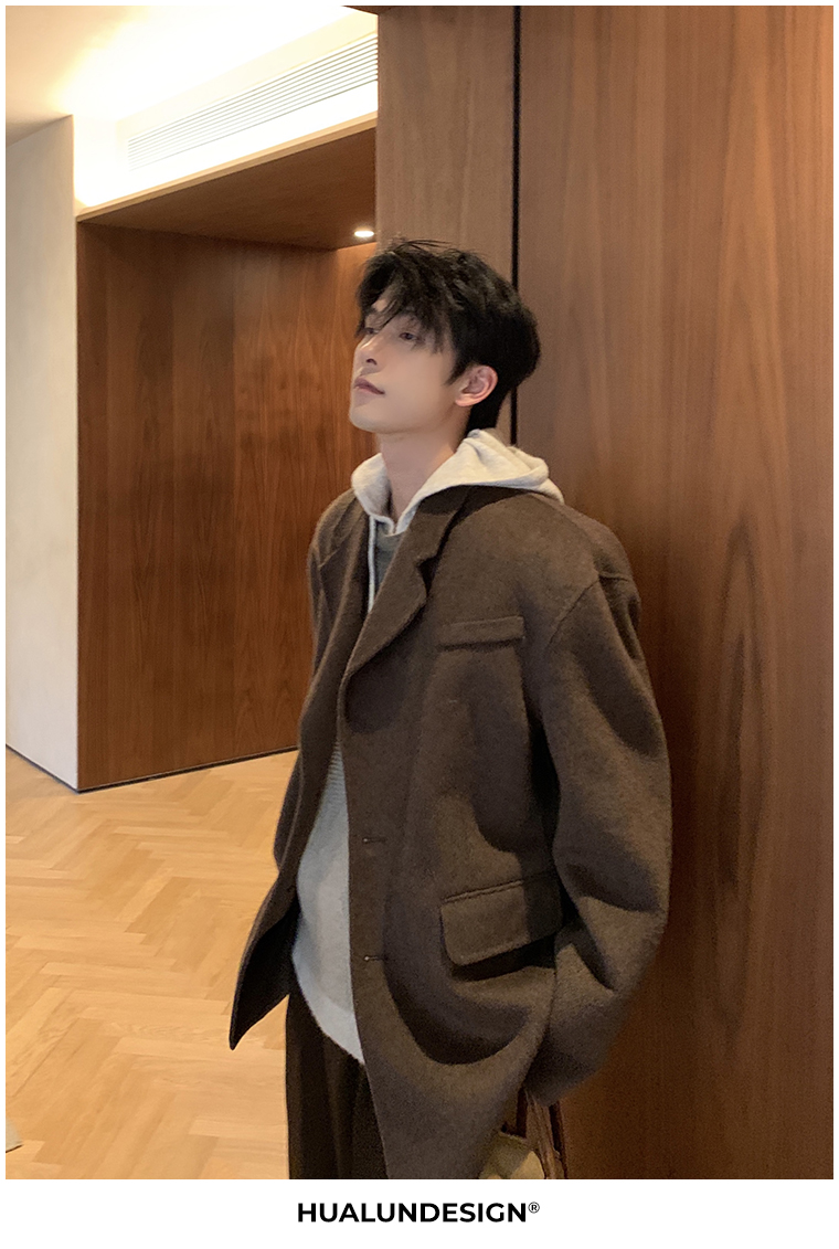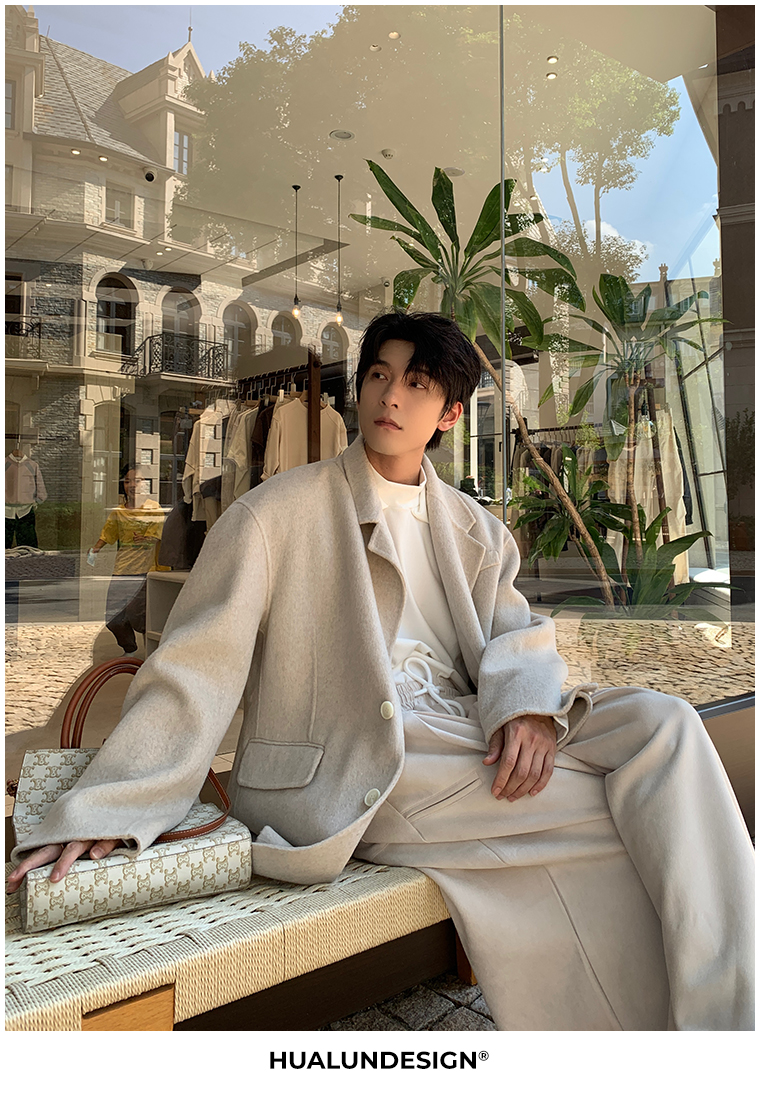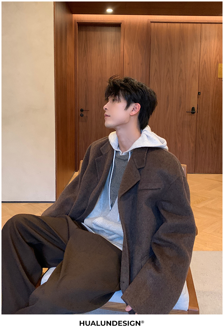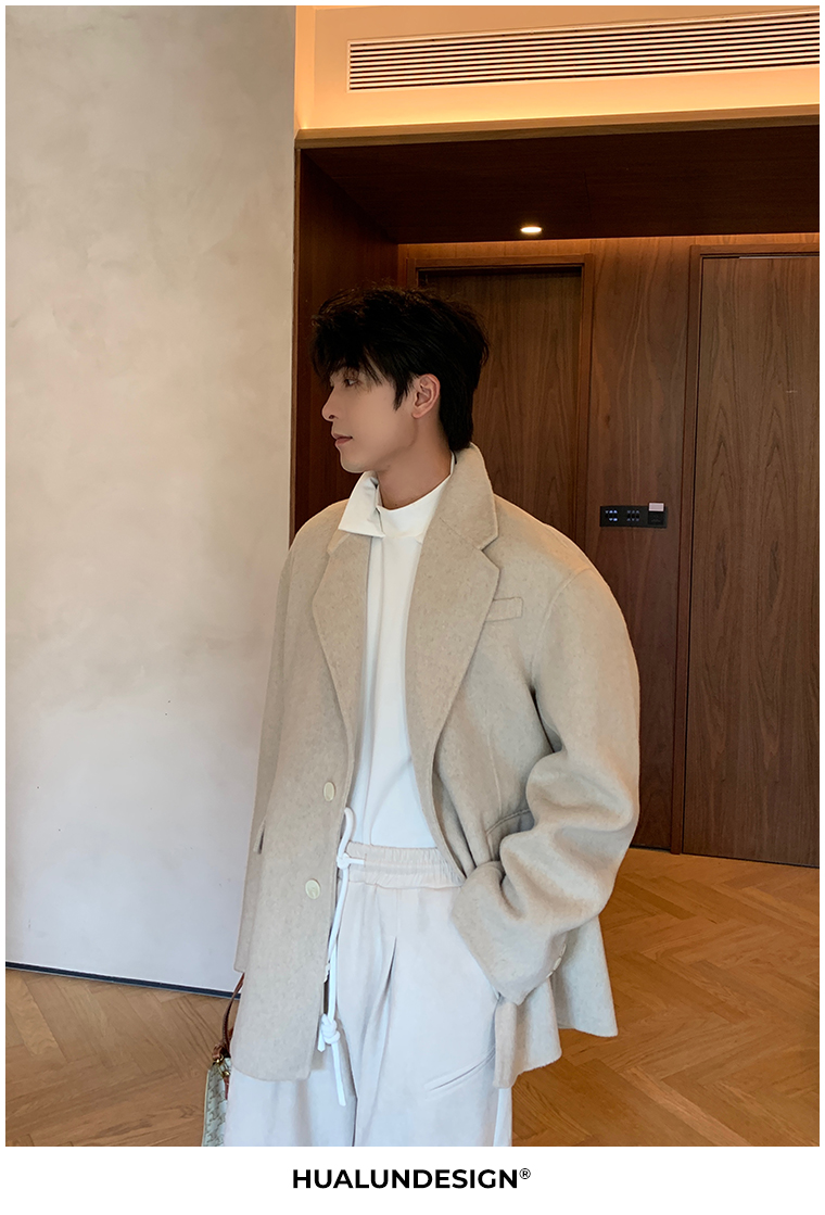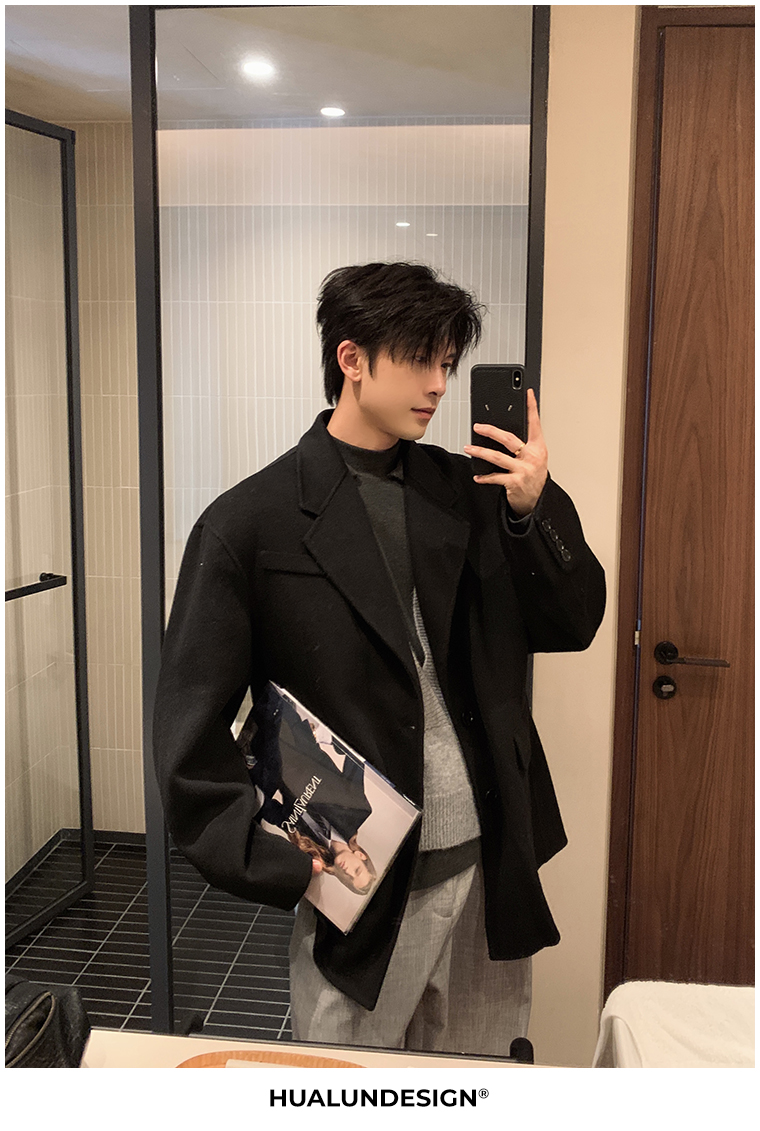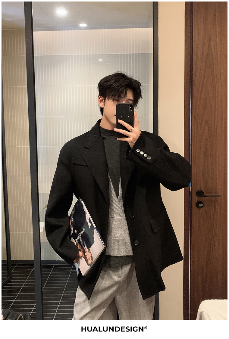Hualun Autumn and Winter Double-Sided Woolen Coat Men's Short Woolen Blazer Korean Style Warm Loose Top