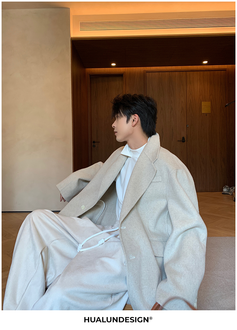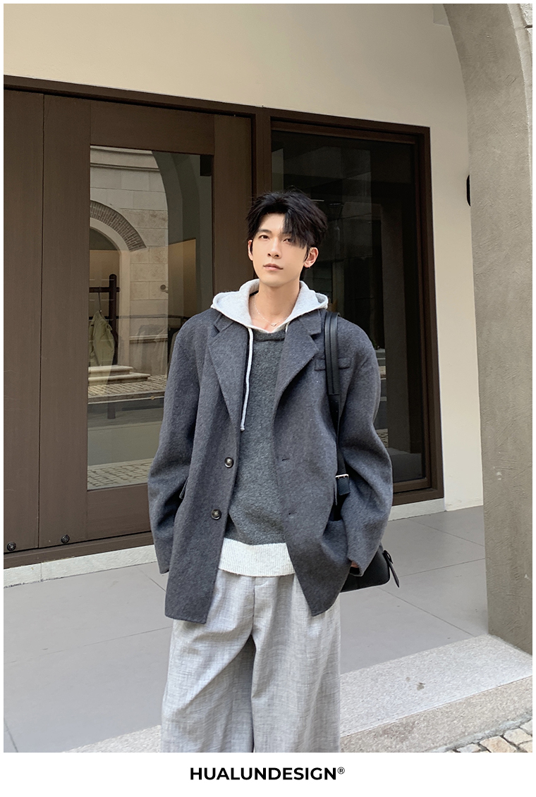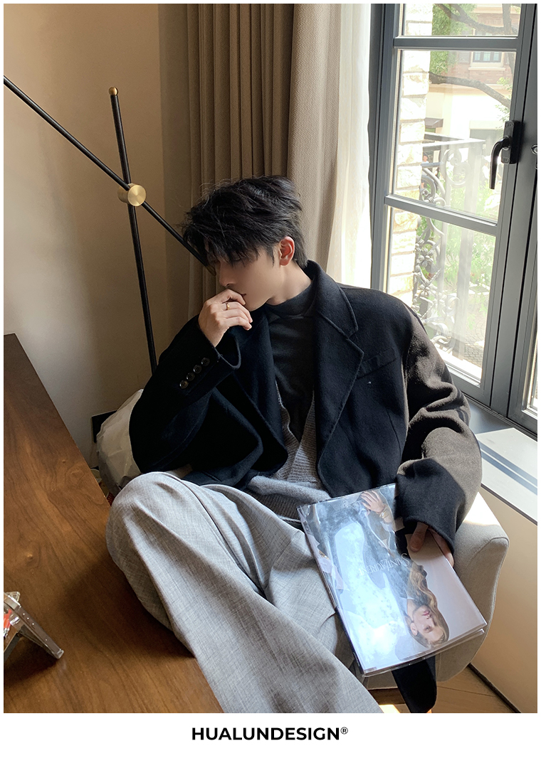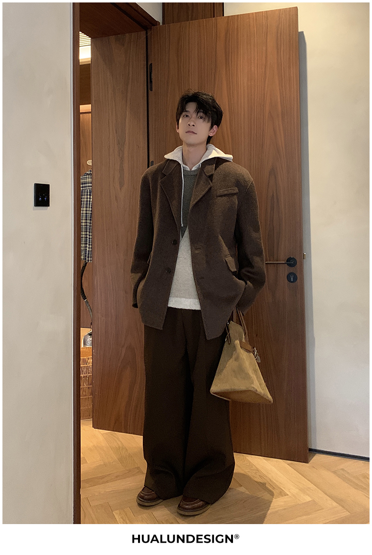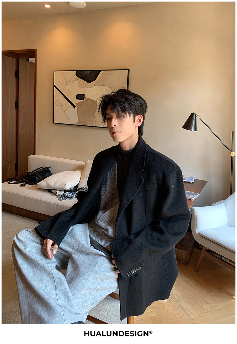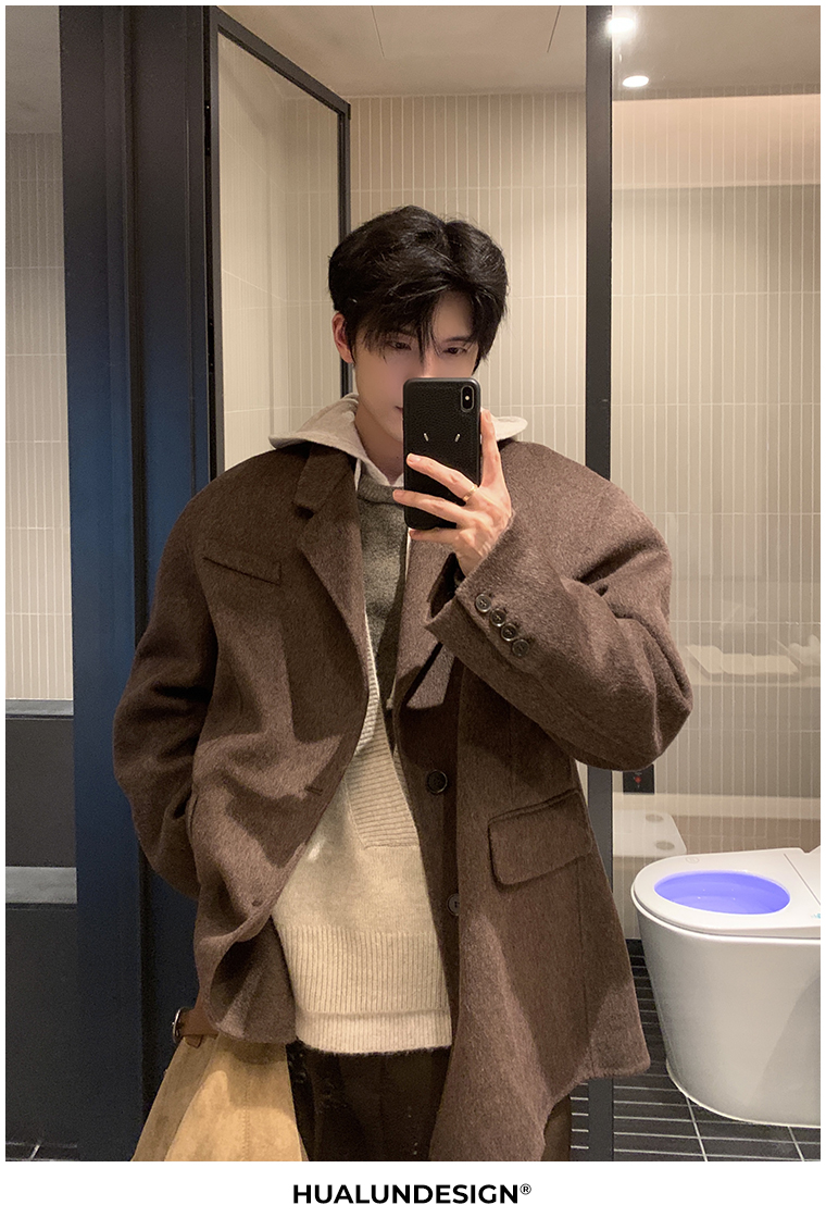Hualun Autumn and Winter Double-Sided Woolen Coat Men's Short Woolen Blazer Korean Style Warm Loose Top