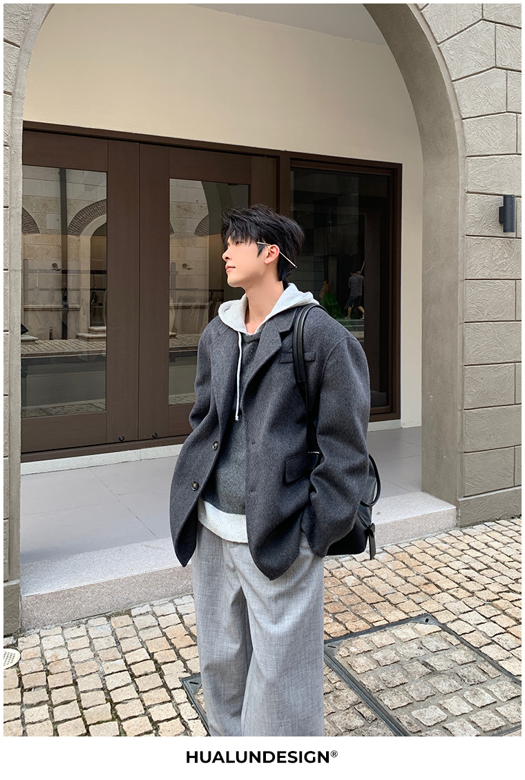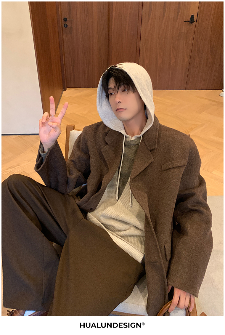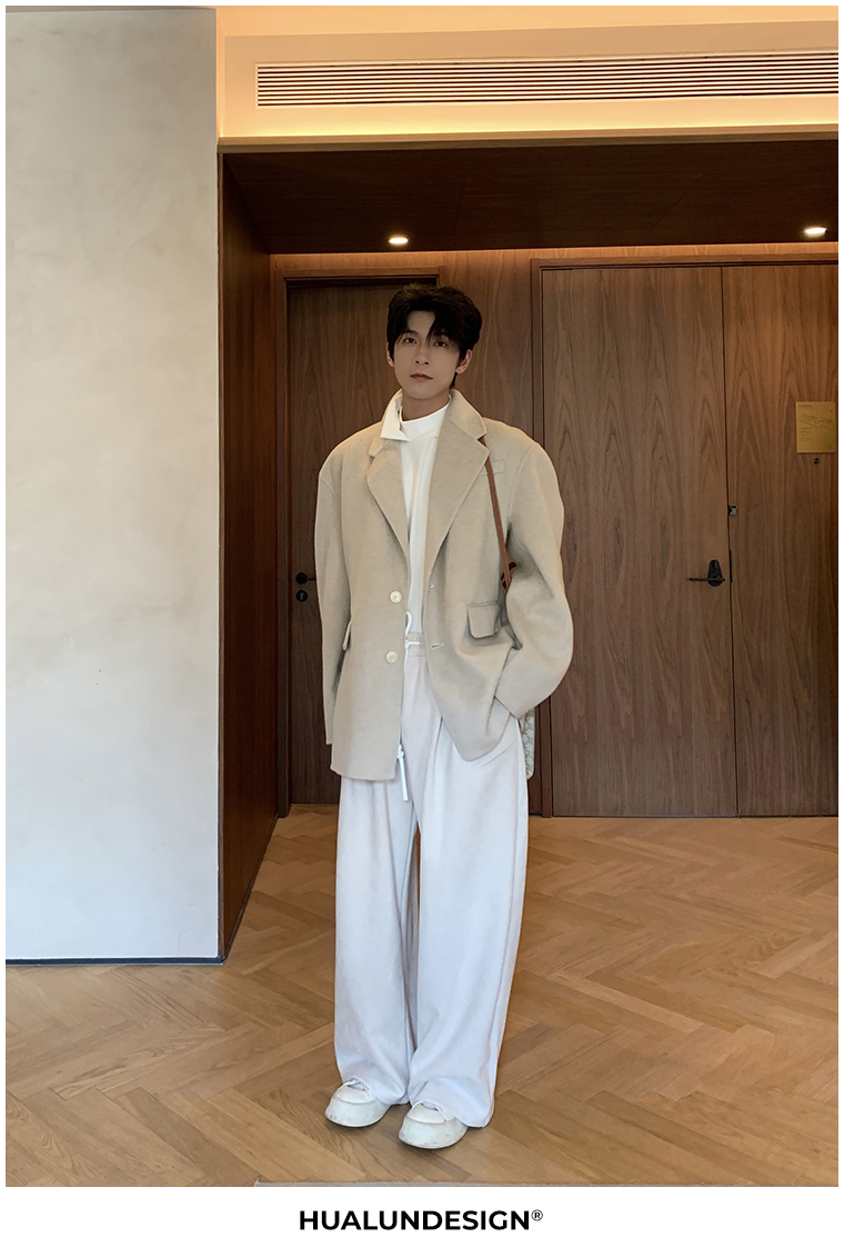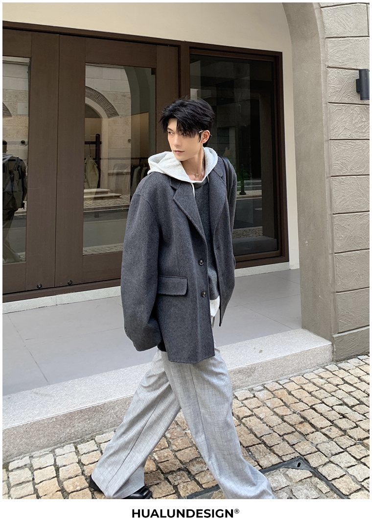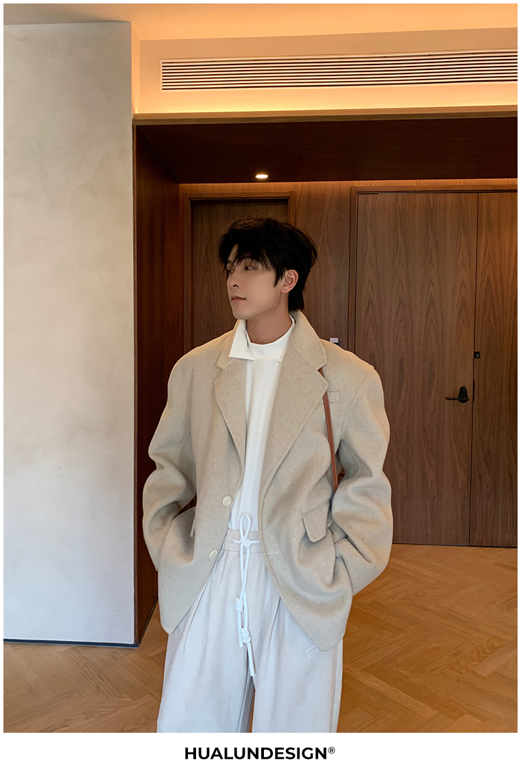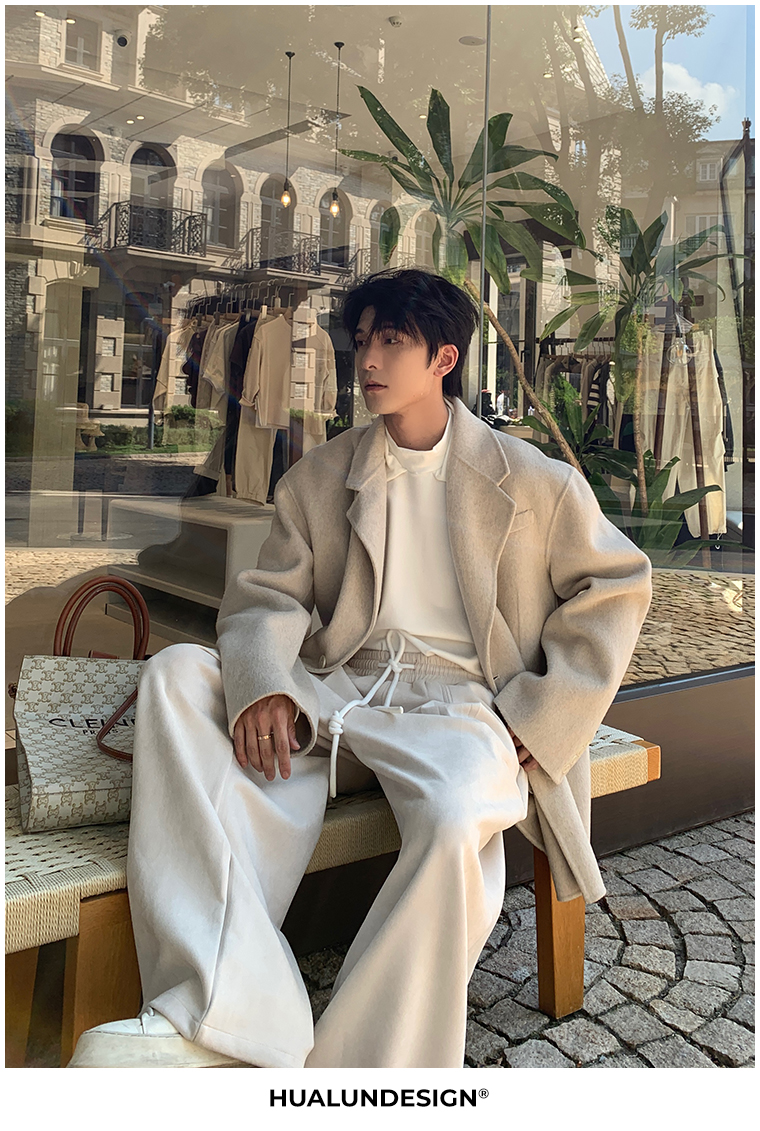 Hualun Autumn and Winter Double-Sided Woolen Coat Men's Short Woolen Blazer Korean Style Warm Loose Top
