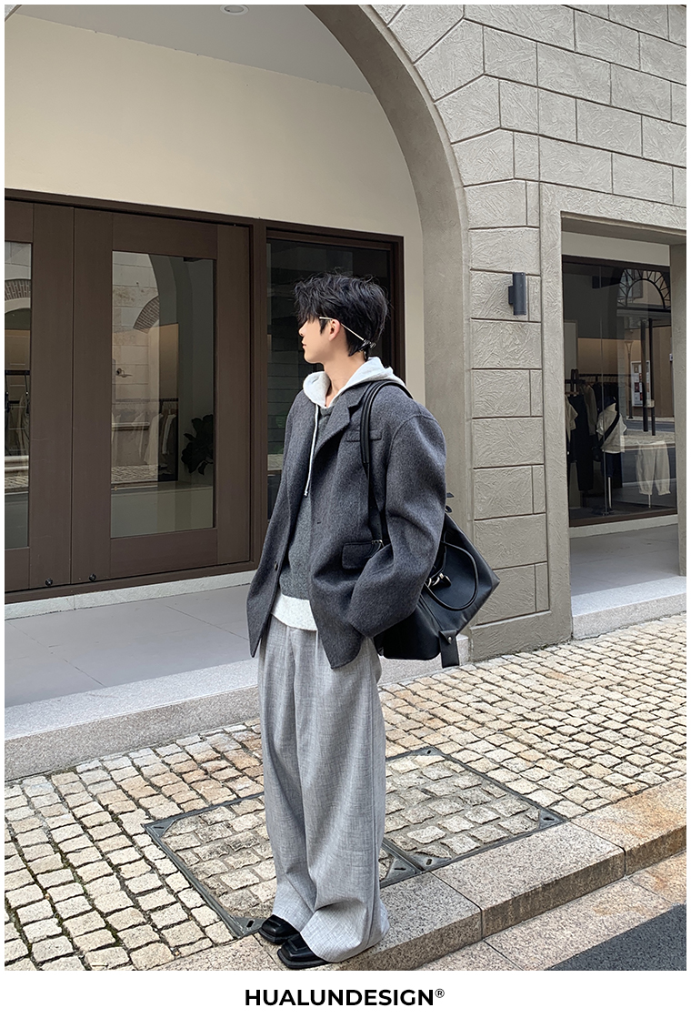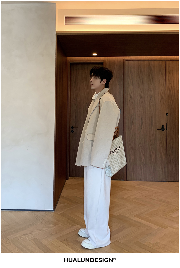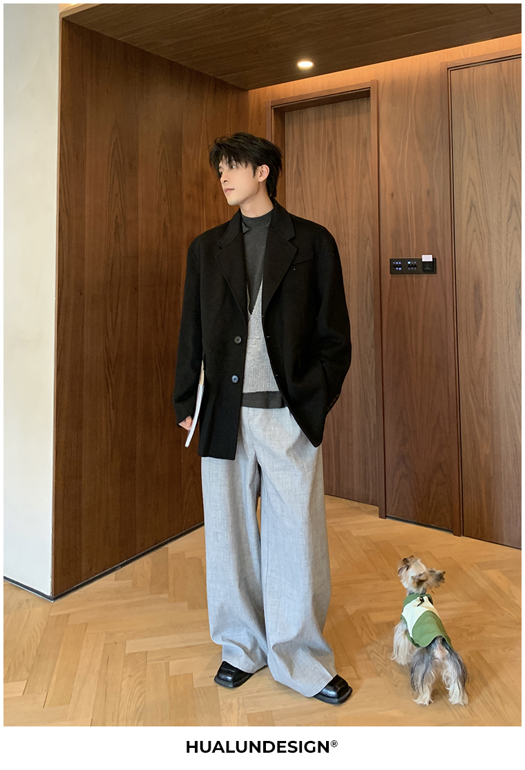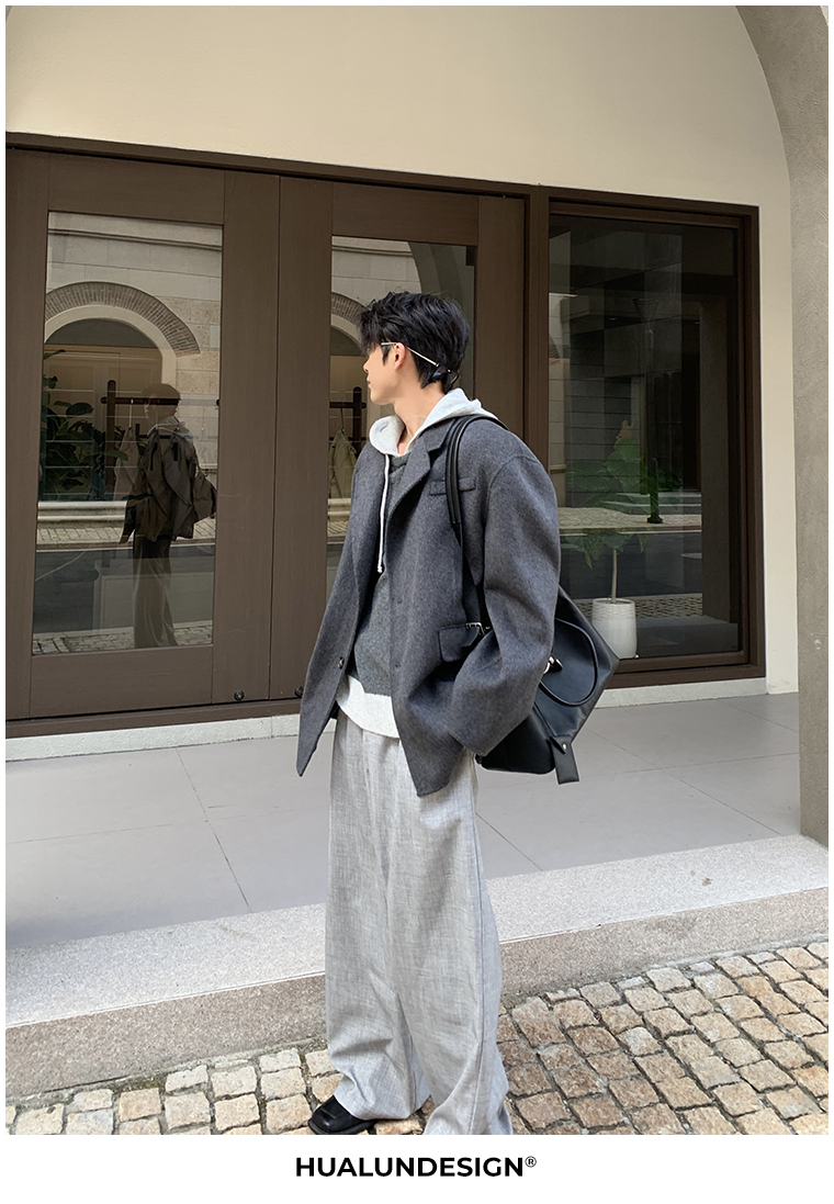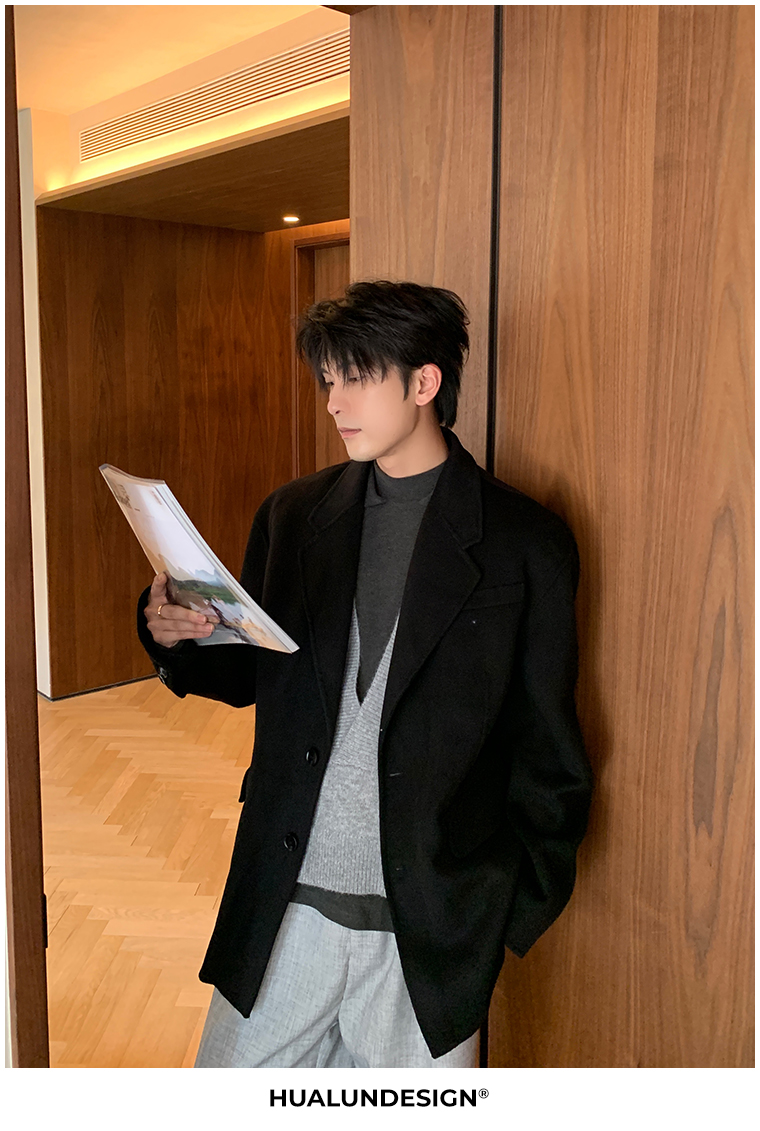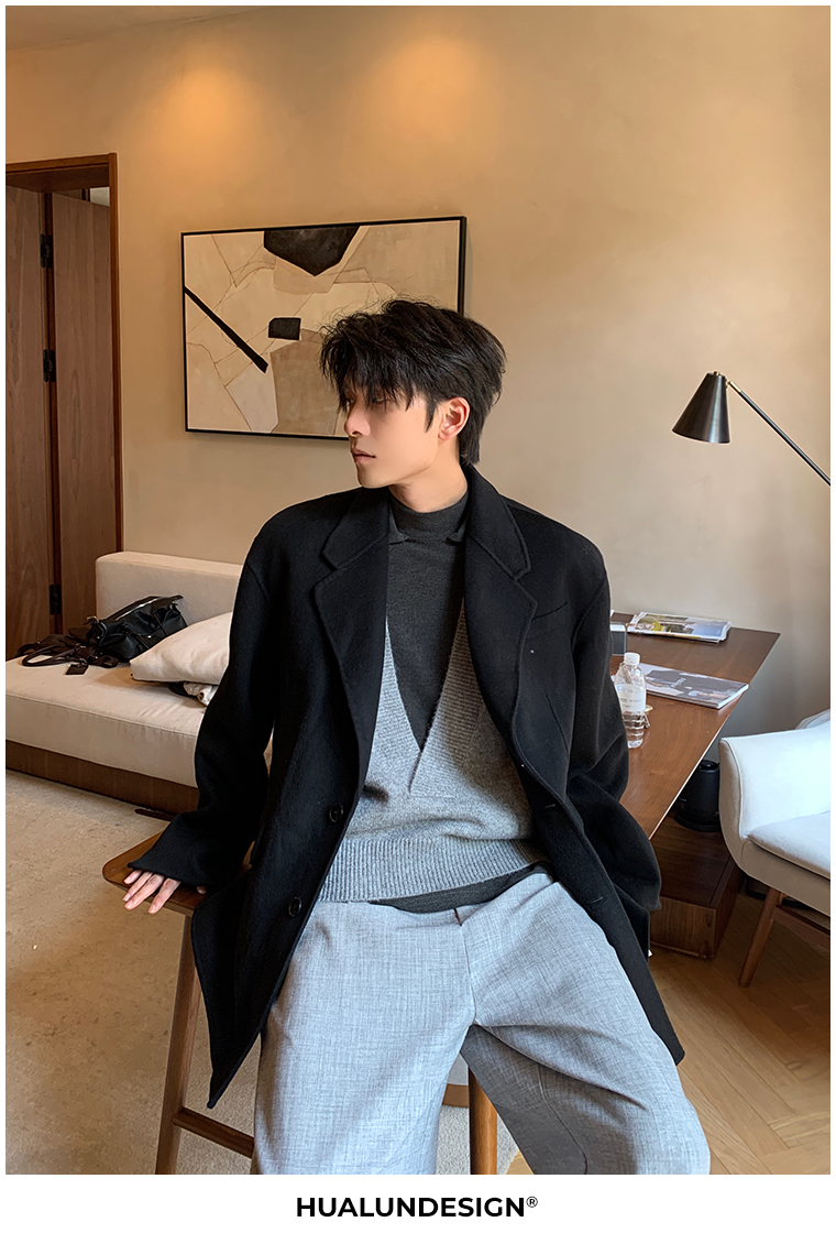 Hualun Autumn and Winter Double-Sided Woolen Coat Men's Short Woolen Blazer Korean Style Warm Loose Top