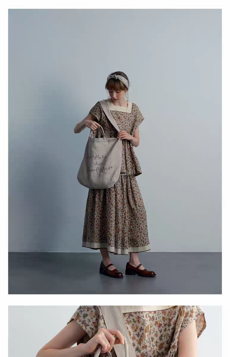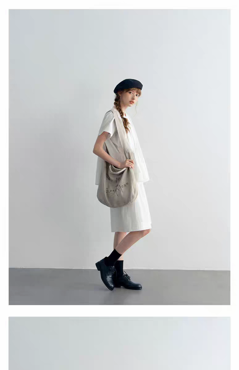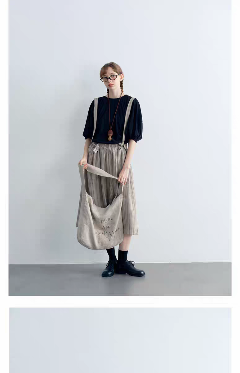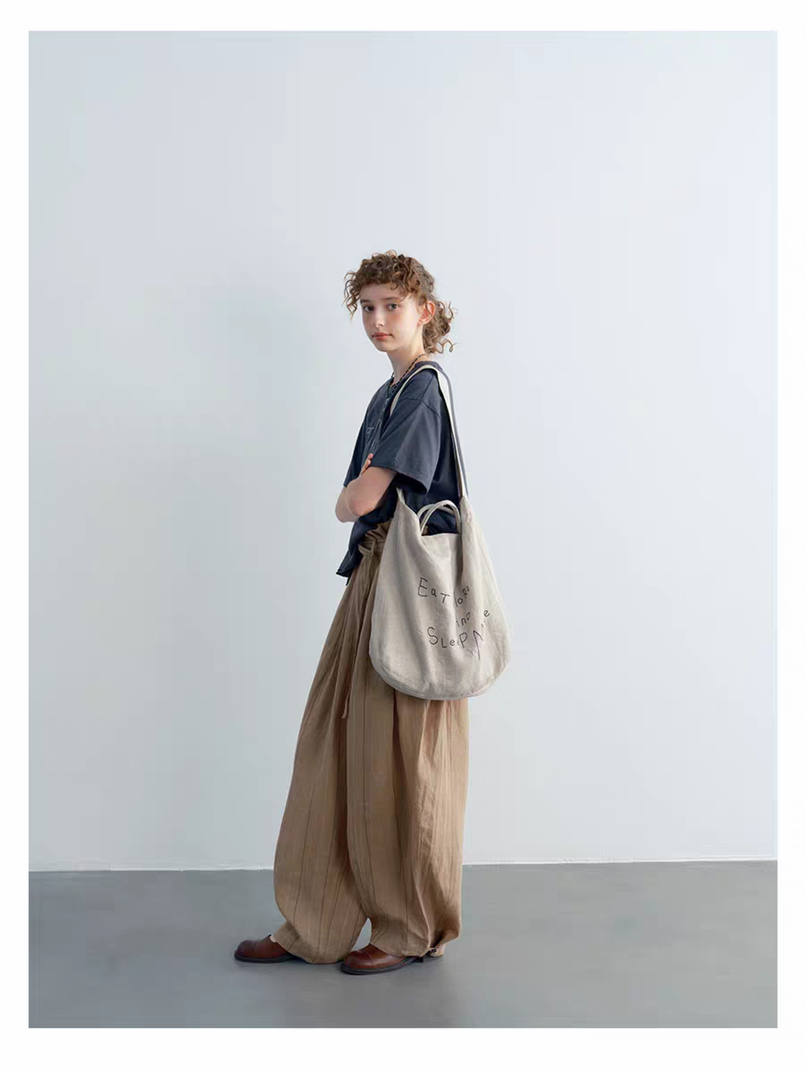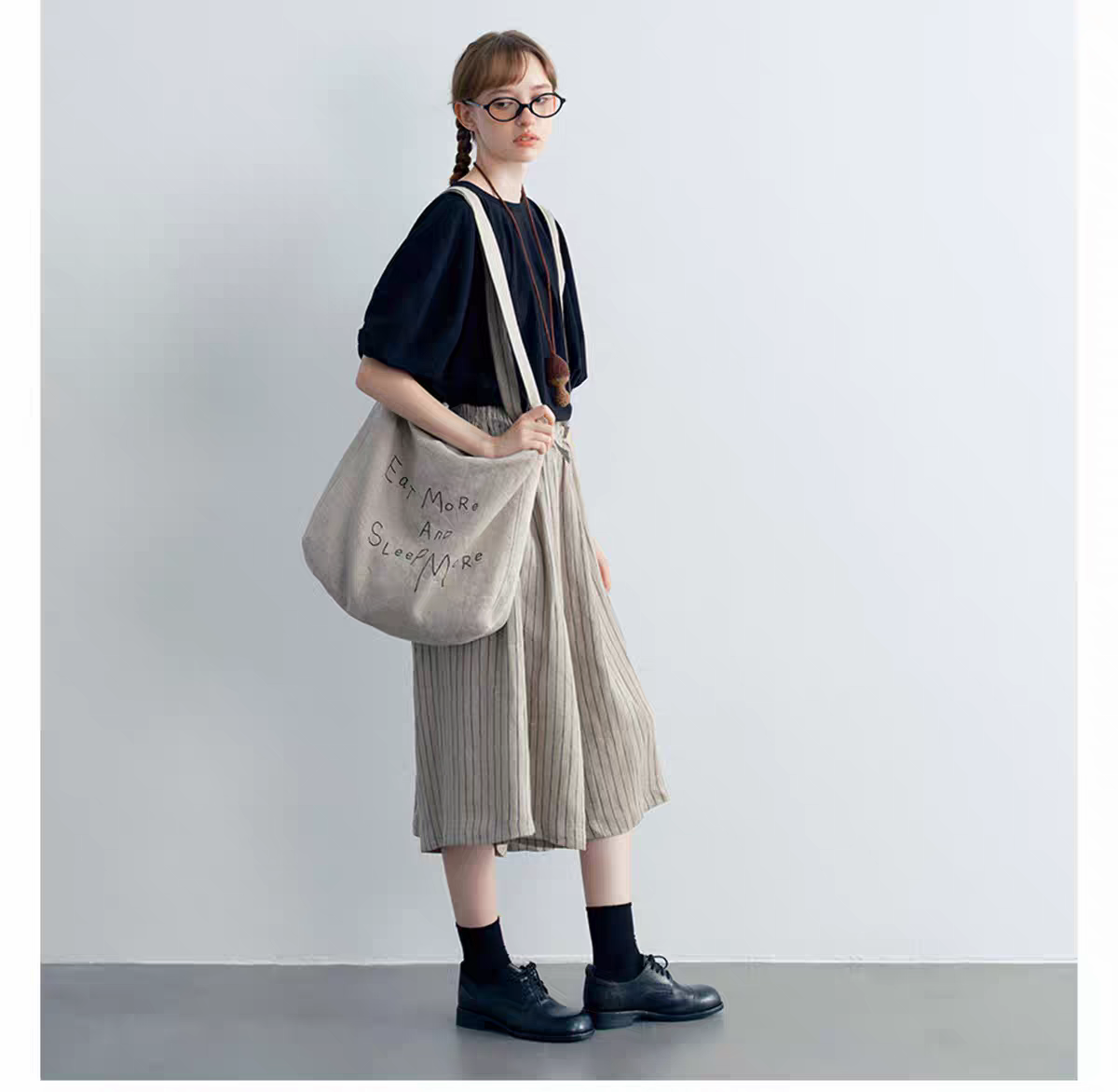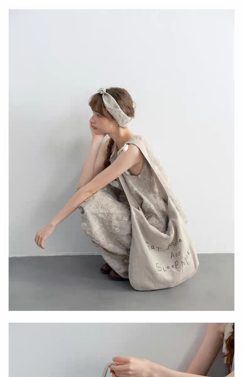 Pigige Bigigr "Eat More, Sleep More" Japanese-Style Heavy Linen Embroidered Dual-Use Cloth Bag Sp0027