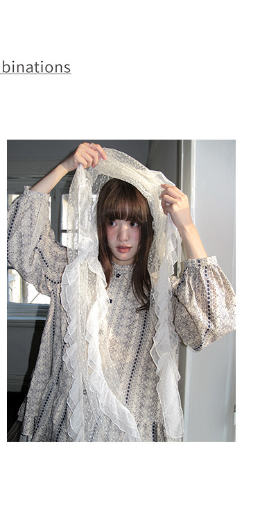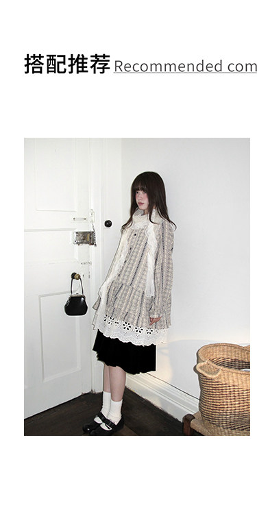 Jingyeyue Long-Sleeved Vintage Loose-Fitting Artistic Ethnic Style Mid-Length Shirt with Built-In Lace Cake Collar