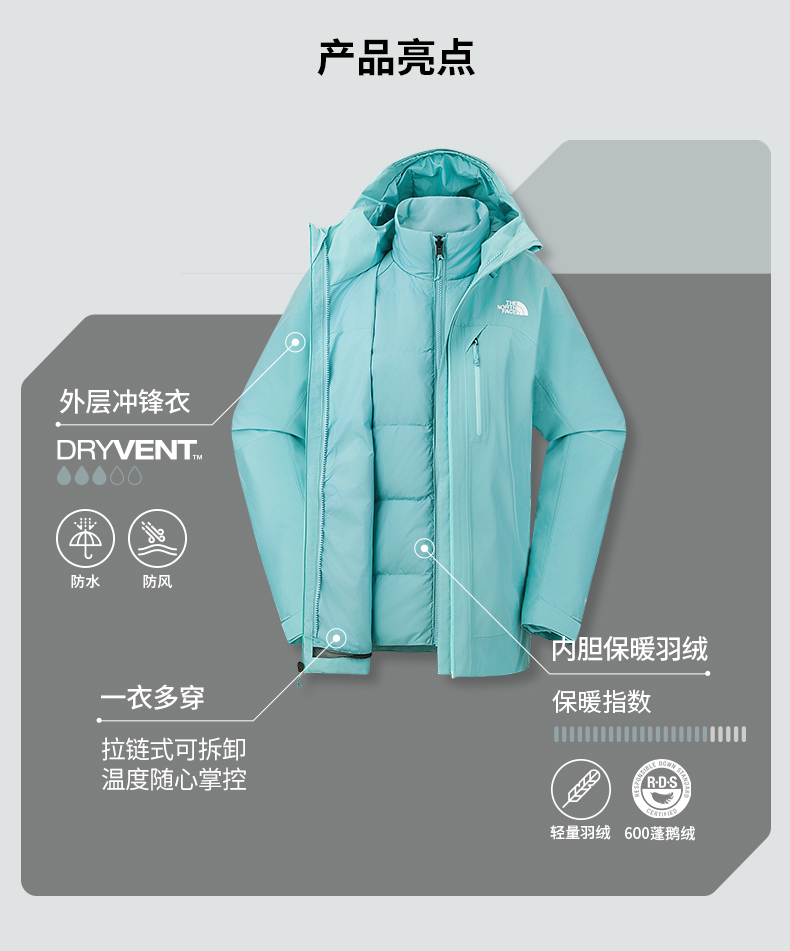 North Face Women's North Table down Three-In-One Jacket Goose down Waterproof Thenorthface | 8Ed1