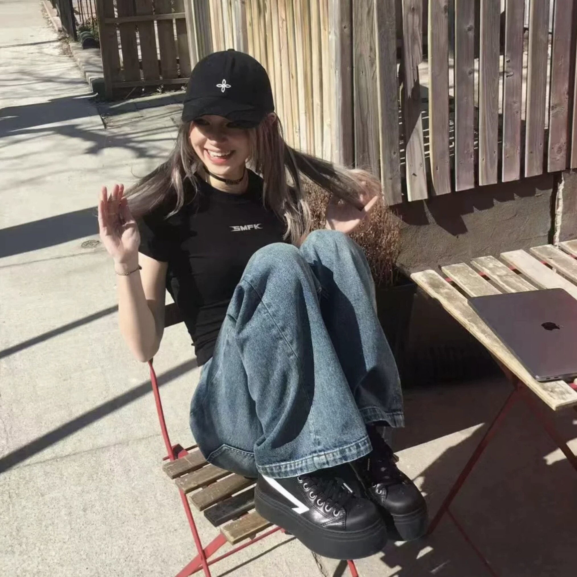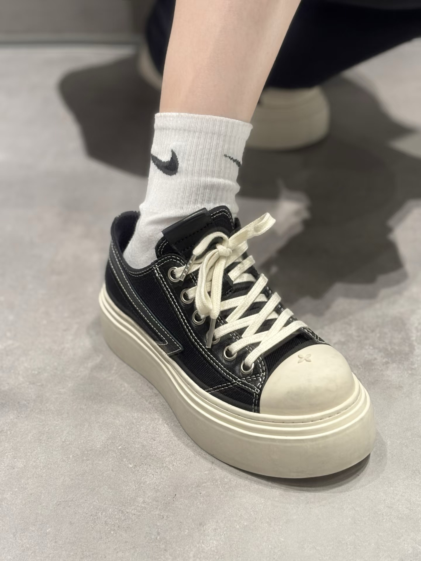 25Sxsmfk New Women's Thick-Soled Retro Height-Increasing Distressed Shoes with Cross Pattern and Star Pattern, Casual Versatile Canvas Shoes