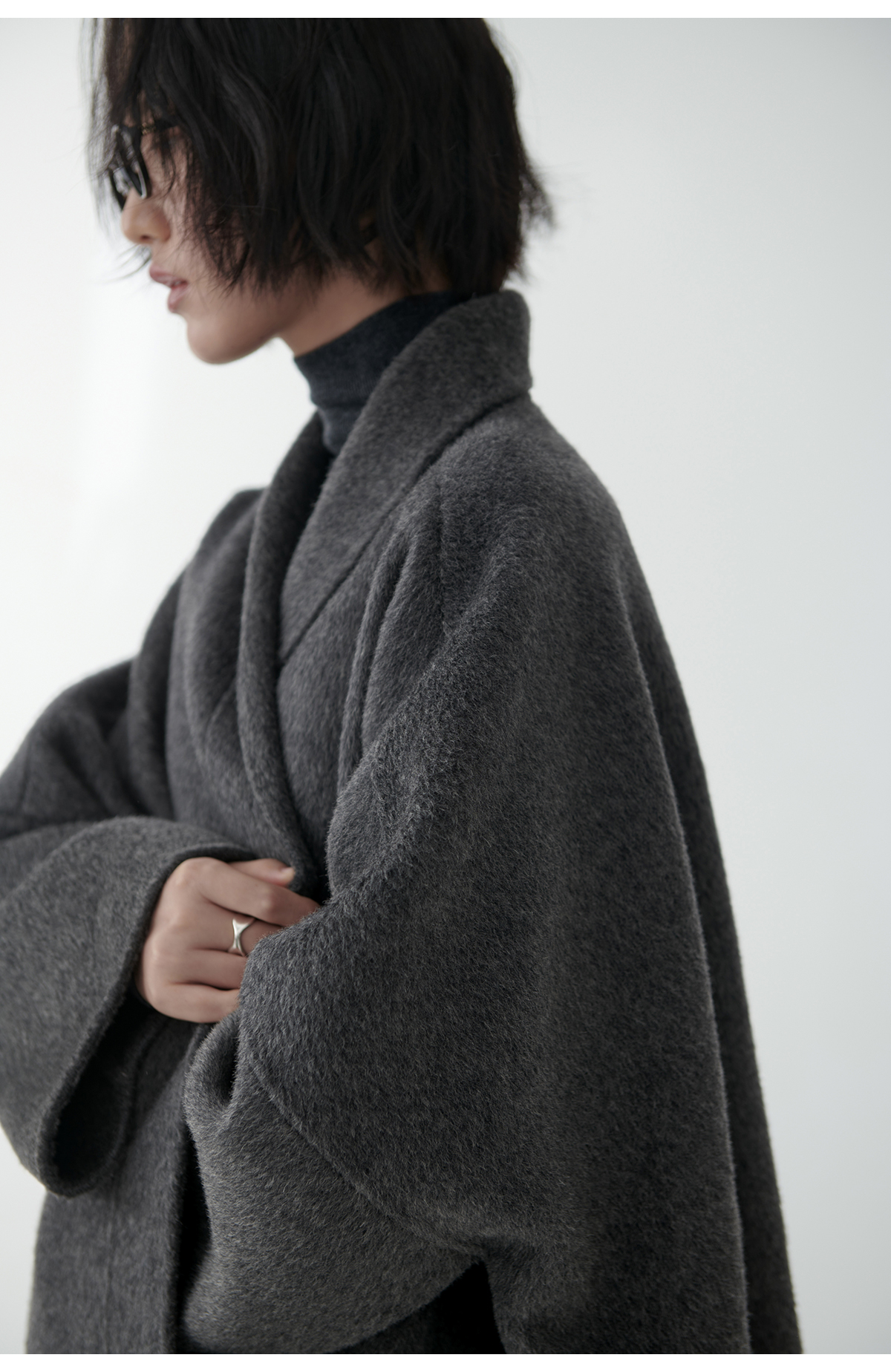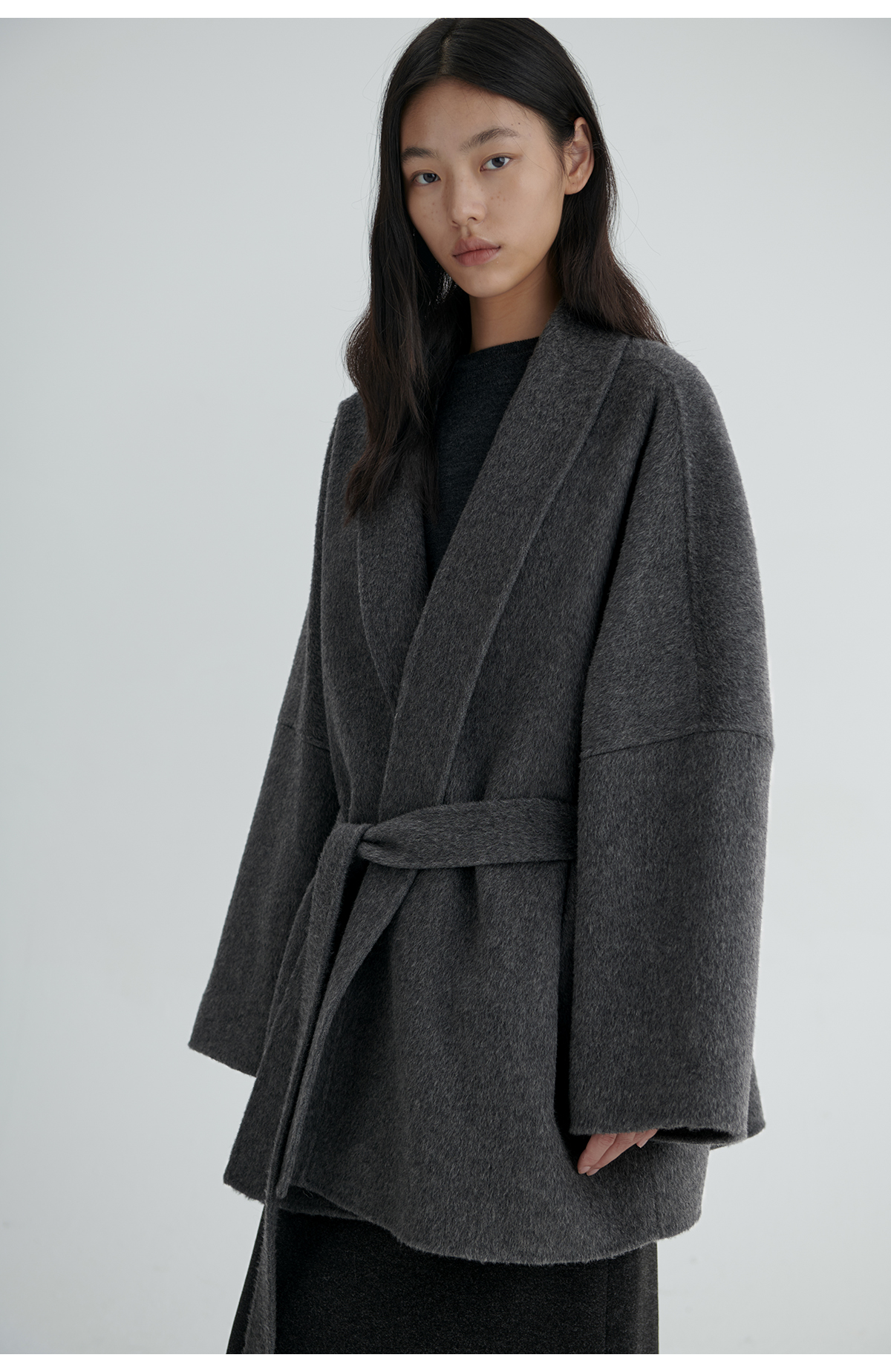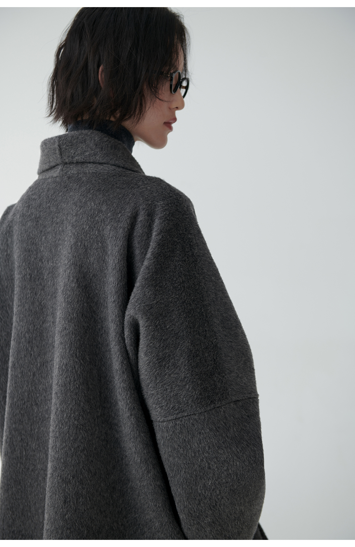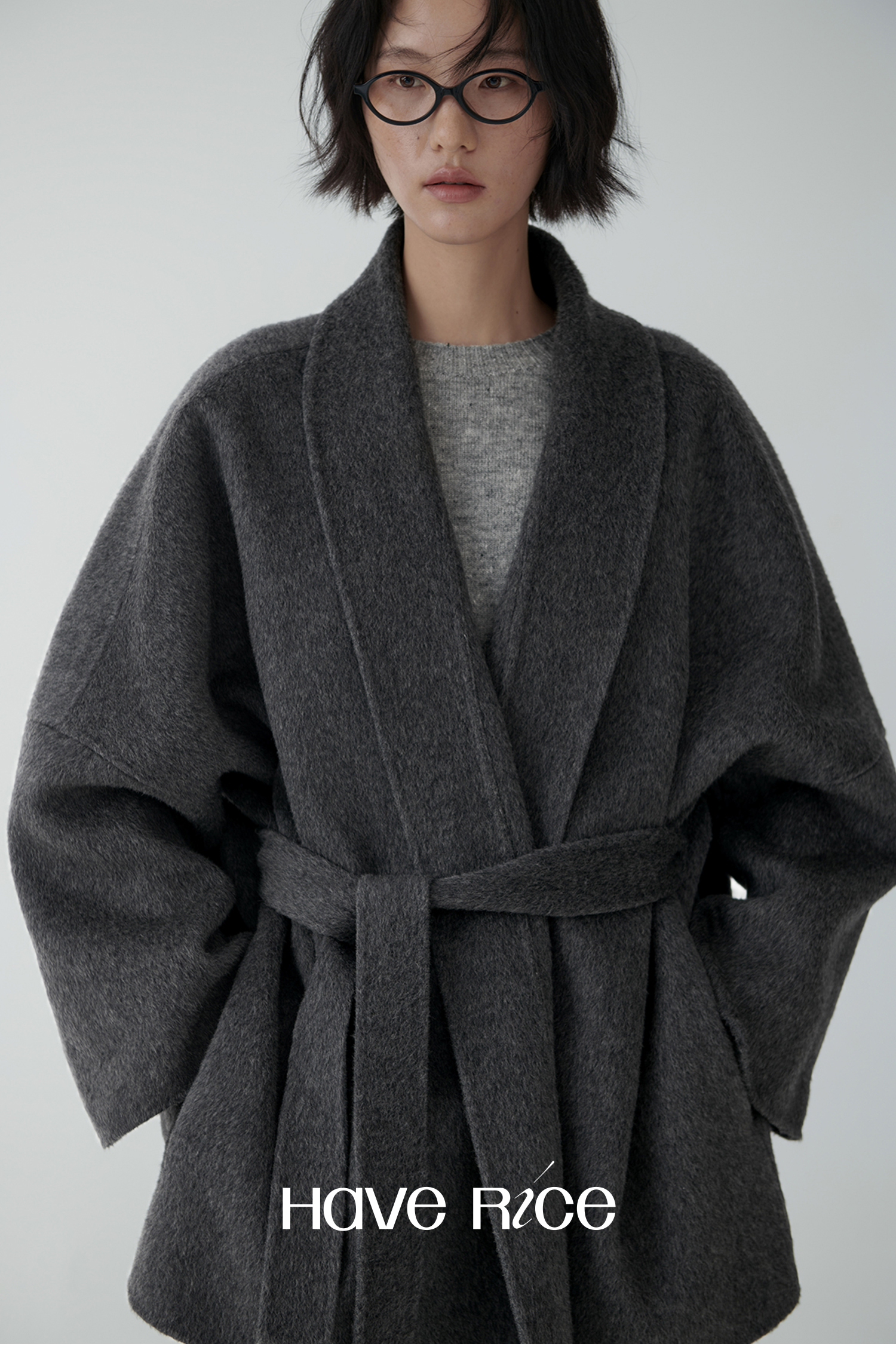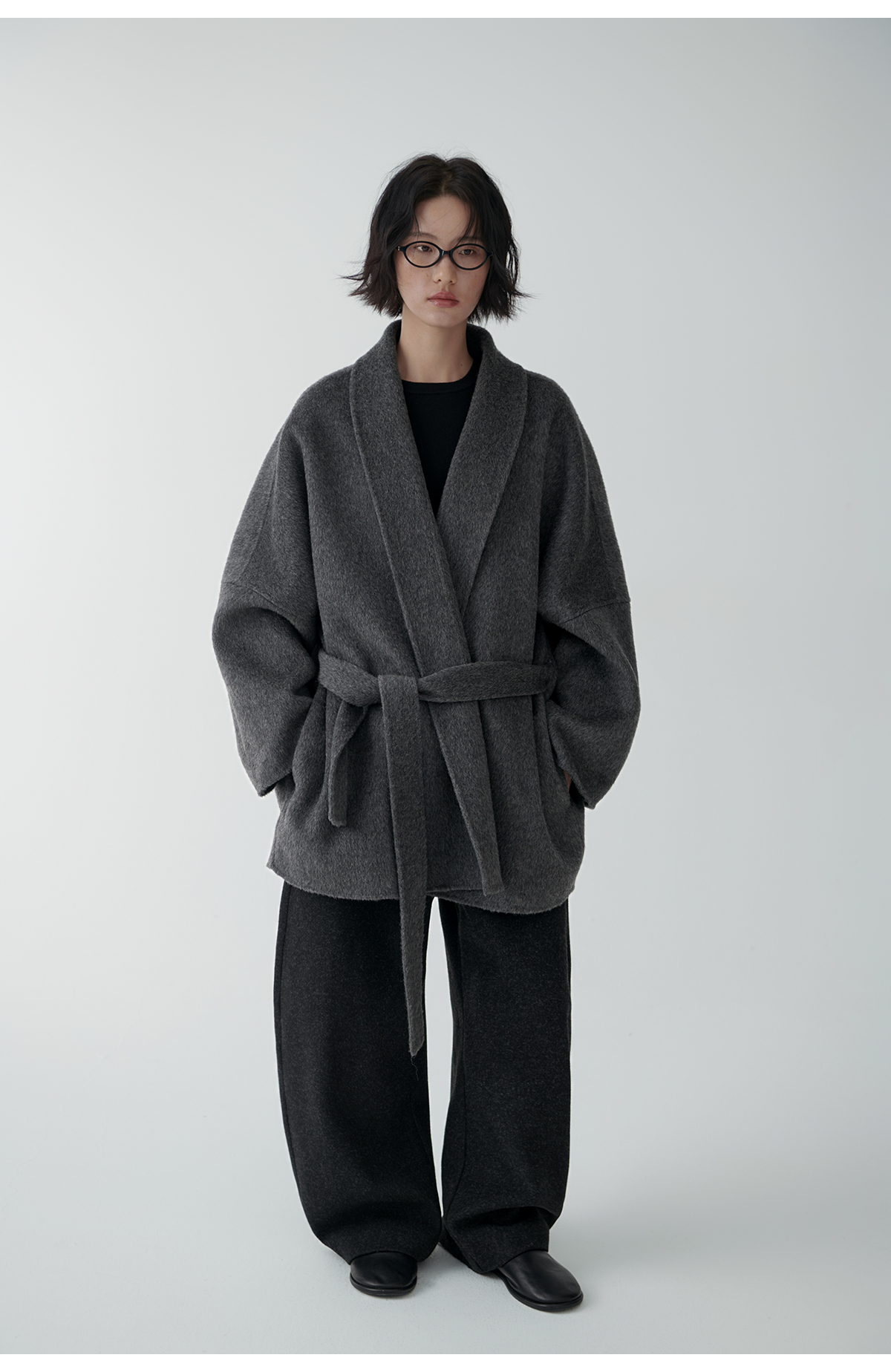 Haverice Restaurant London Night Rain Camel Wool Sheep Wool Mid-Length Loose Fit Robe Woolen Coat