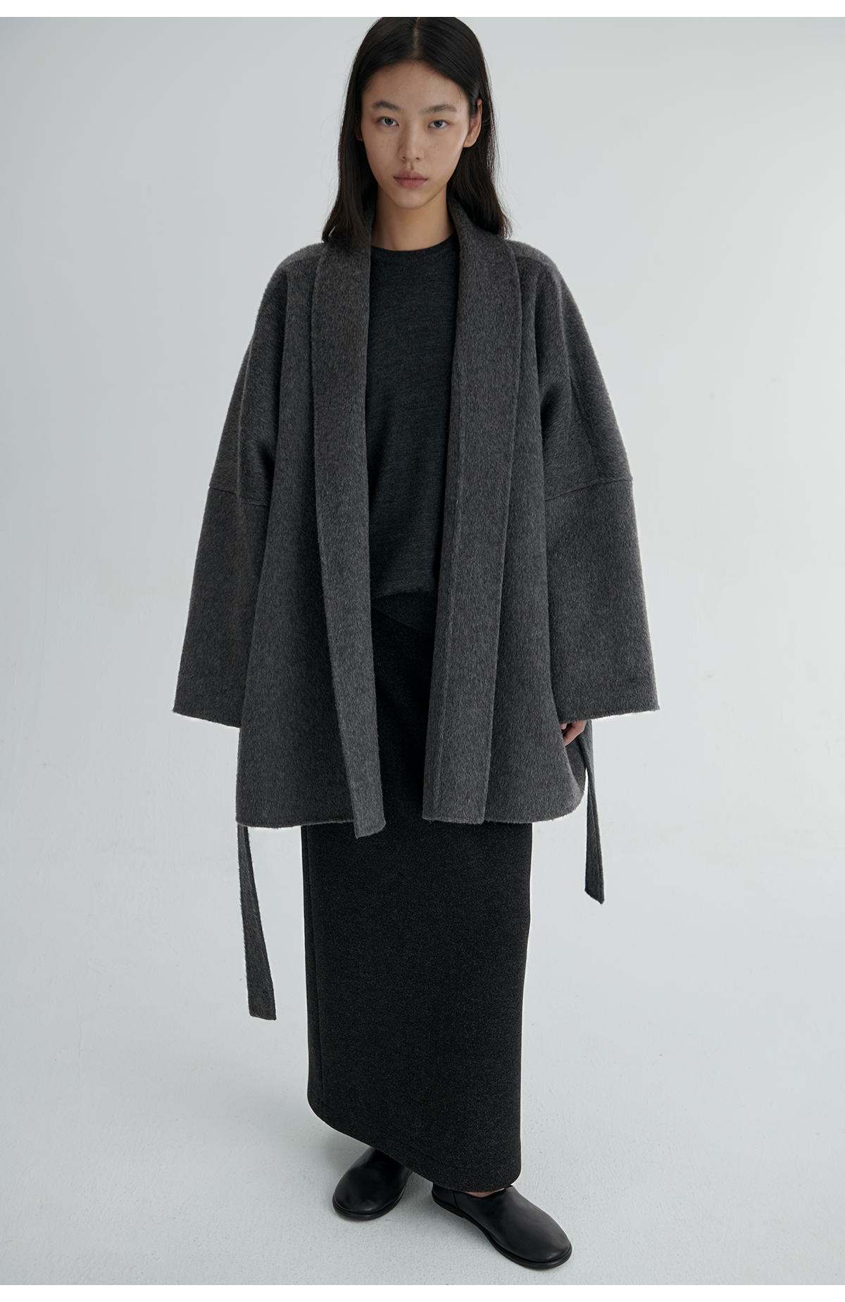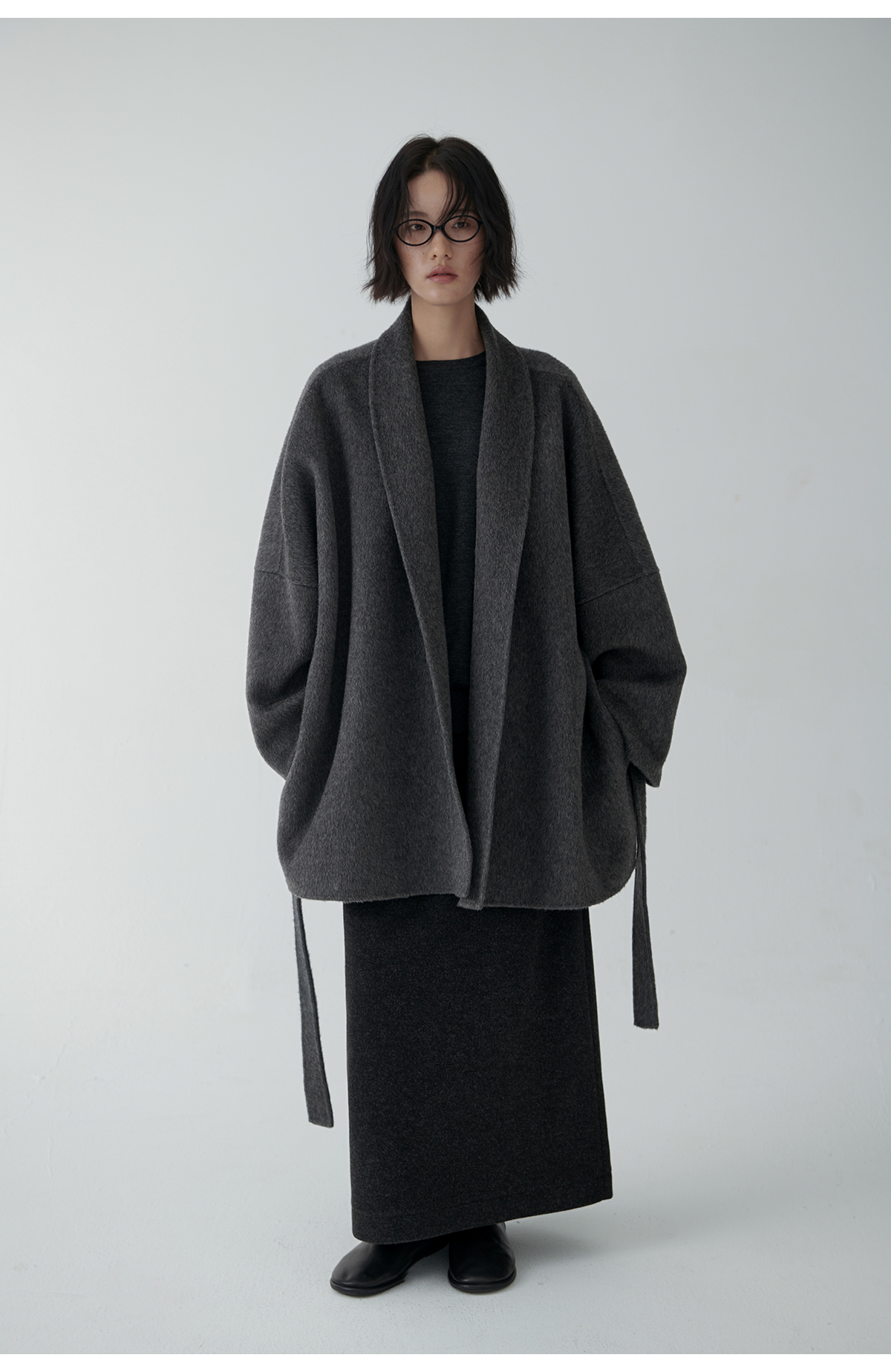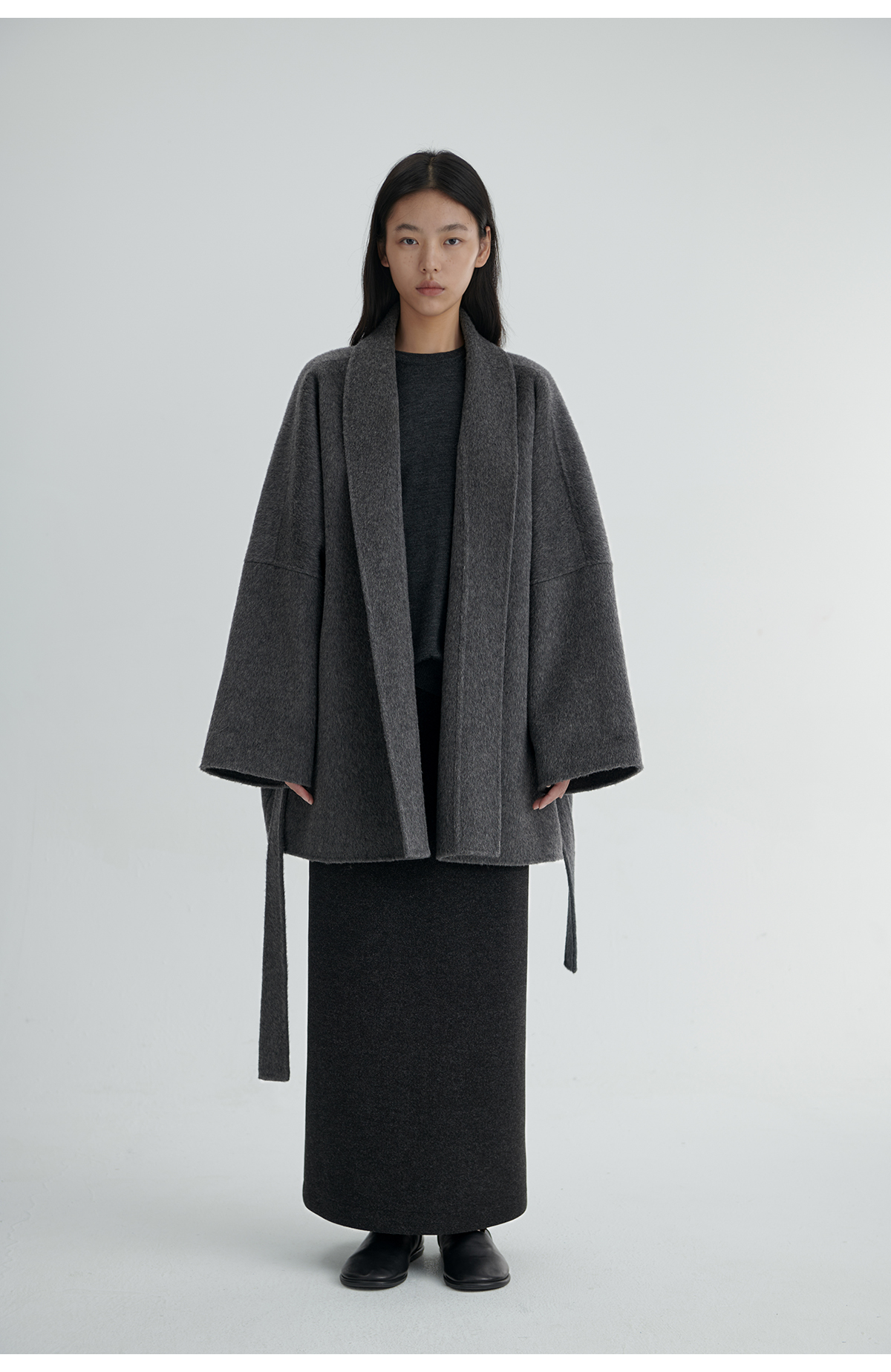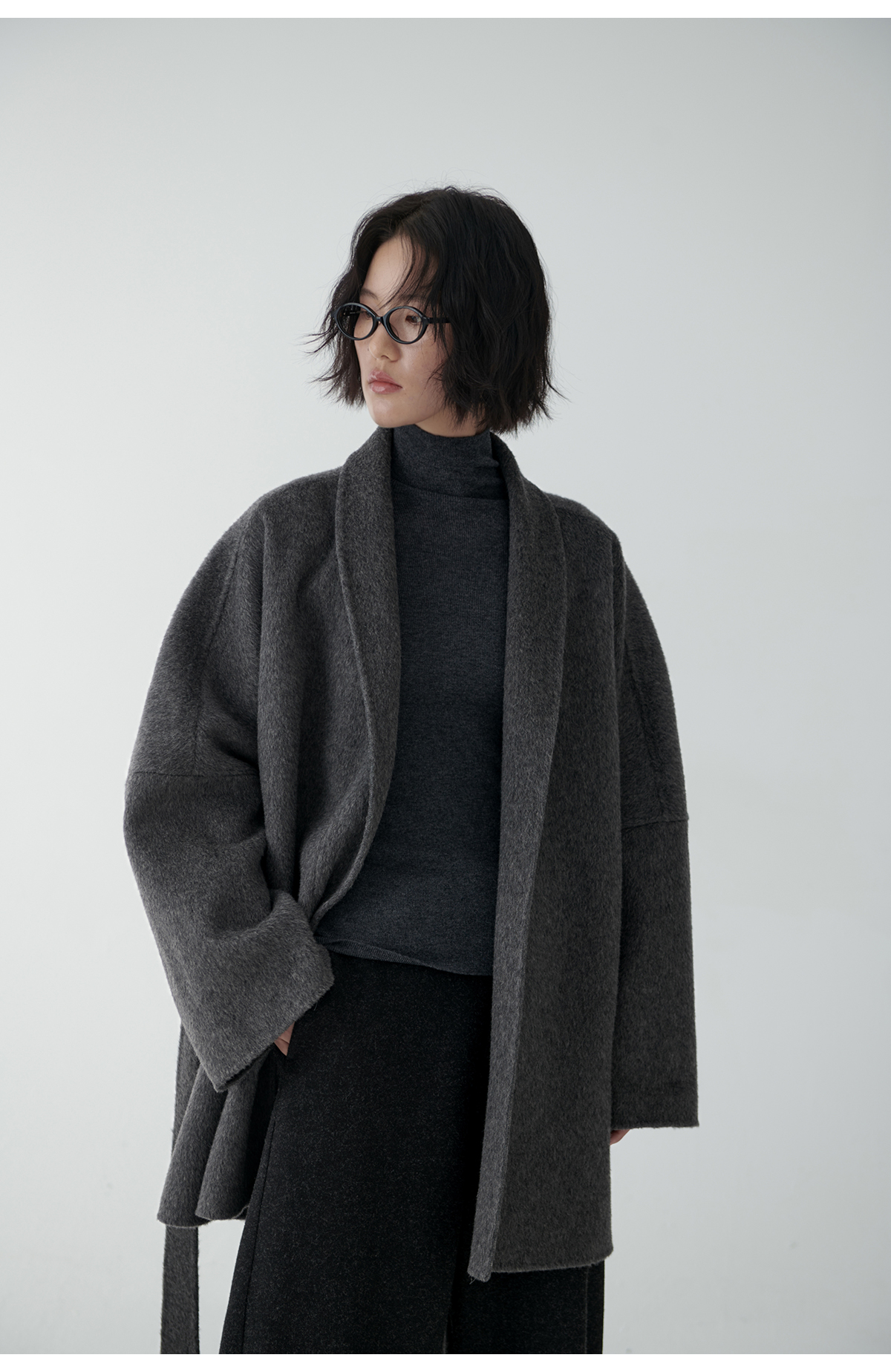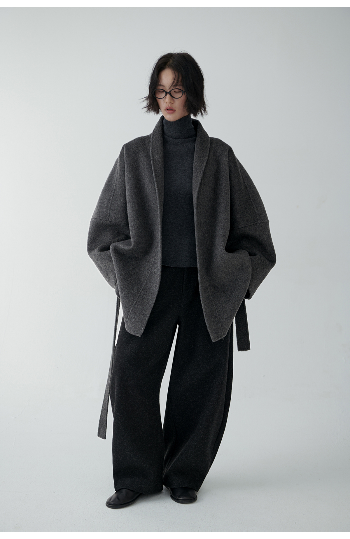 Haverice Restaurant London Night Rain Camel Wool Sheep Wool Mid-Length Loose Fit Robe Woolen Coat