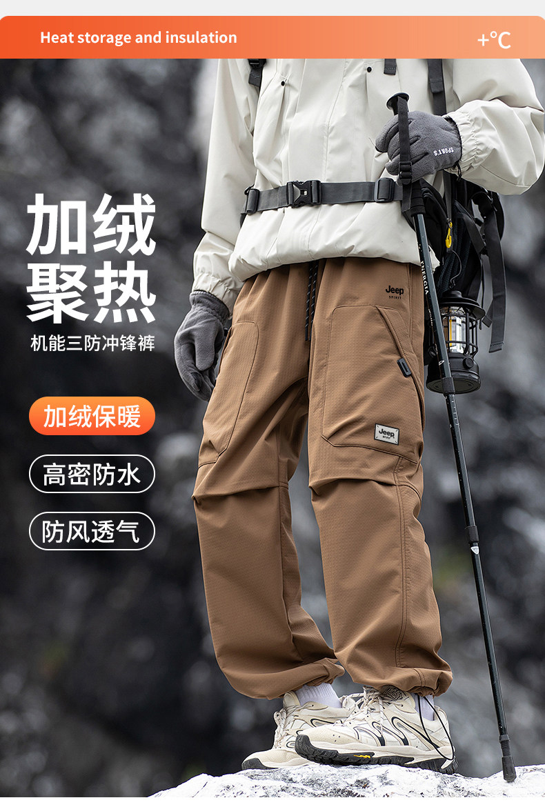 Jeep Tactical Pants for Men, New Spring and Winter Work Pants, Thickened Sports Pants, Outdoor Pants, Waterproof for Teenagers
