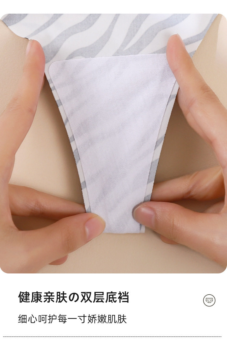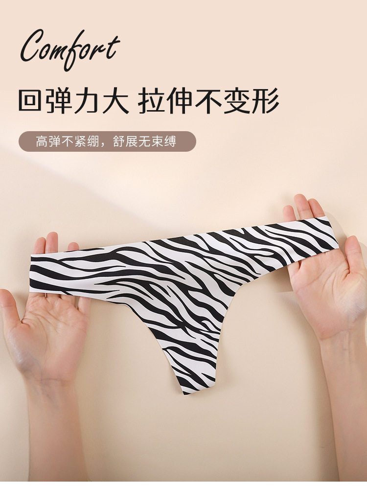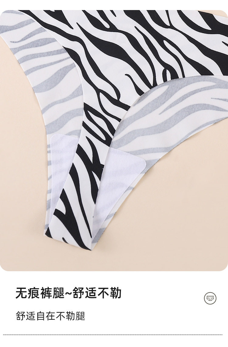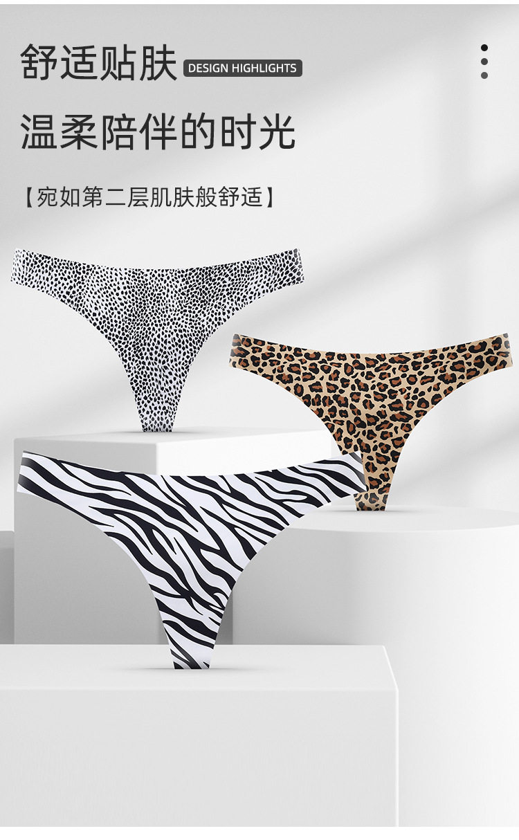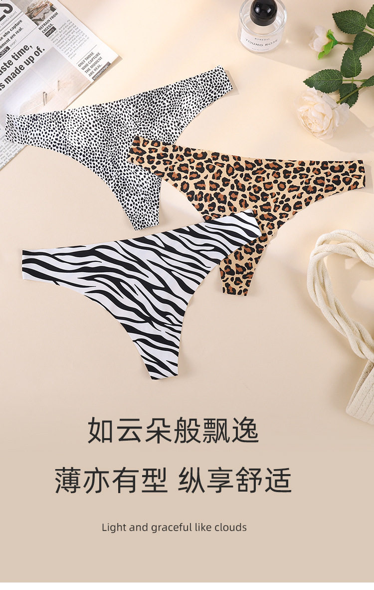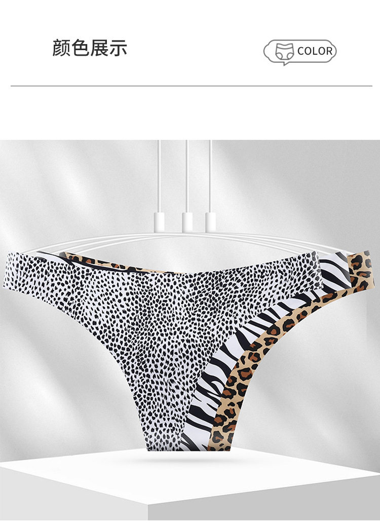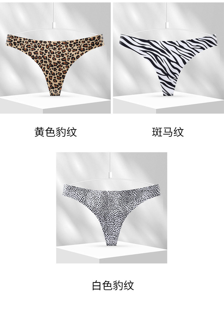 European and American Cross-Border Sexy Seamless Ice Silk Women's Thong Low-Waist Breathable Leopard Print Girls' Underwear Pure Cotton Crotch