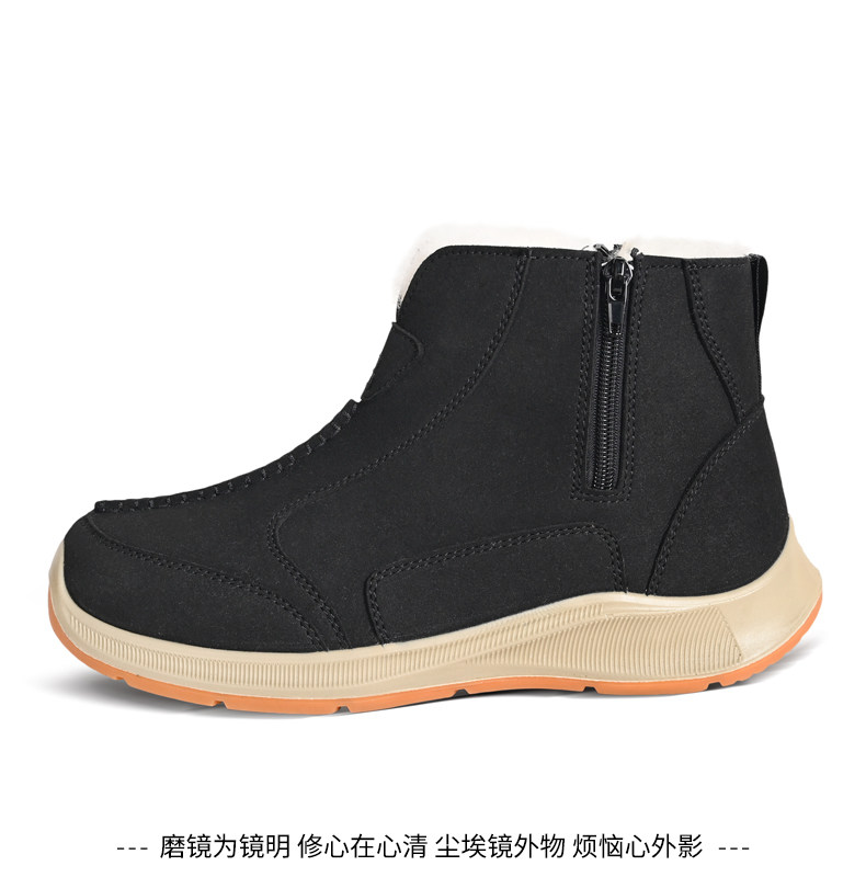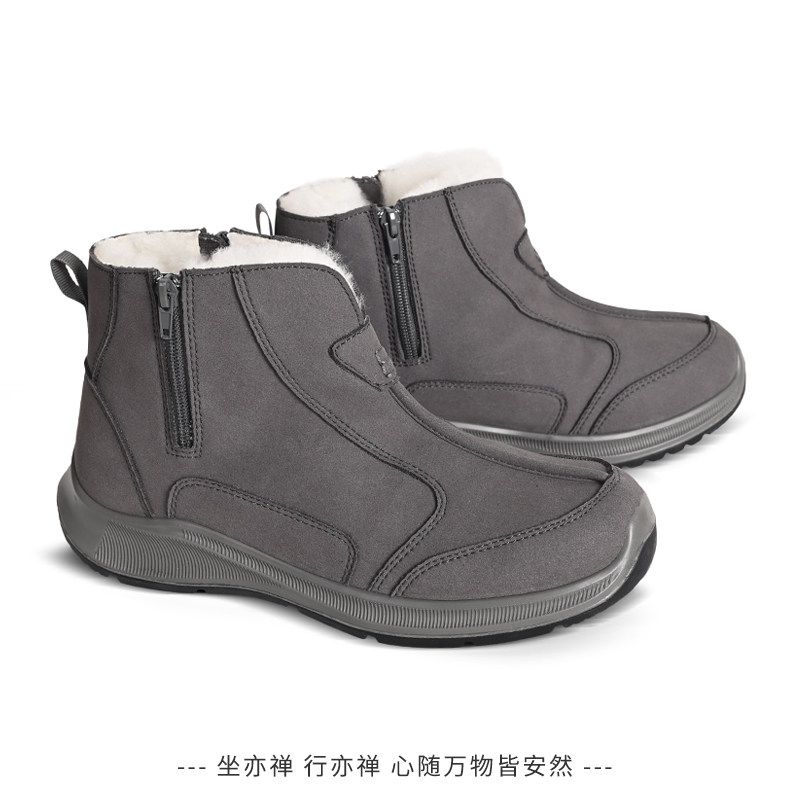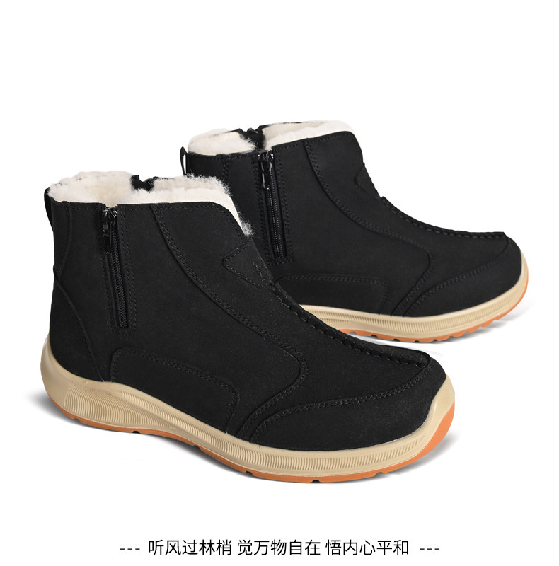 Zhenrujie Jangkong 18 Wool Monk Shoes Winter Thickened Cotton Shoes Zipper High-Top Casual Thick-Soled Unisex