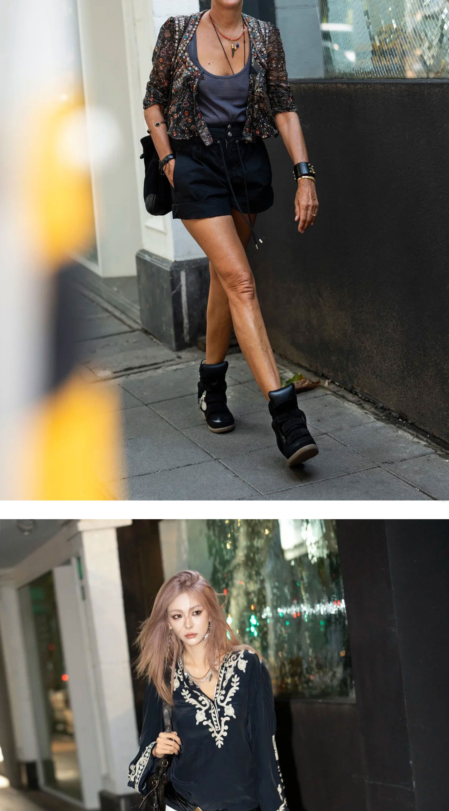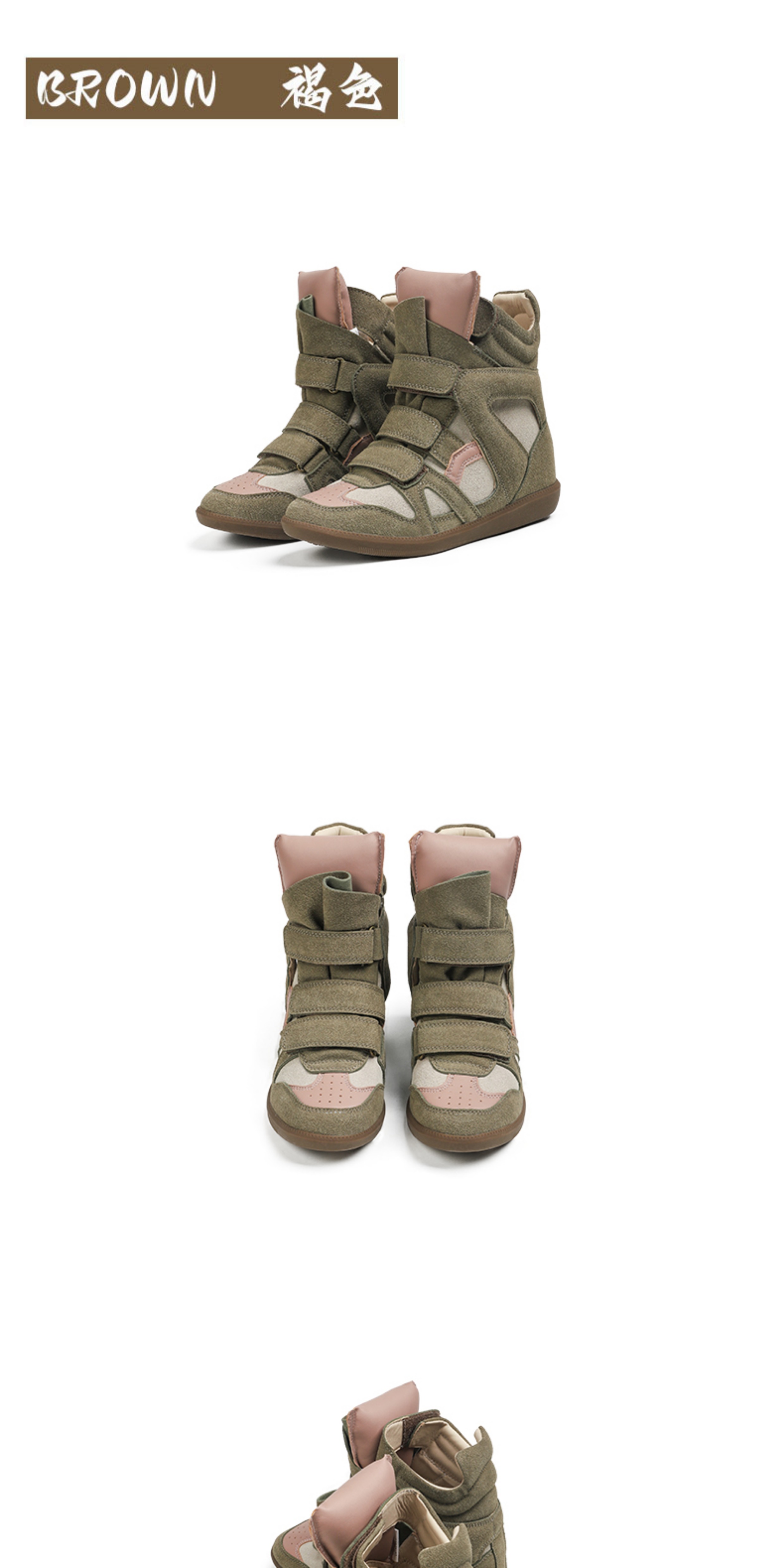 Zhou Zixuan Style Genuine Leather Casual Sneakers for Women, 2025 Autumn and Winter New Model, Height-Increasing Wedge Heel, Thick-Soled High-Top Shoes