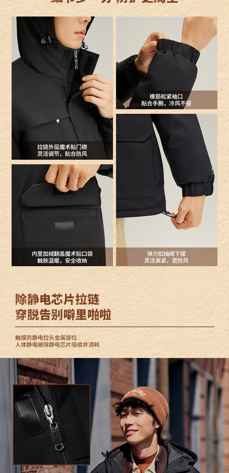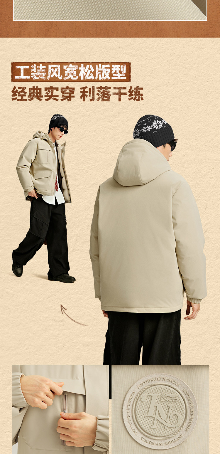 Li Ning Aerospace Dynamic down Jacket Men's Winter New Hooded Duck down Warm Short Workwear Sports Thick Coat
