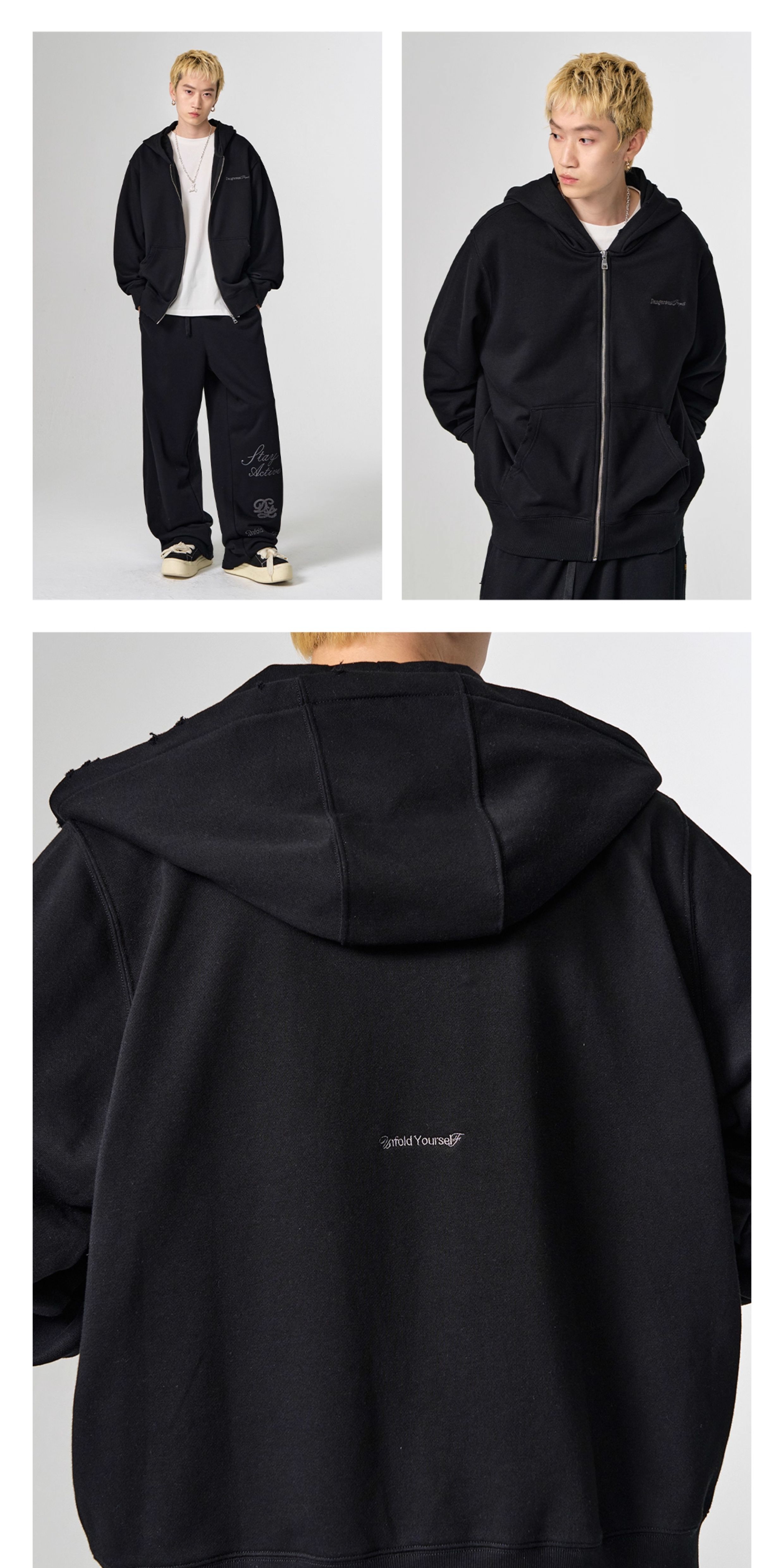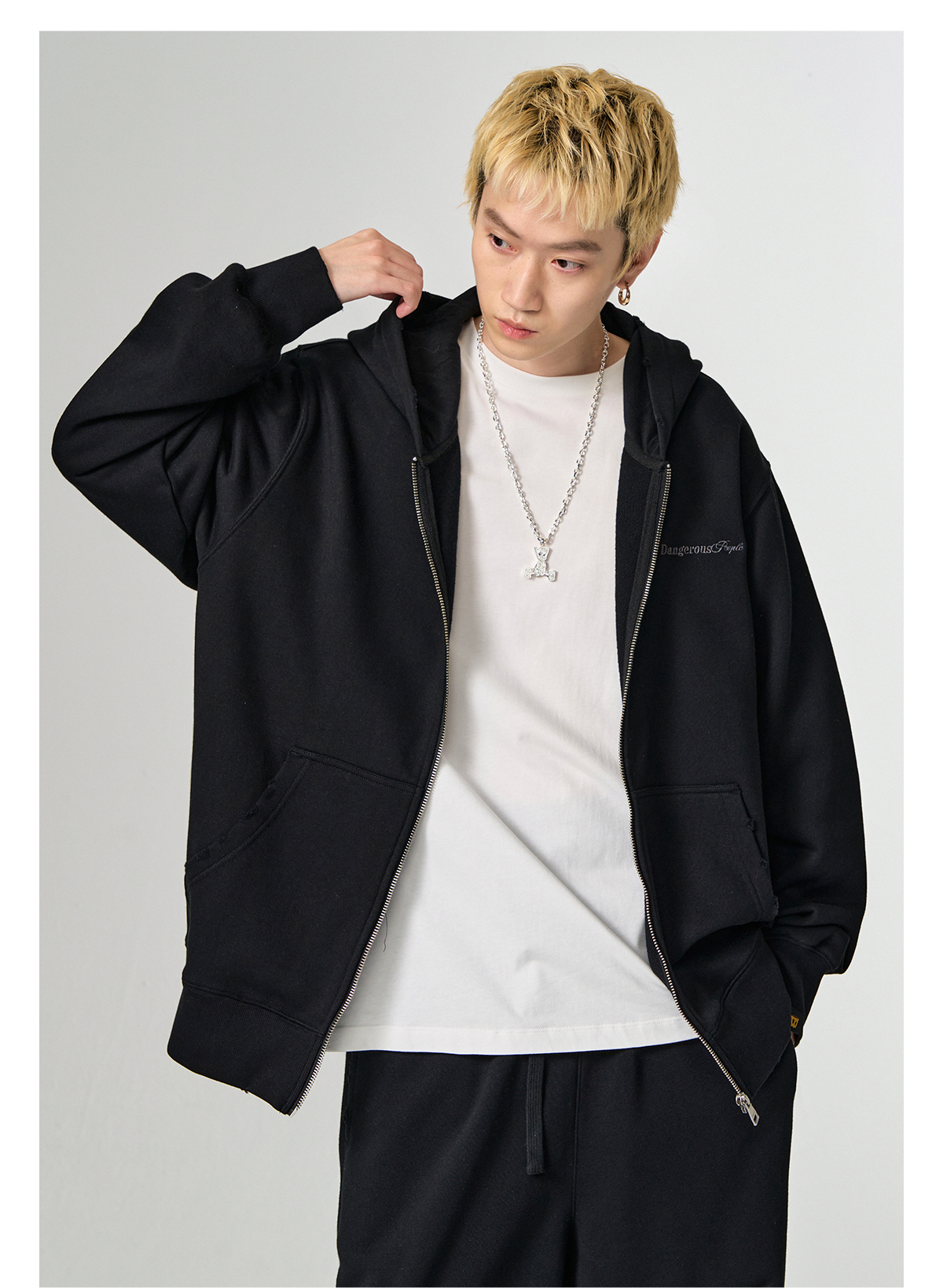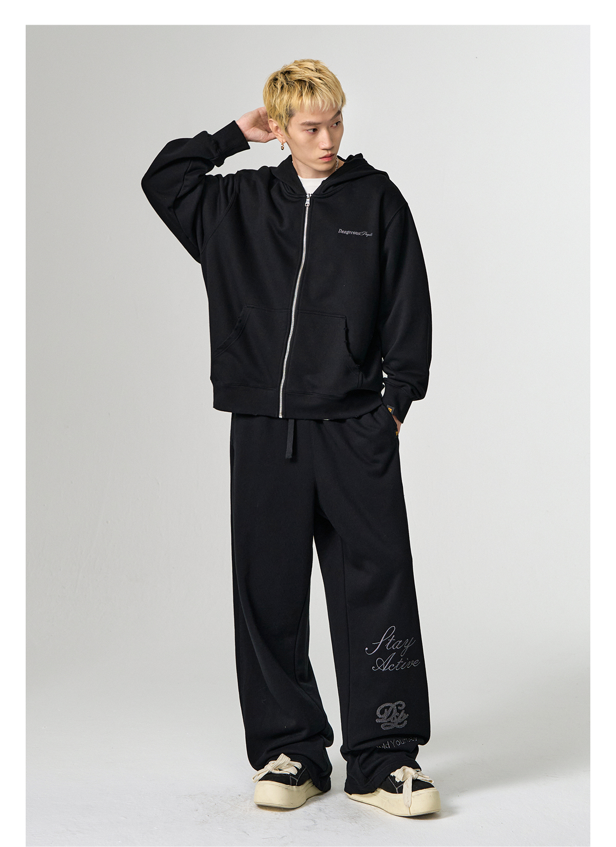 Dangerouspeople Joker Xue Dsp Retro Font Hooded Cardigan Sweatshirt Sports Casual Pants Set