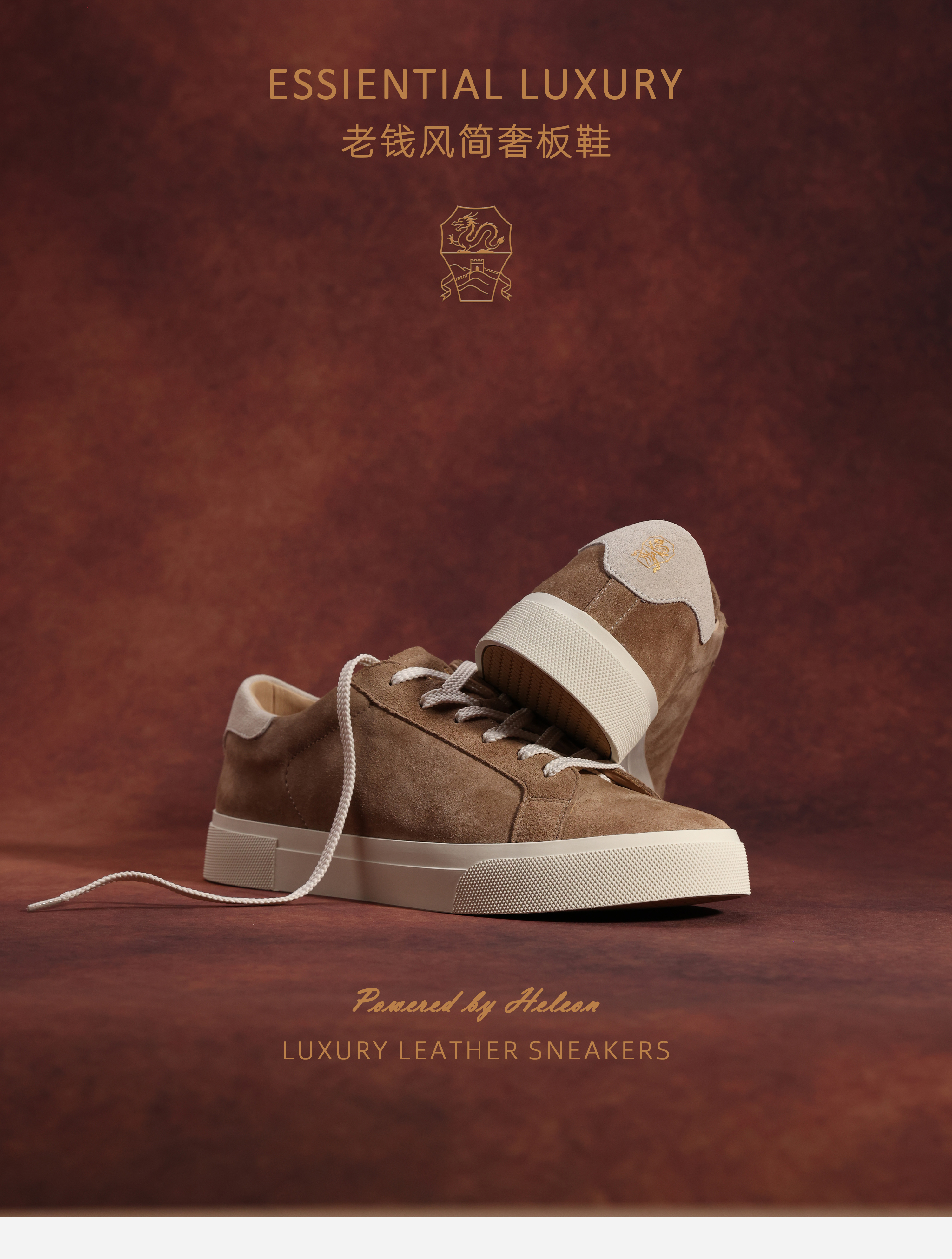 [Italian Cow Suede] Heleon Bc Old Money Style Handmade Men's Shoes, Full Leather Soft Sole Retro Casual Sneakers