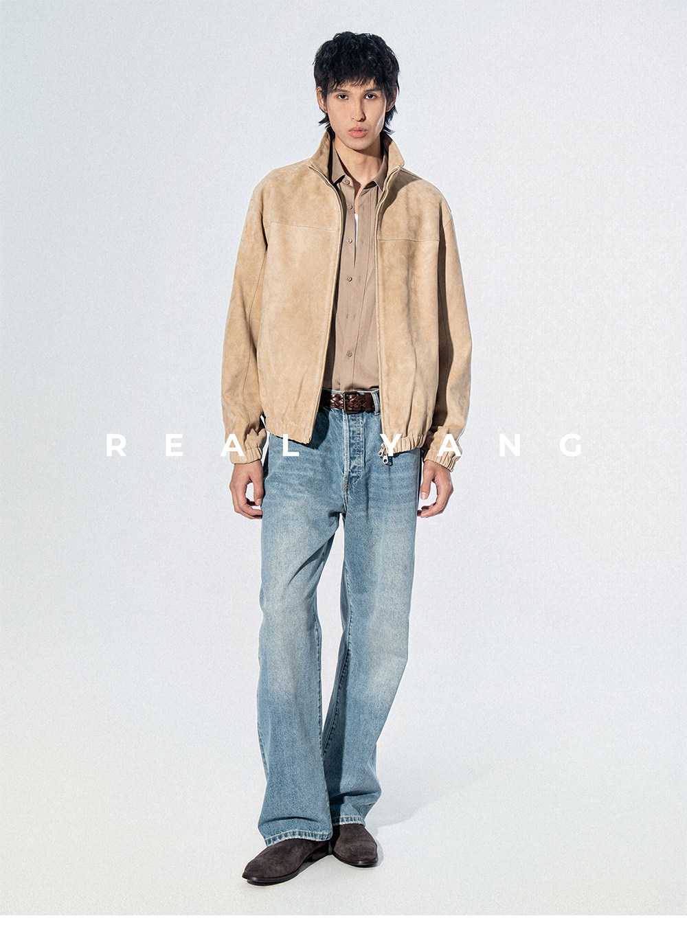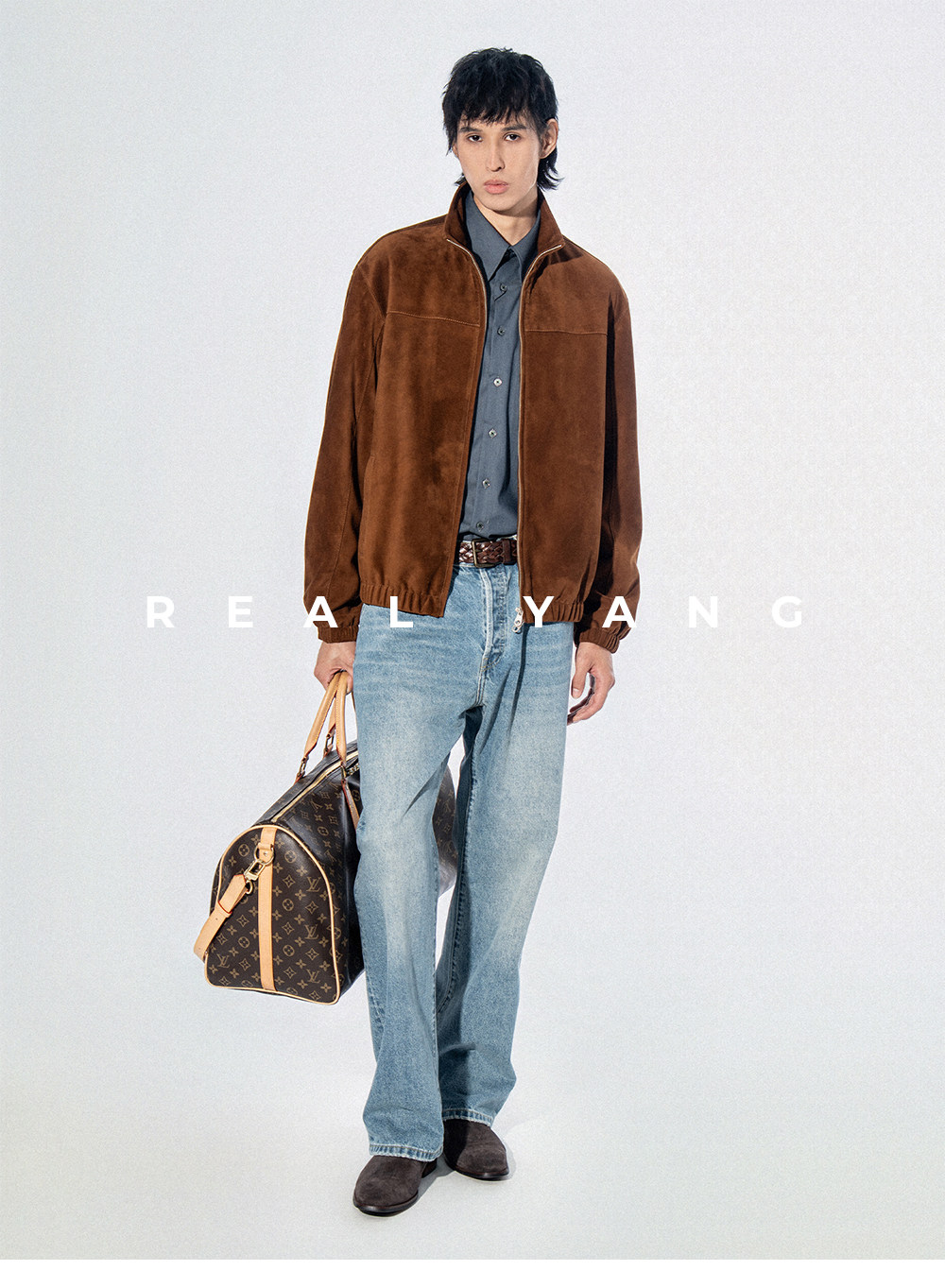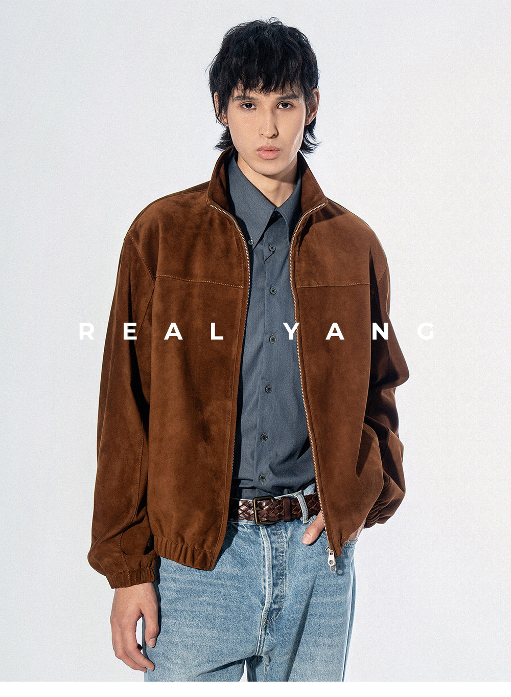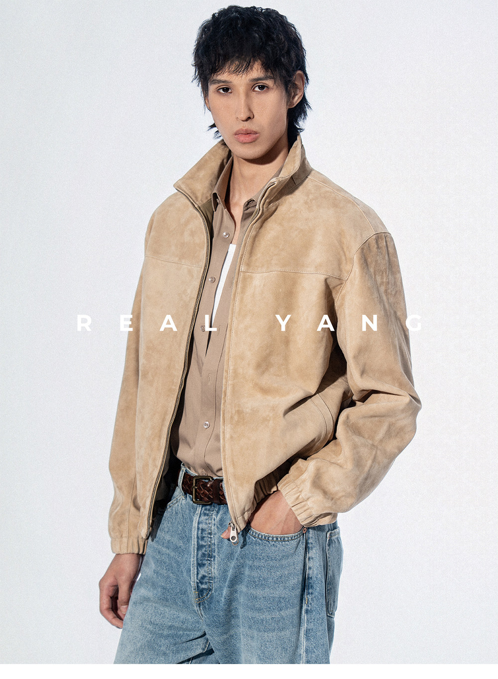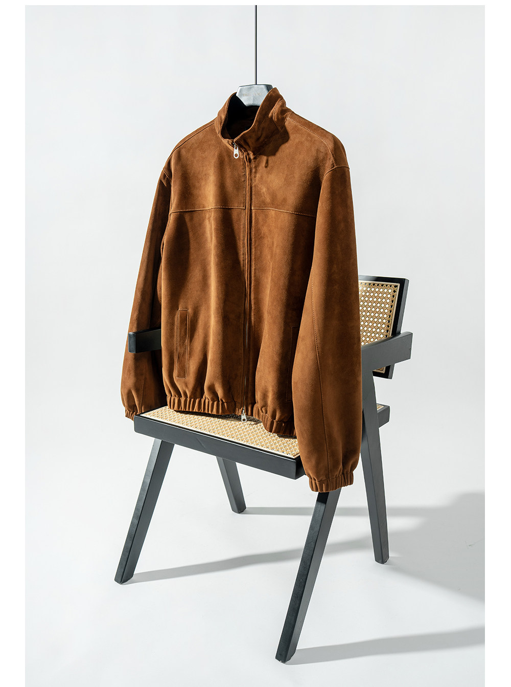 2026 Spring New Product King's Gift Lp Men's Bomber Jacket Genuine Leather Sheep Suede Suede Leather Jacket
