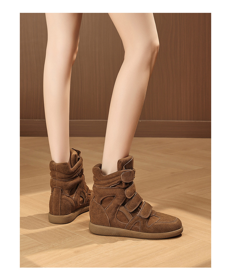 MILLIE'S Genuine Leather Retro High-Top Women's Shoes 2025 New Autumn Velcro Sports Casual Sneakers
