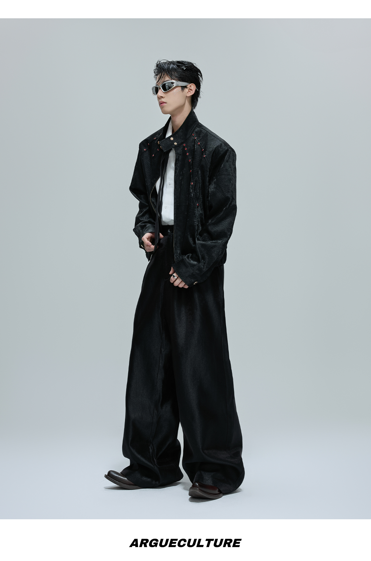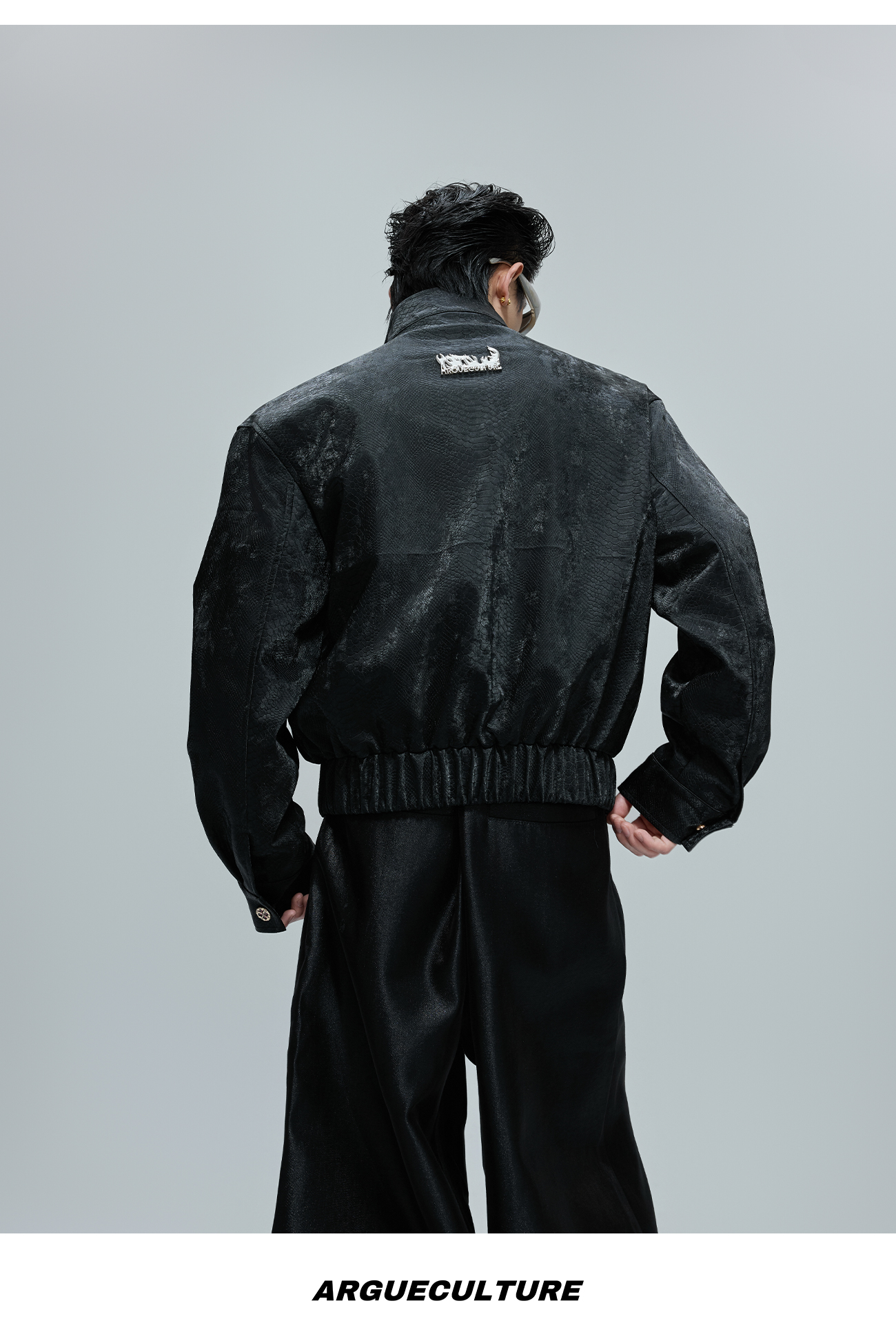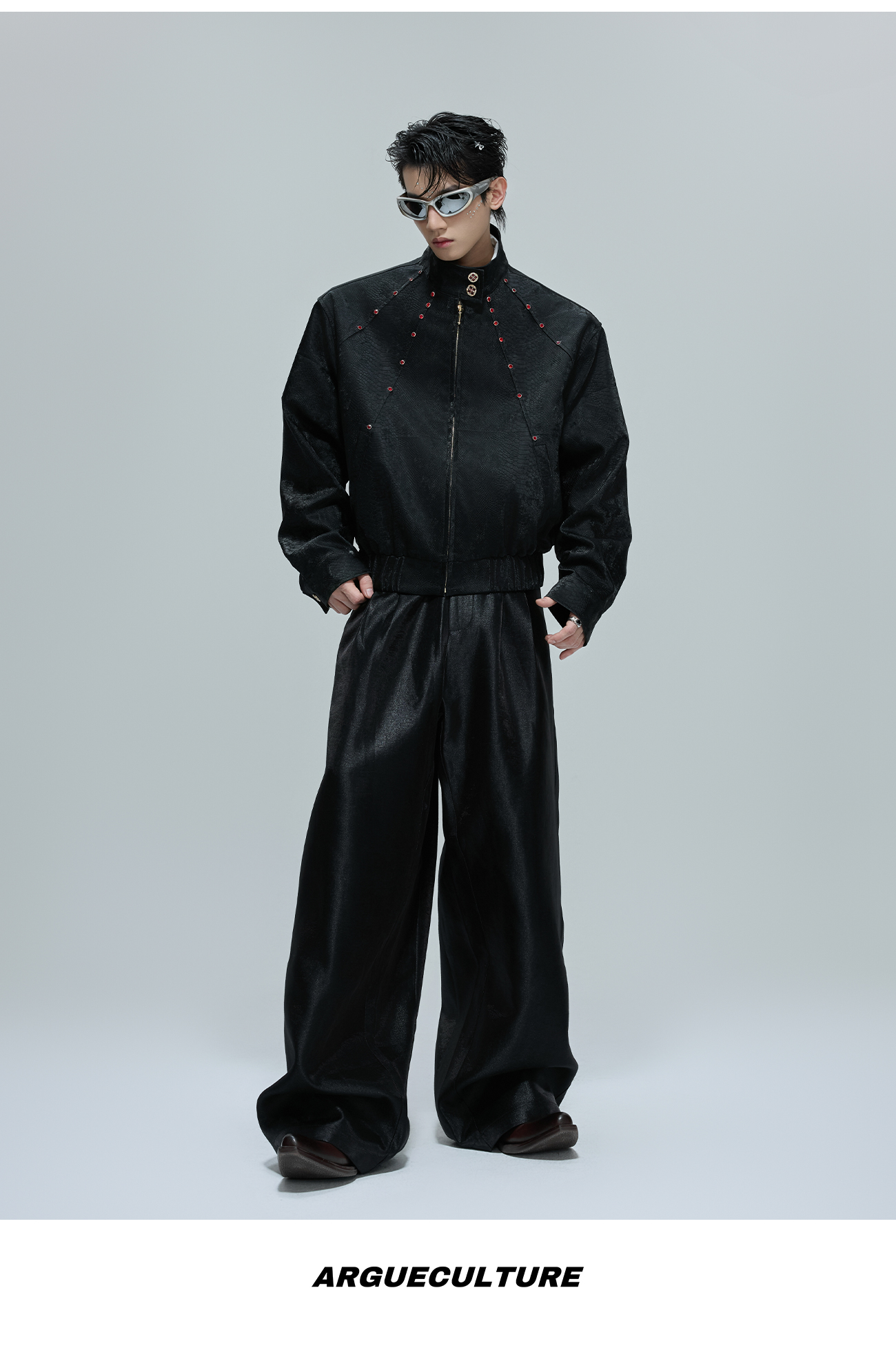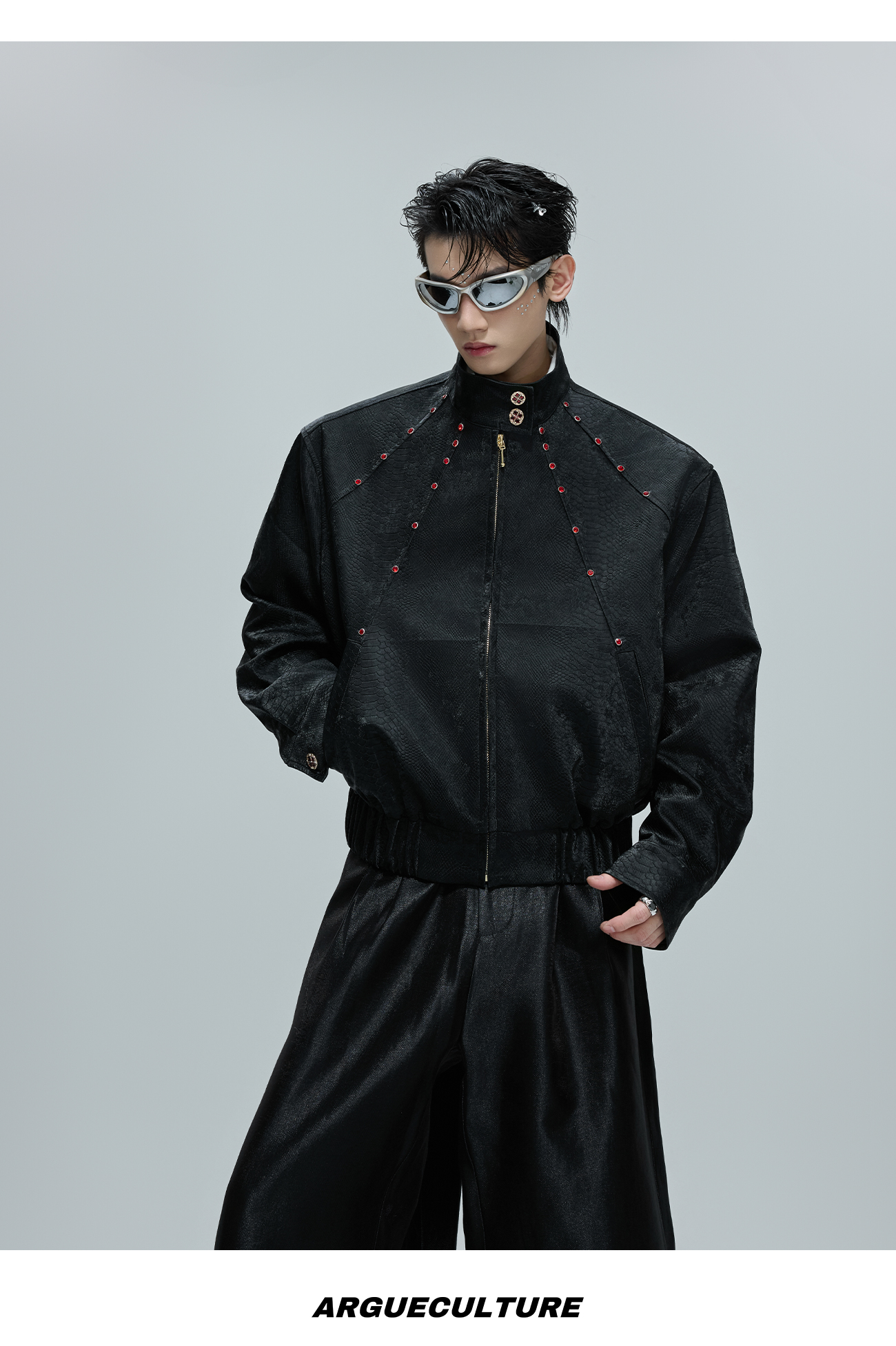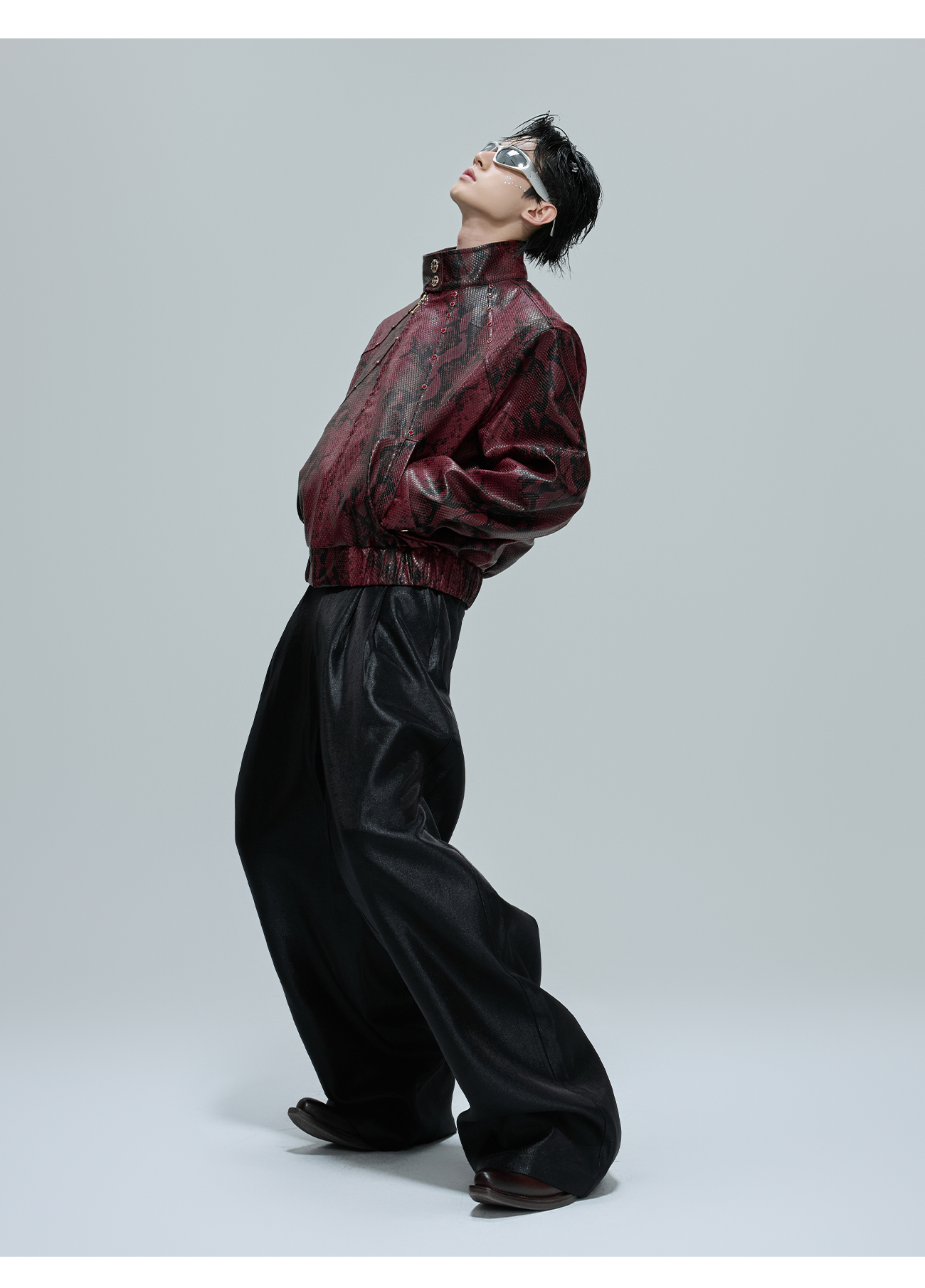 Argue Culture Niche Blood Python Texture Leather Jacket with Gem Embellishments, Stand Collar, Short Style, Autumn