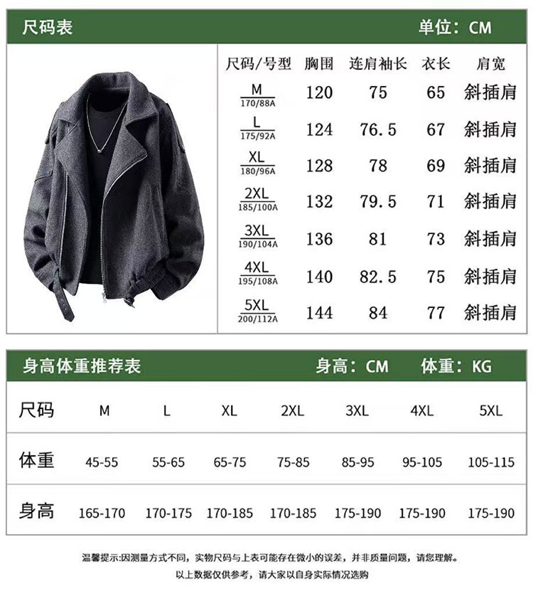 Wassup Glory Short Woolen Coat for Men, New Thickened Cleanfit Jacket for Autumn and Winter, Motorcycle Jacket