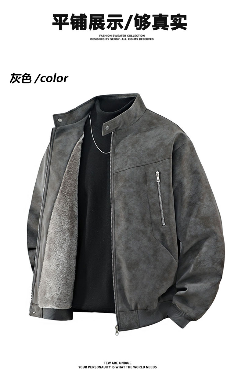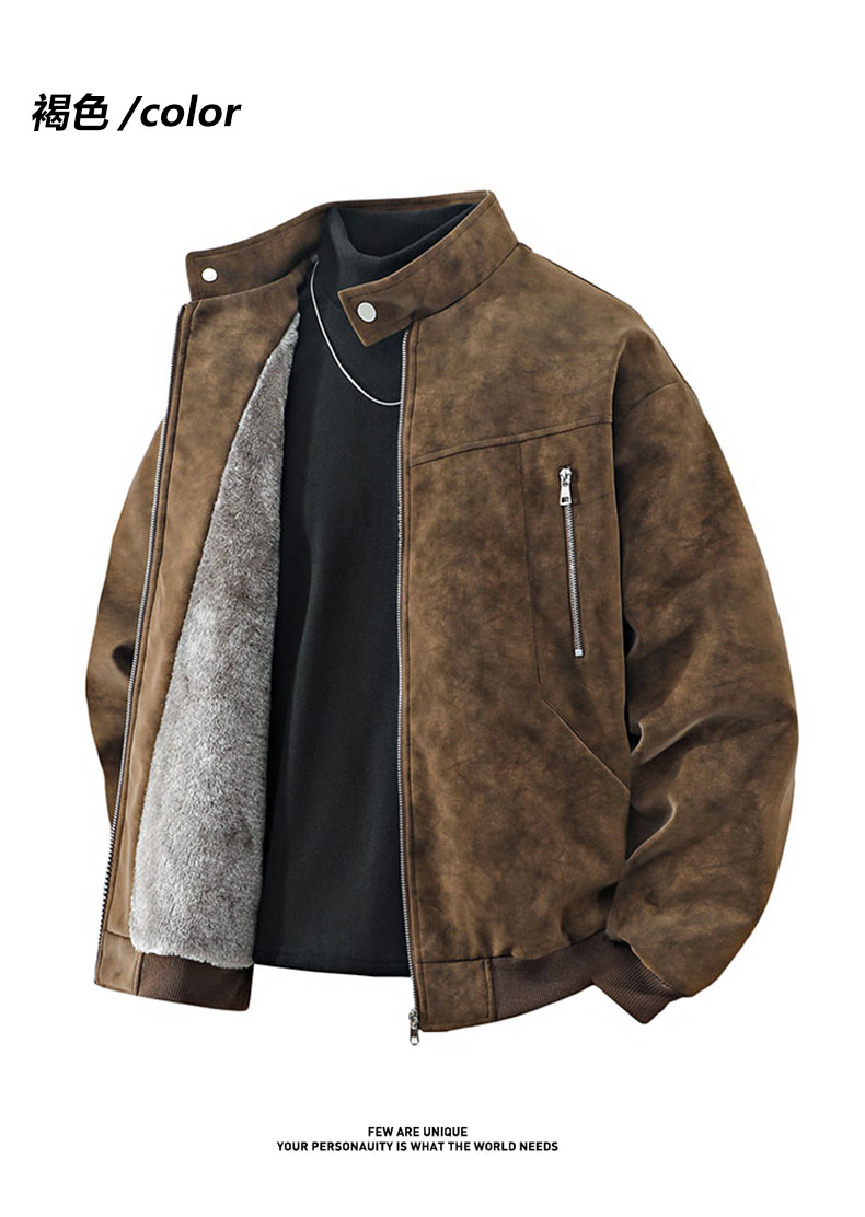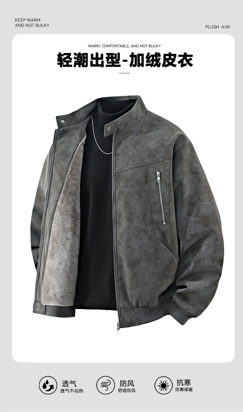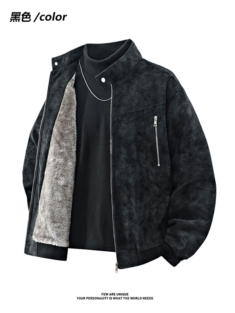 Wassup Glory Faux Suede Leather Jacket for Men, Cool and Stylish, Autumn and Winter, Fleece-Lined, Thickened, Warm Leather Jacket, Trendy