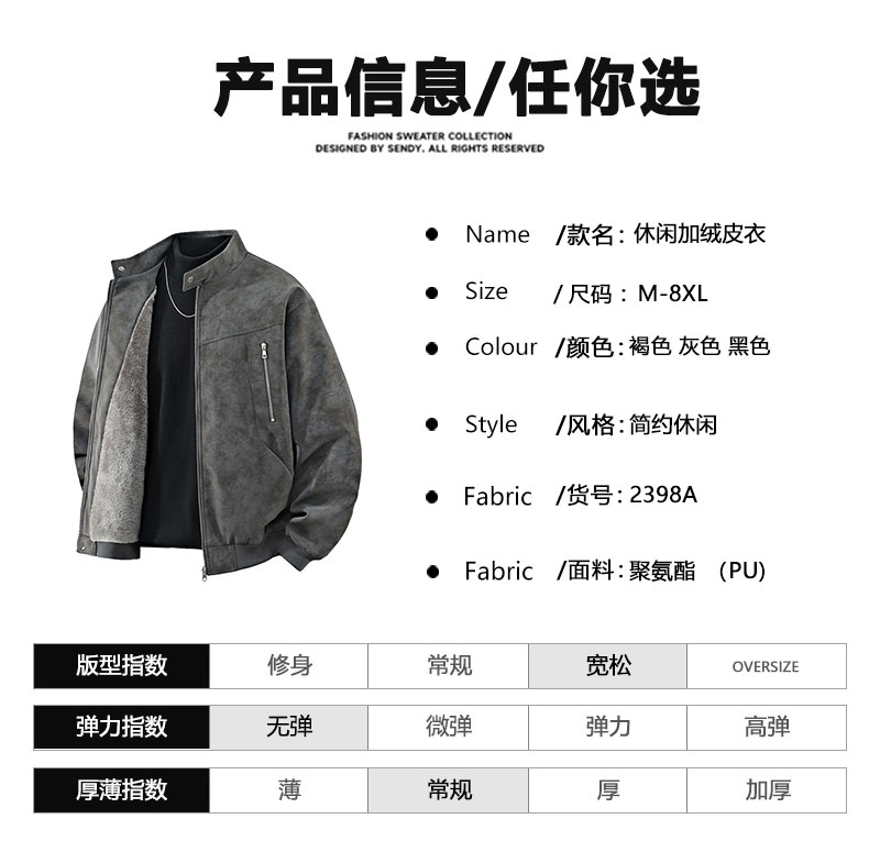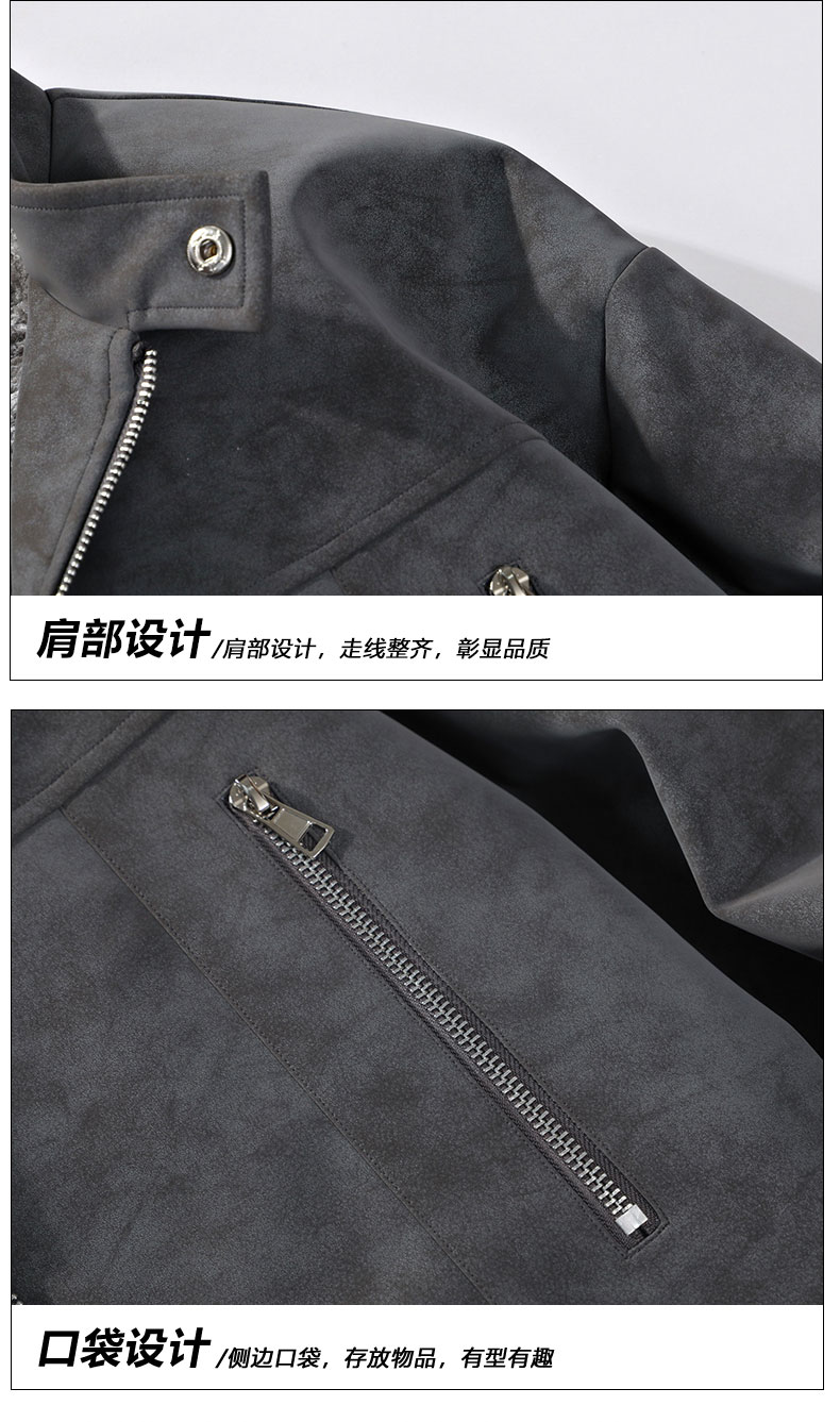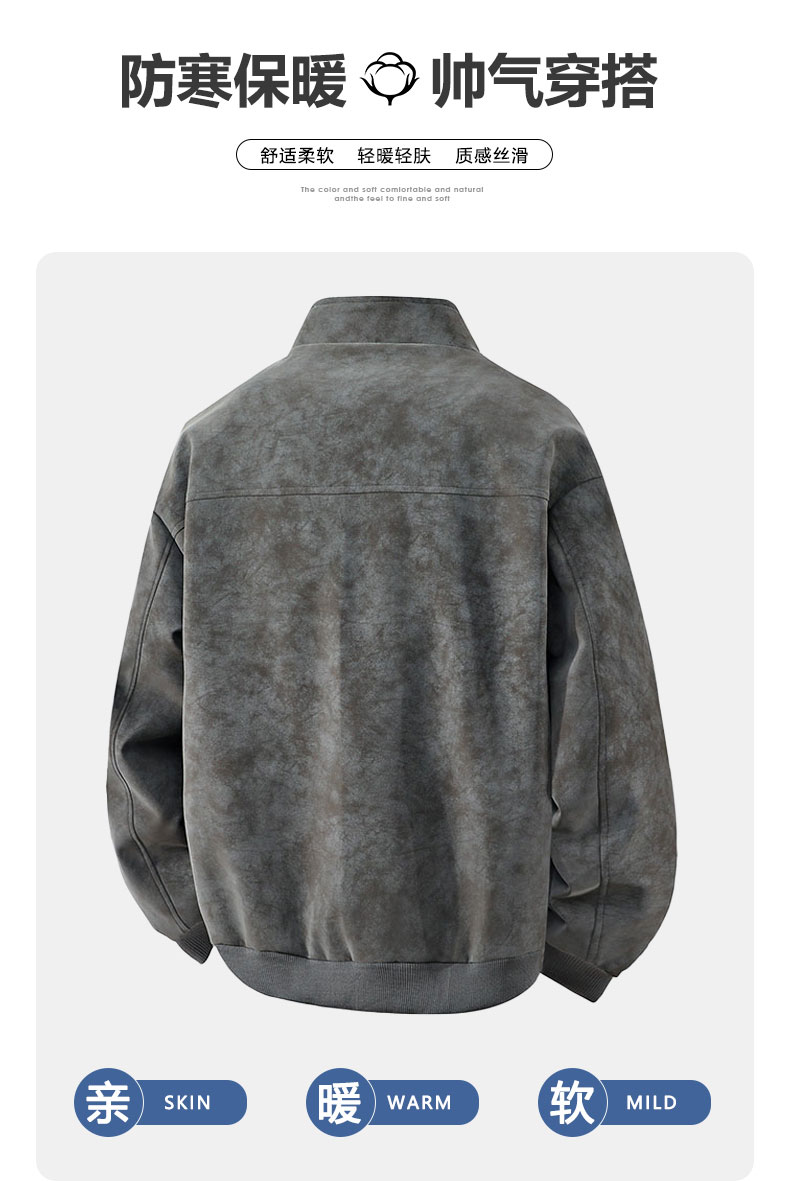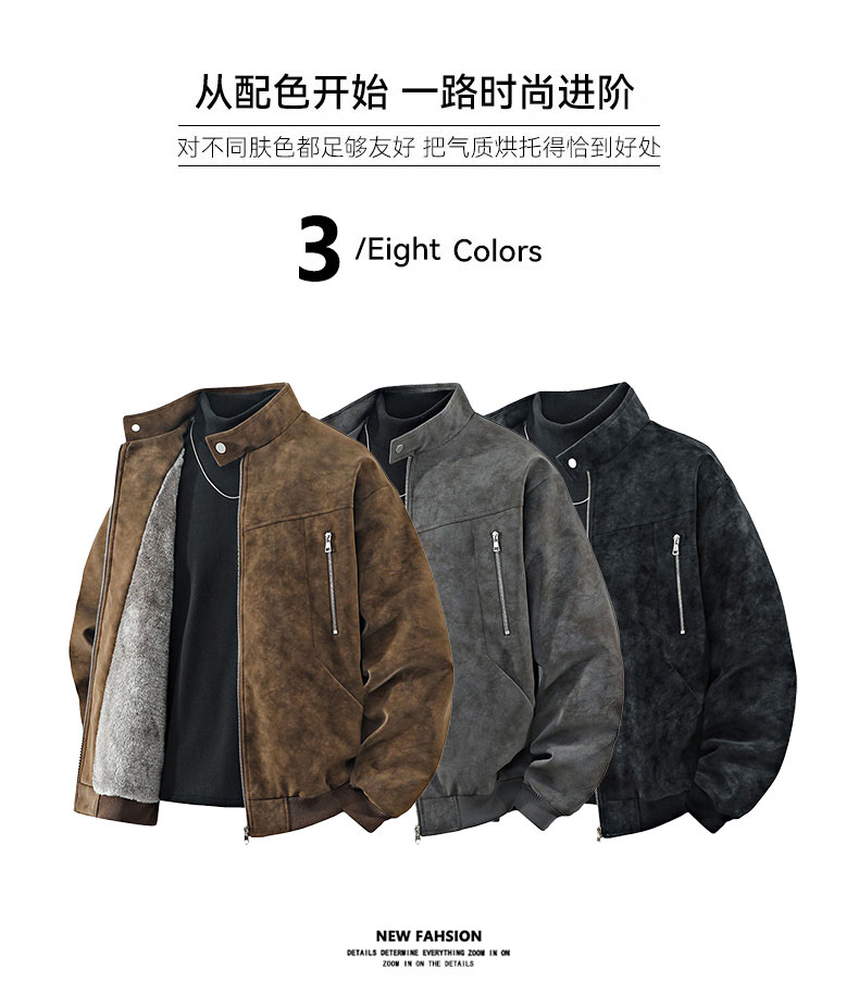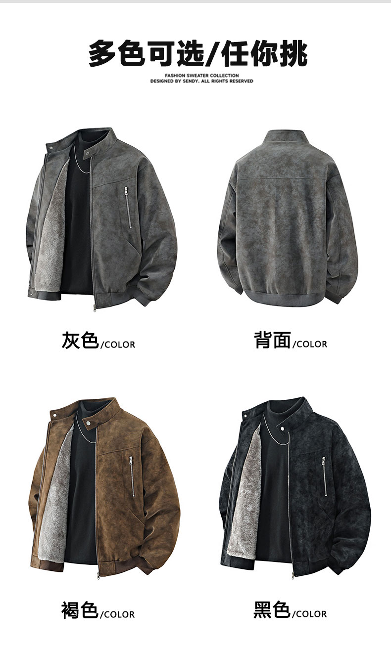 Wassup Glory Faux Suede Leather Jacket for Men, Cool and Stylish, Autumn and Winter, Fleece-Lined, Thickened, Warm Leather Jacket, Trendy