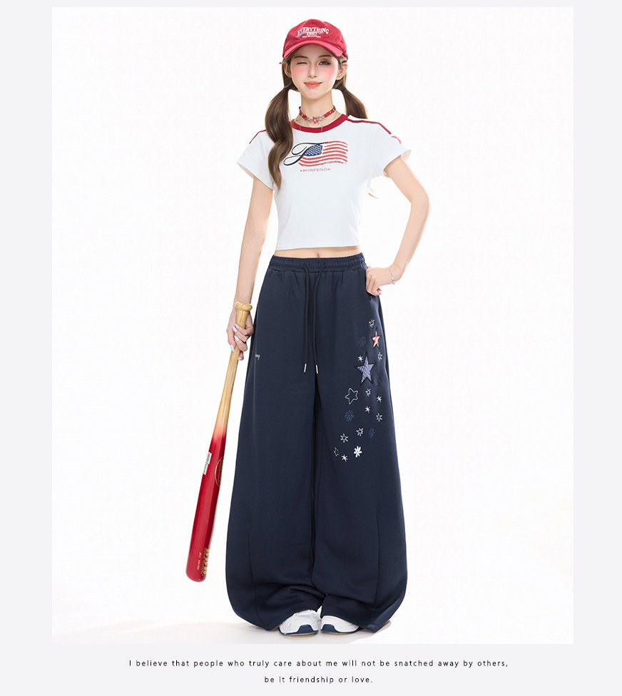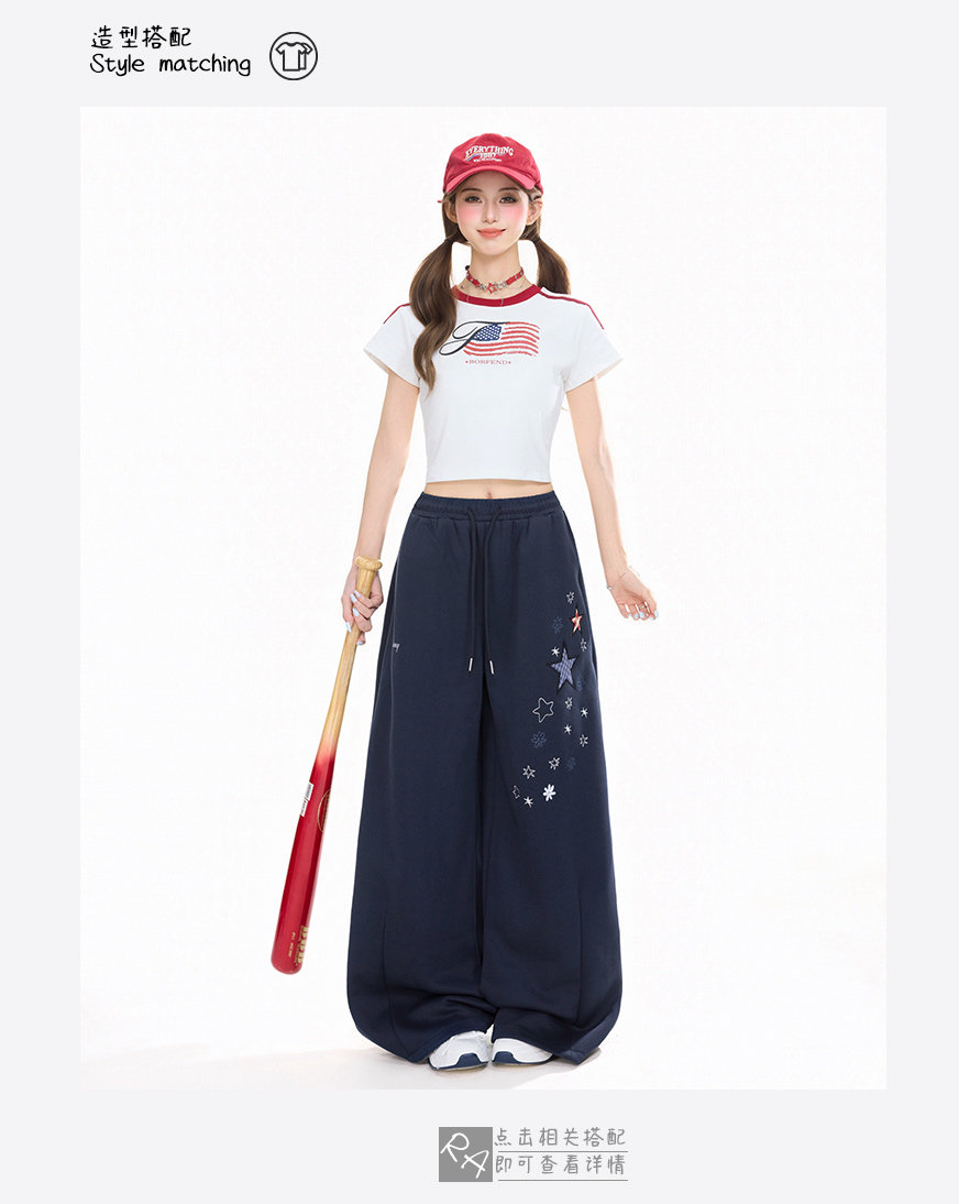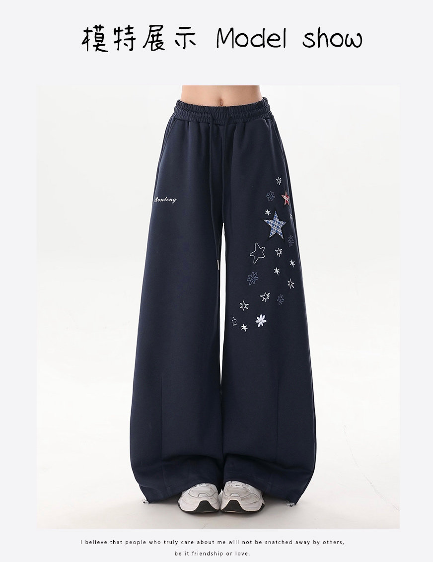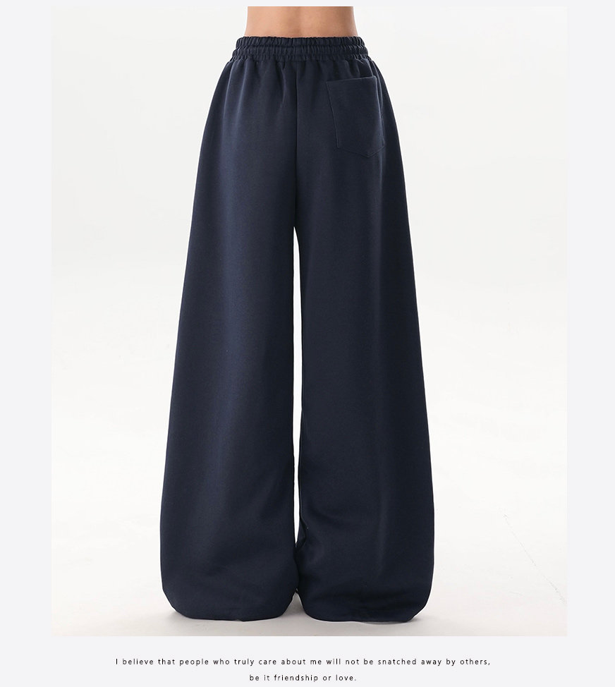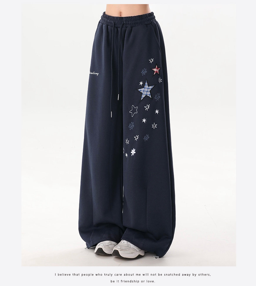 Rayohopp Retro Embroidered Casual Pants for Women, Fleece-Lined and Thickened, New Autumn and Winter Style, Loose Fit, Slimming Sweatpants, Wide-Leg Pants