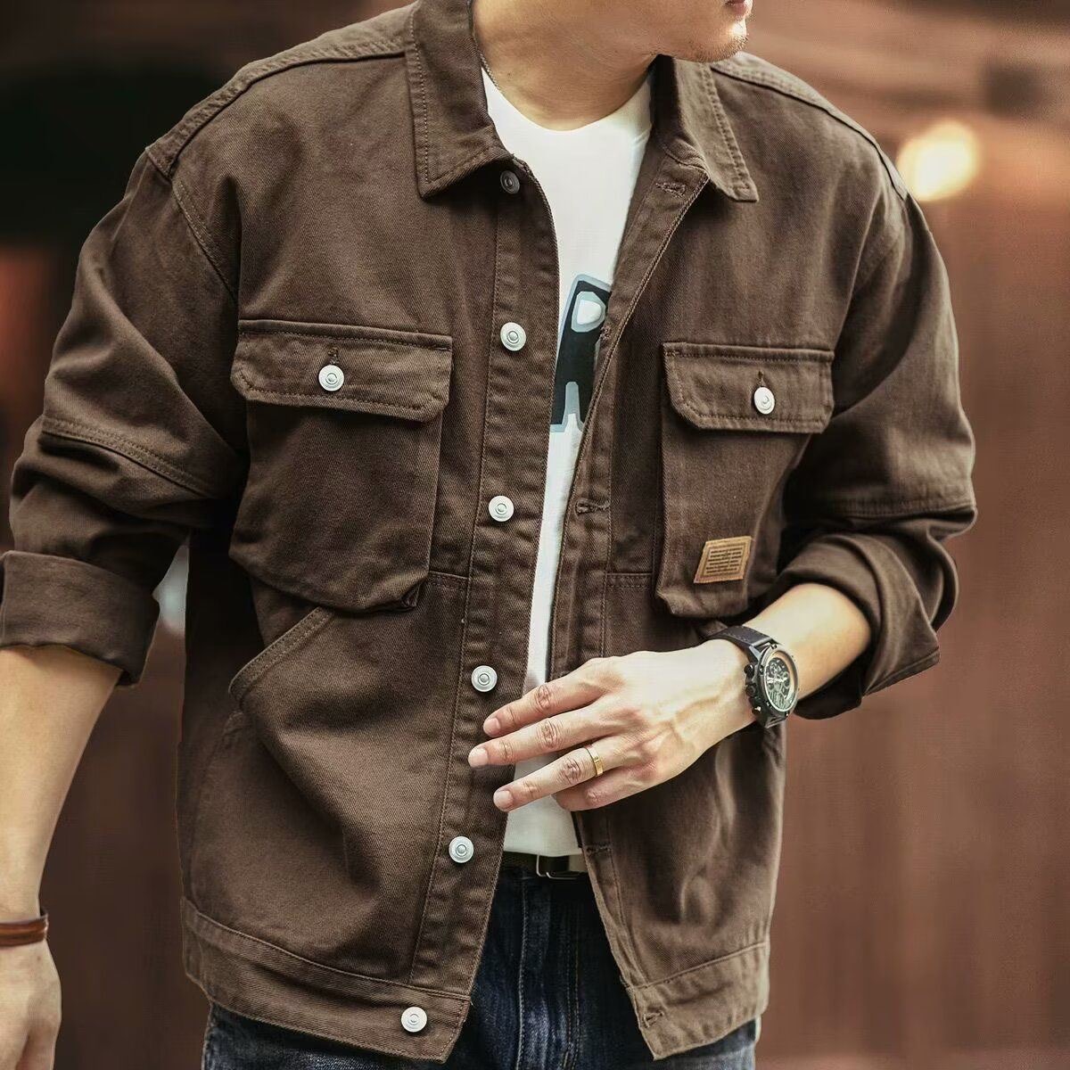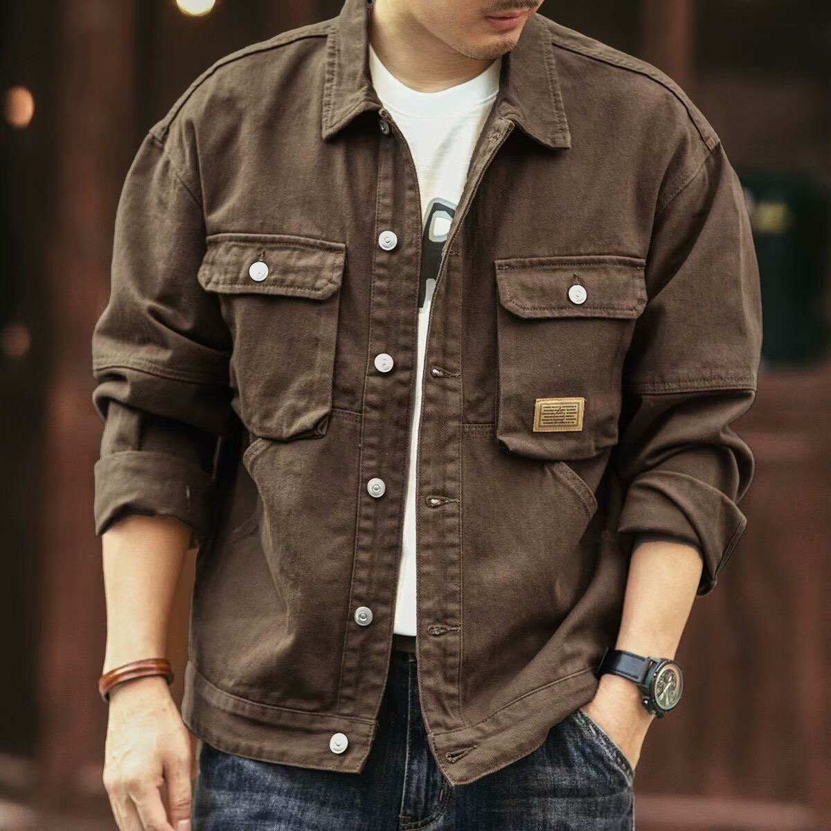 American Retro Heavy Denim Jacket for Men, Trendy High-End Loose Fit, Cool Workwear Jacket, Stain-Resistant and Wear-Resistant Top