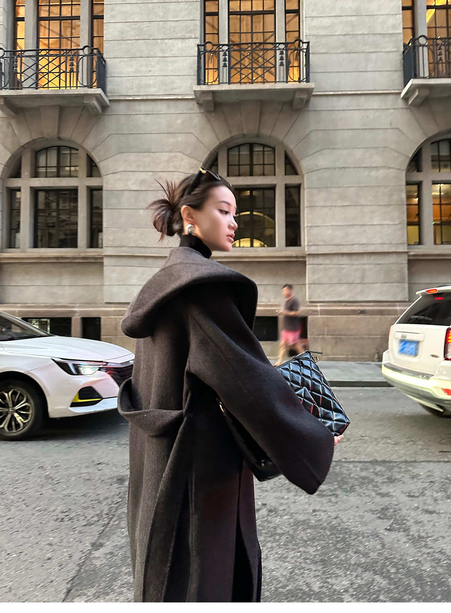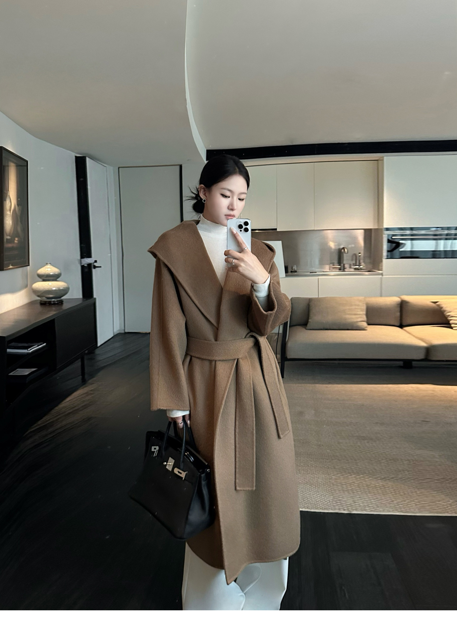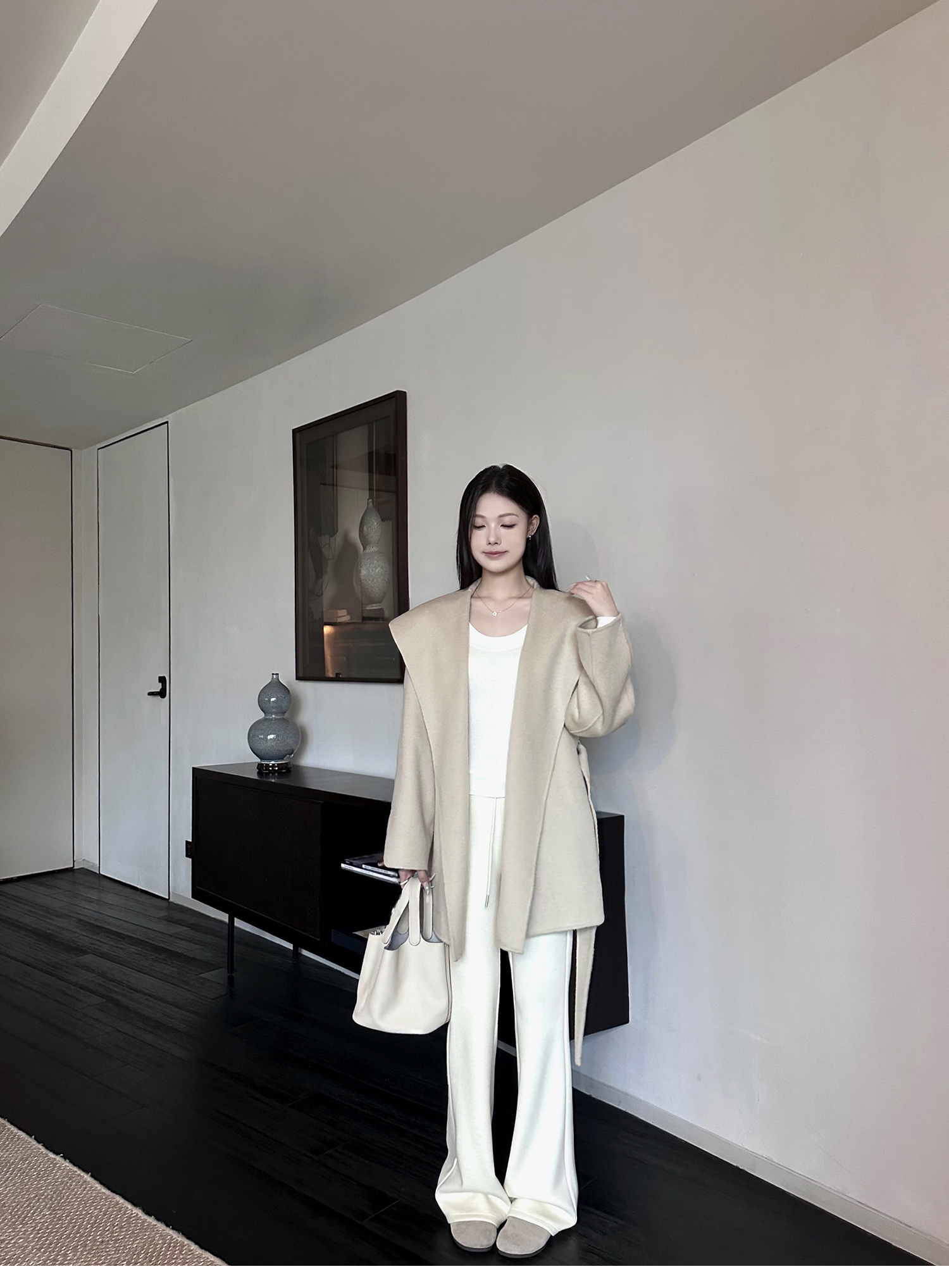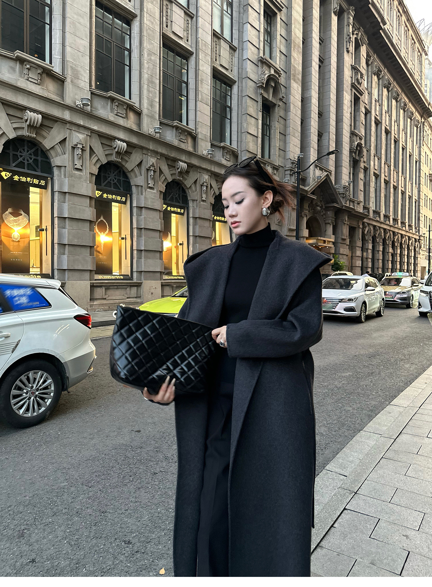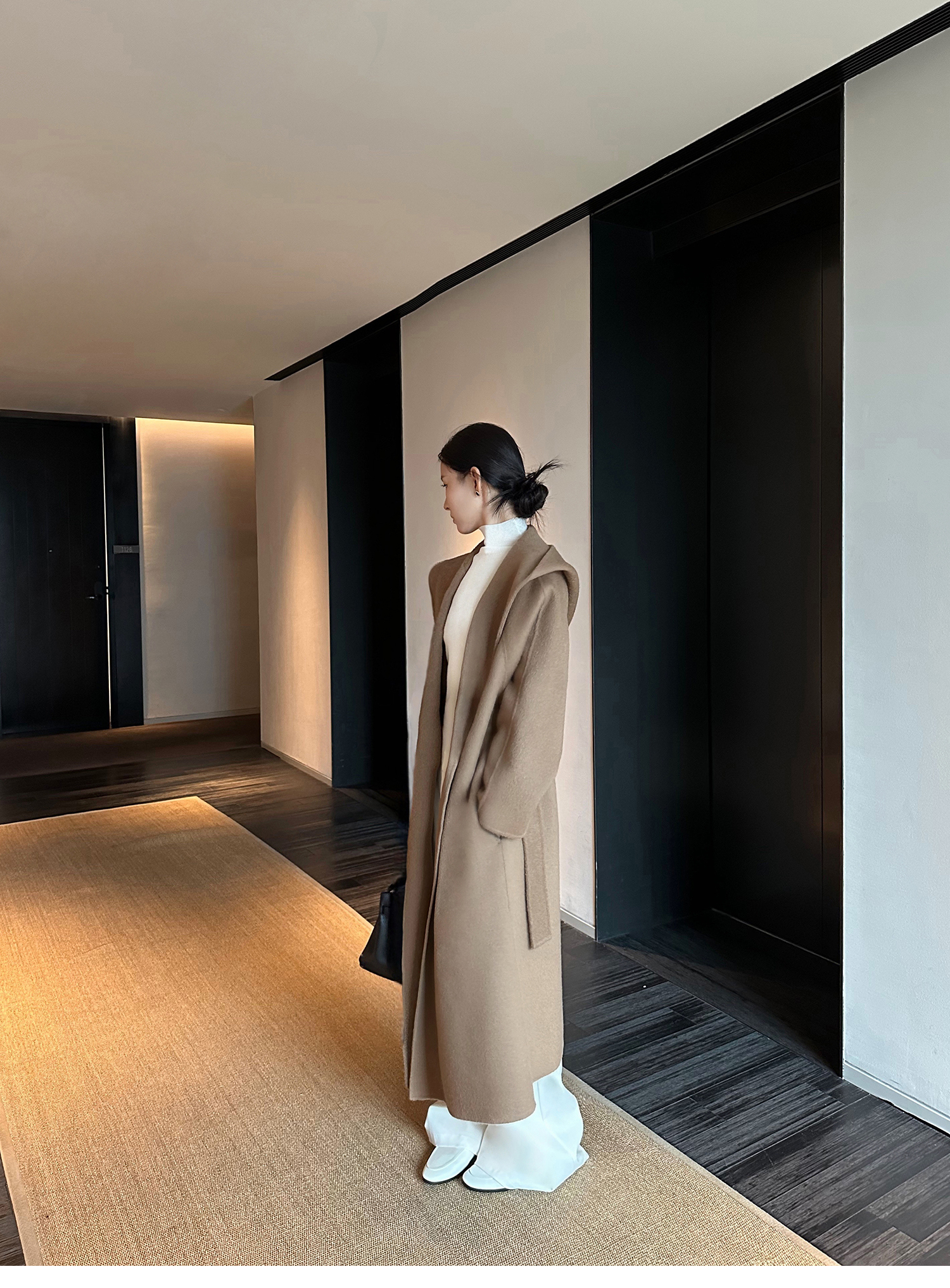 5Werkwen Minimalist the Row Hooded Wool Oversized Double-Sided Woolen Coat